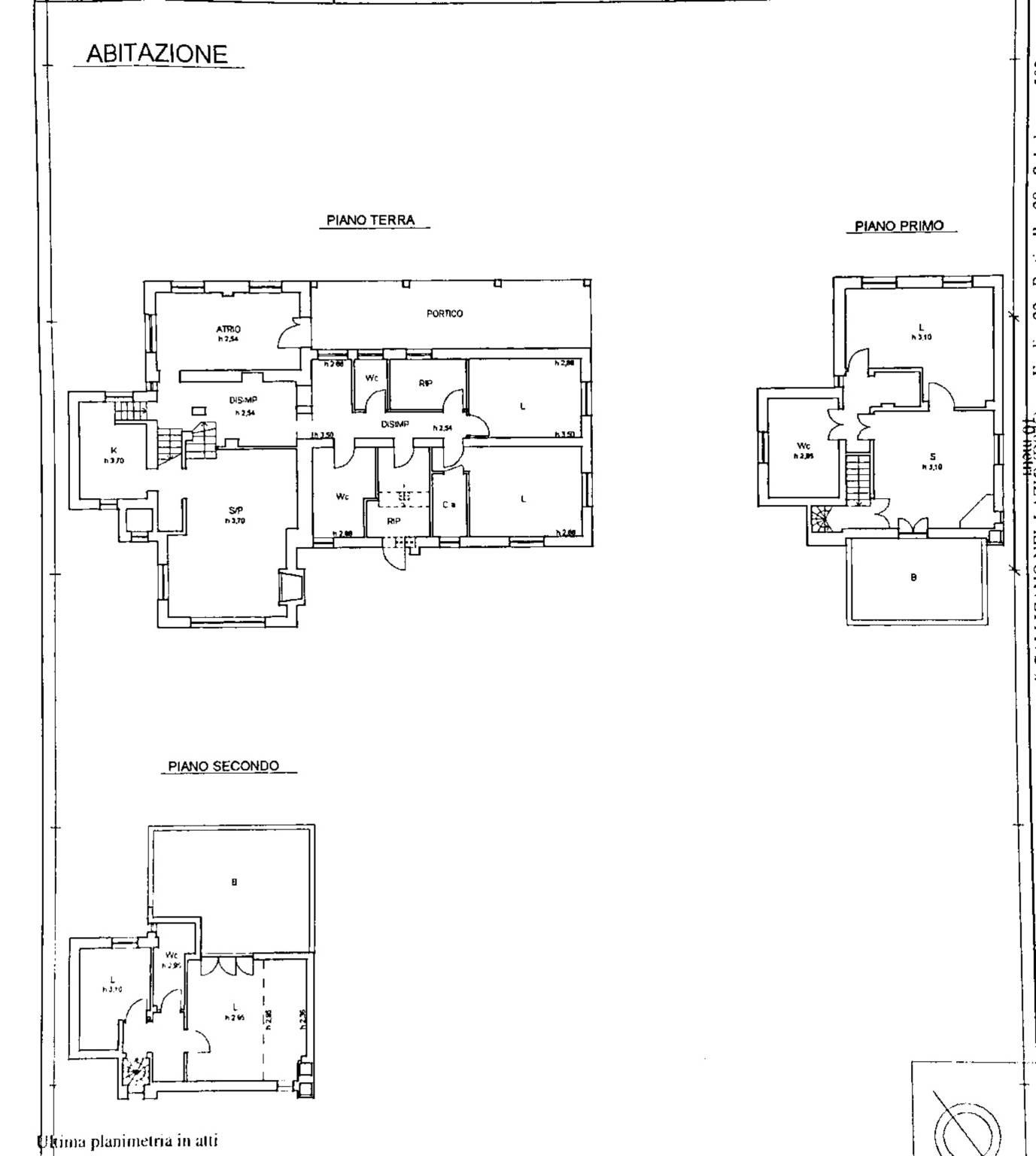 P. Terra - atrio, disimpegno, cucina , sala , due camere, cabina armadio, due bagni , due stanzini e portico.