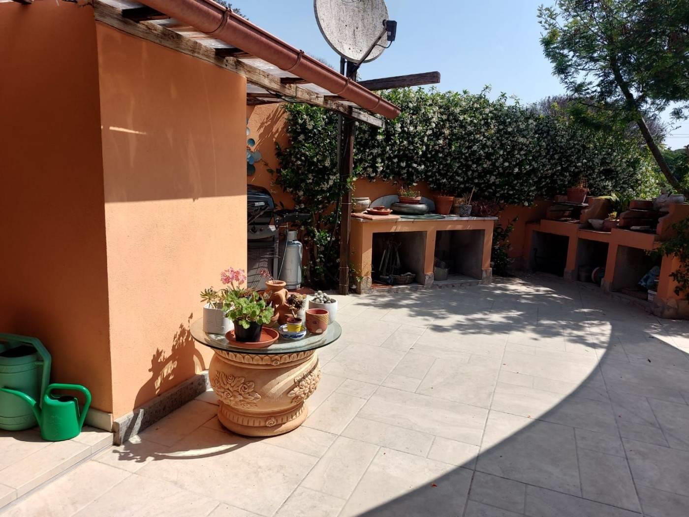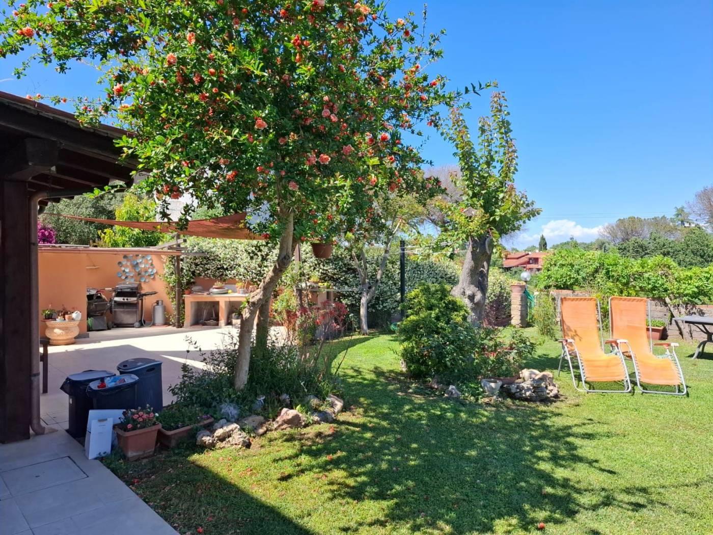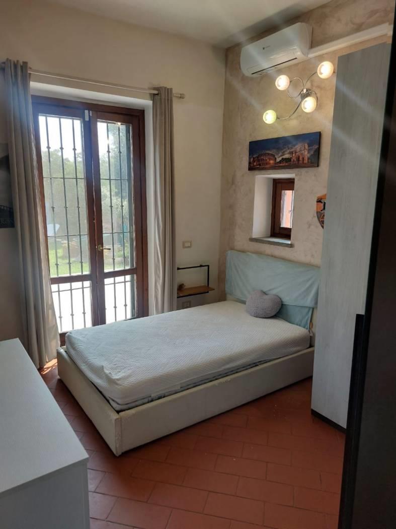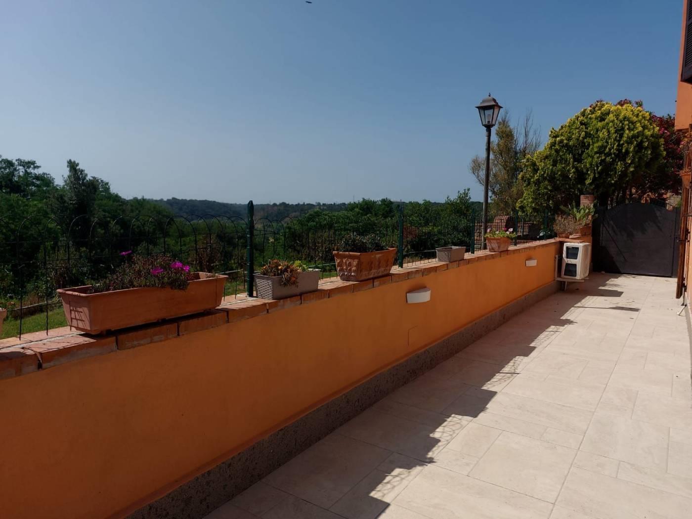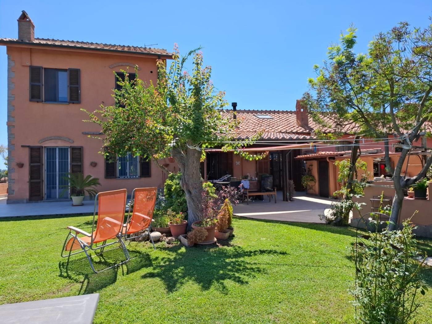 Trigoria Alta Borgo Vaselli Via Sersale, all’interno di elegante condominio proponiamo porzione angolare di casale, tre esposizioni, prevalentemente piano terra con aree soppalcate, divisibile in due unità immobiliari, superficie catastale 179 mq. + 600 metri di giardino terrazzato con vista sulla campagna romana. Il borgo nasce dalla ristrutturazione di un complesso agricolo con fontanile e chiesetta, complessivamente ci sono 25 unità immobiliari, area di parcheggio per ospiti e ampi spazi comuni. L’immobile è dotato di posto auto scoperto e cantina. La casa è composta da triplo salone, cucina abitabile, tre camere da letto tre bagni, stanza armadi, cabina armadio. Splendido portico di 35 mq. in corrispondenza della cucina. Stufa a legna, stufa a pellet, camino, doppio impianto termico autonomo, climatizzazione caldo e freddo, grate di sicurezza, porta blindata, locale tecnico per lavatrice e asciugatrice, irrigazione automatica, impianto illuminazione del giardino. Ampia pavimentazione esterna. Classe Energetica F