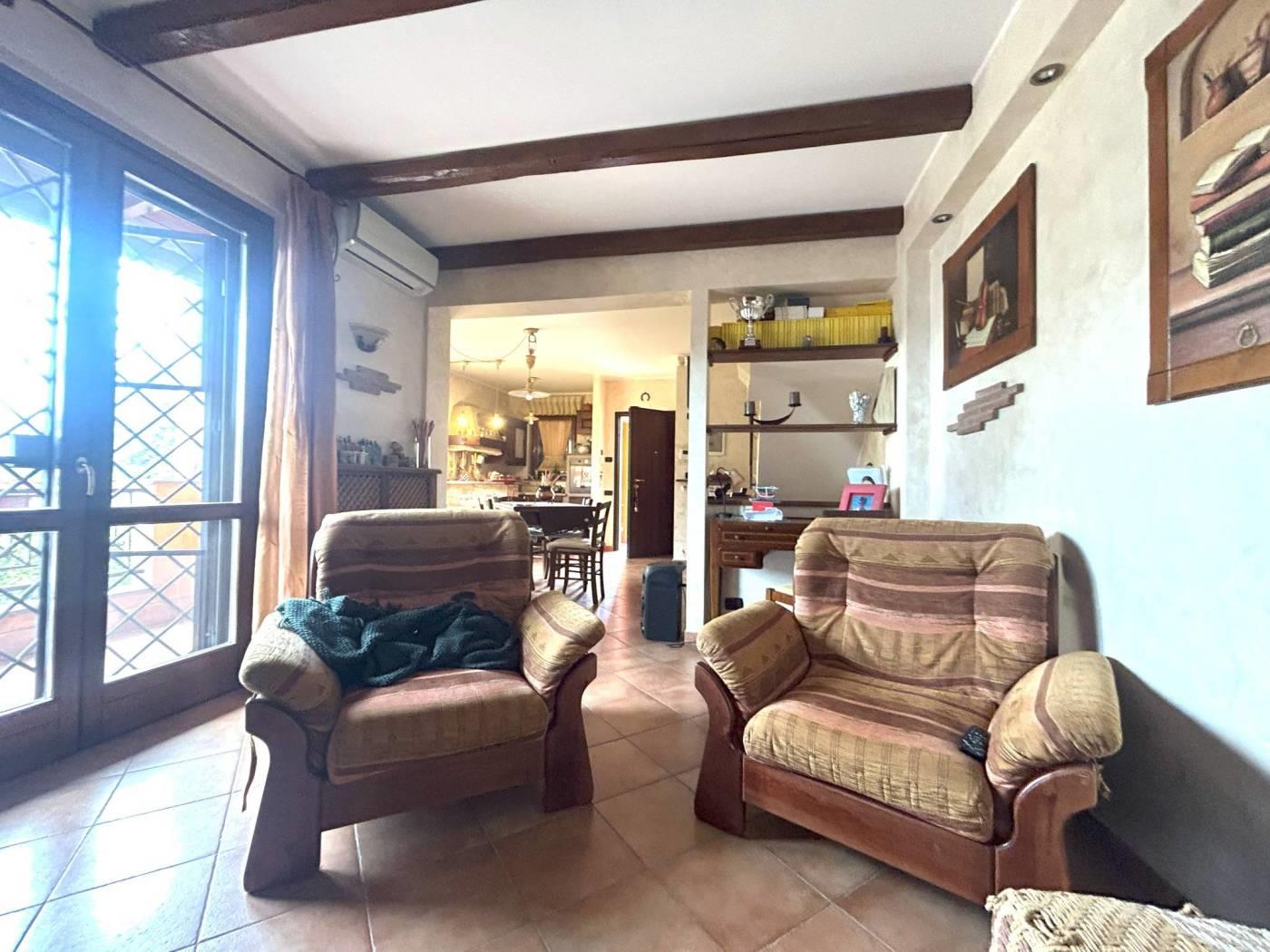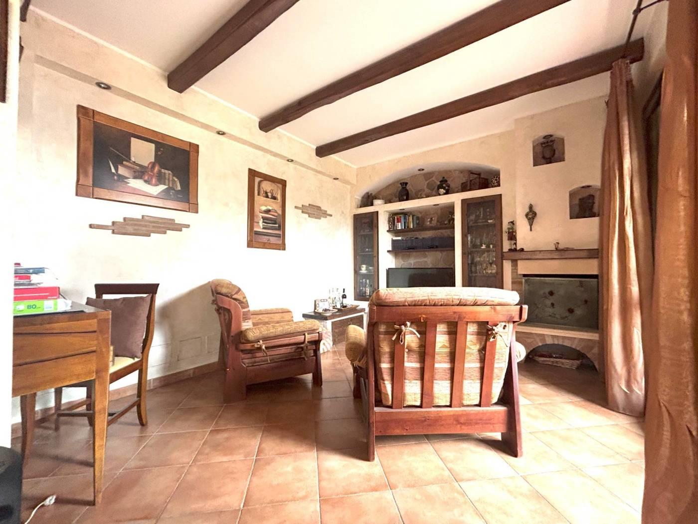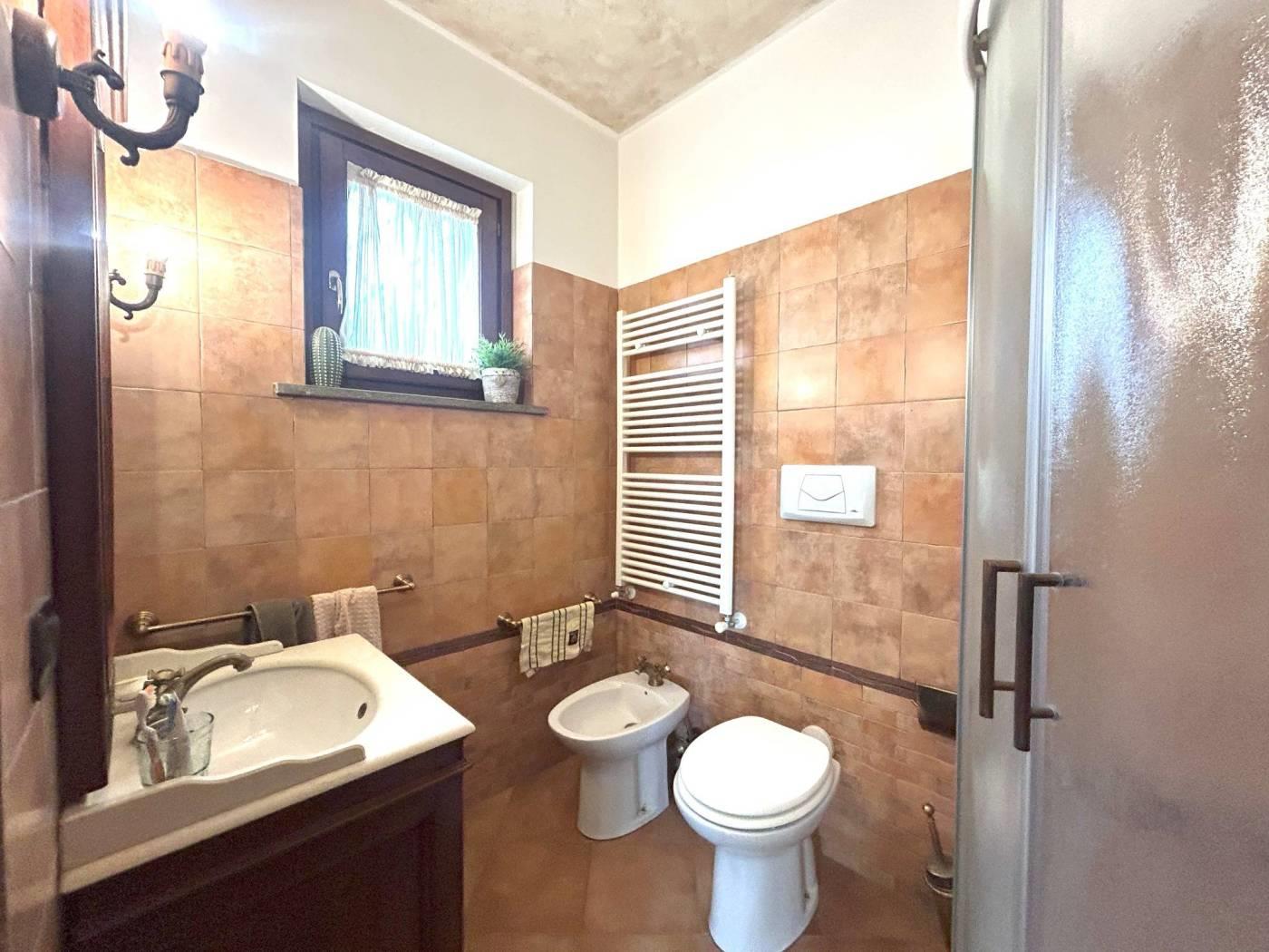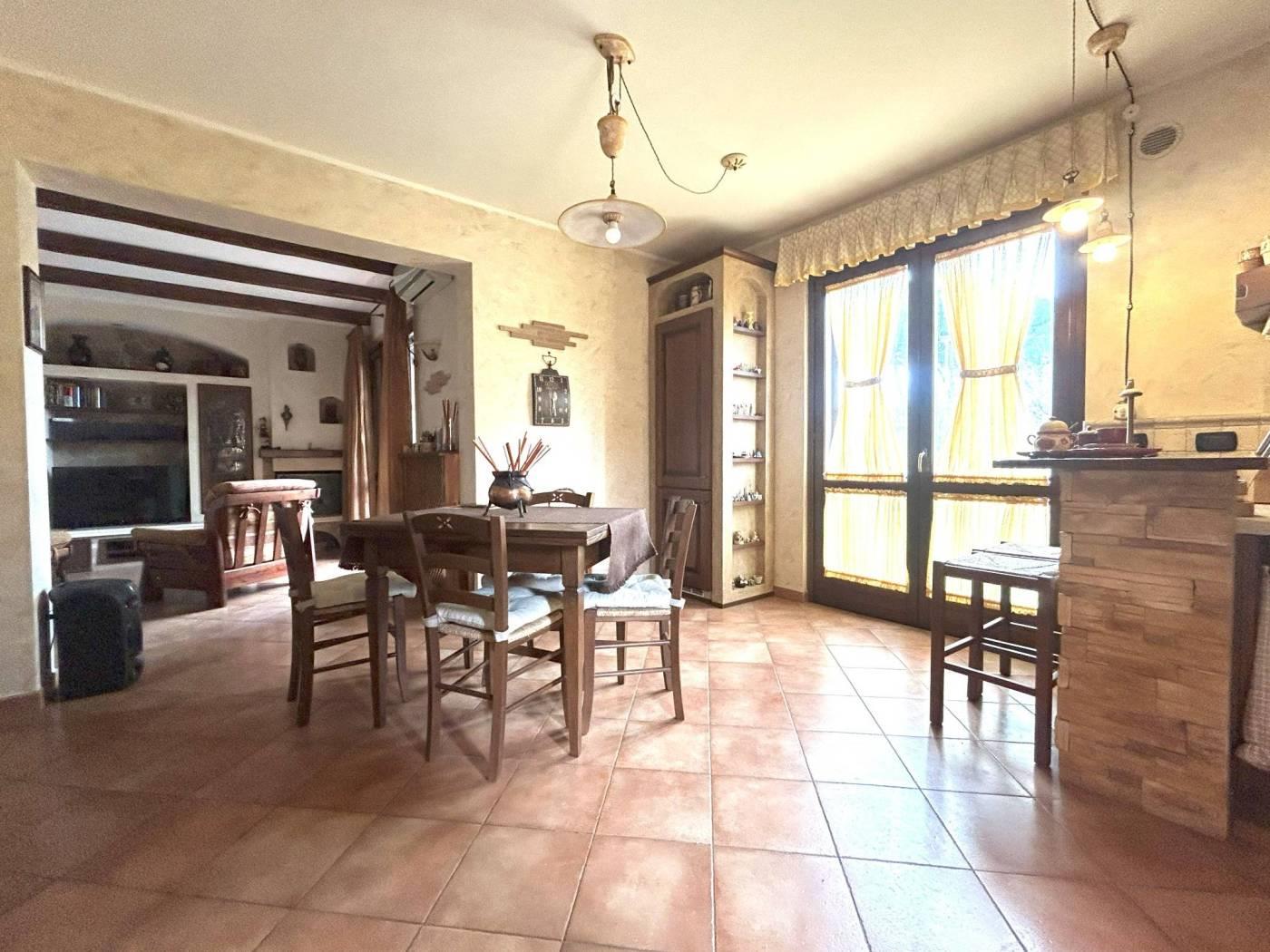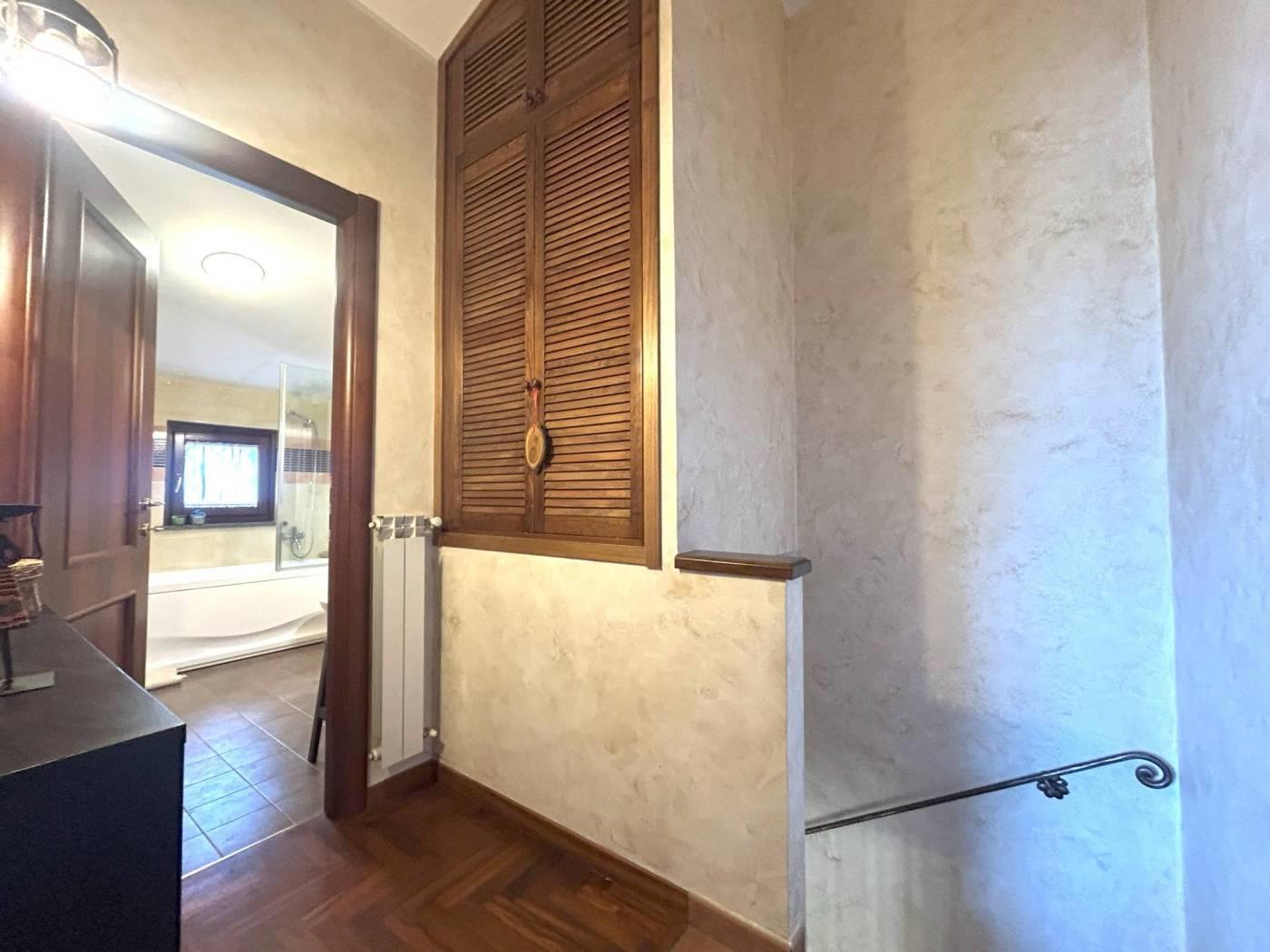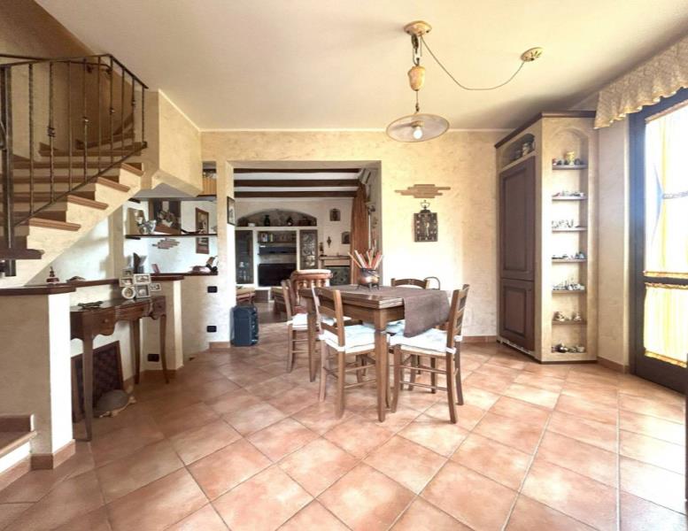 L'immobile presenta ottime rifiniture come travi a vista, pareti di roccia, inferriate e persiane in ferro, zanzariere su tutte le finestre oltre ad allarme, videocitofono e serranda elettrica per il box. L'esposizione principale è ad ovest e gode di un affaccio aperto sulla zona verde circostante molto tranquilla poiché non prevede nuove costruzioni.