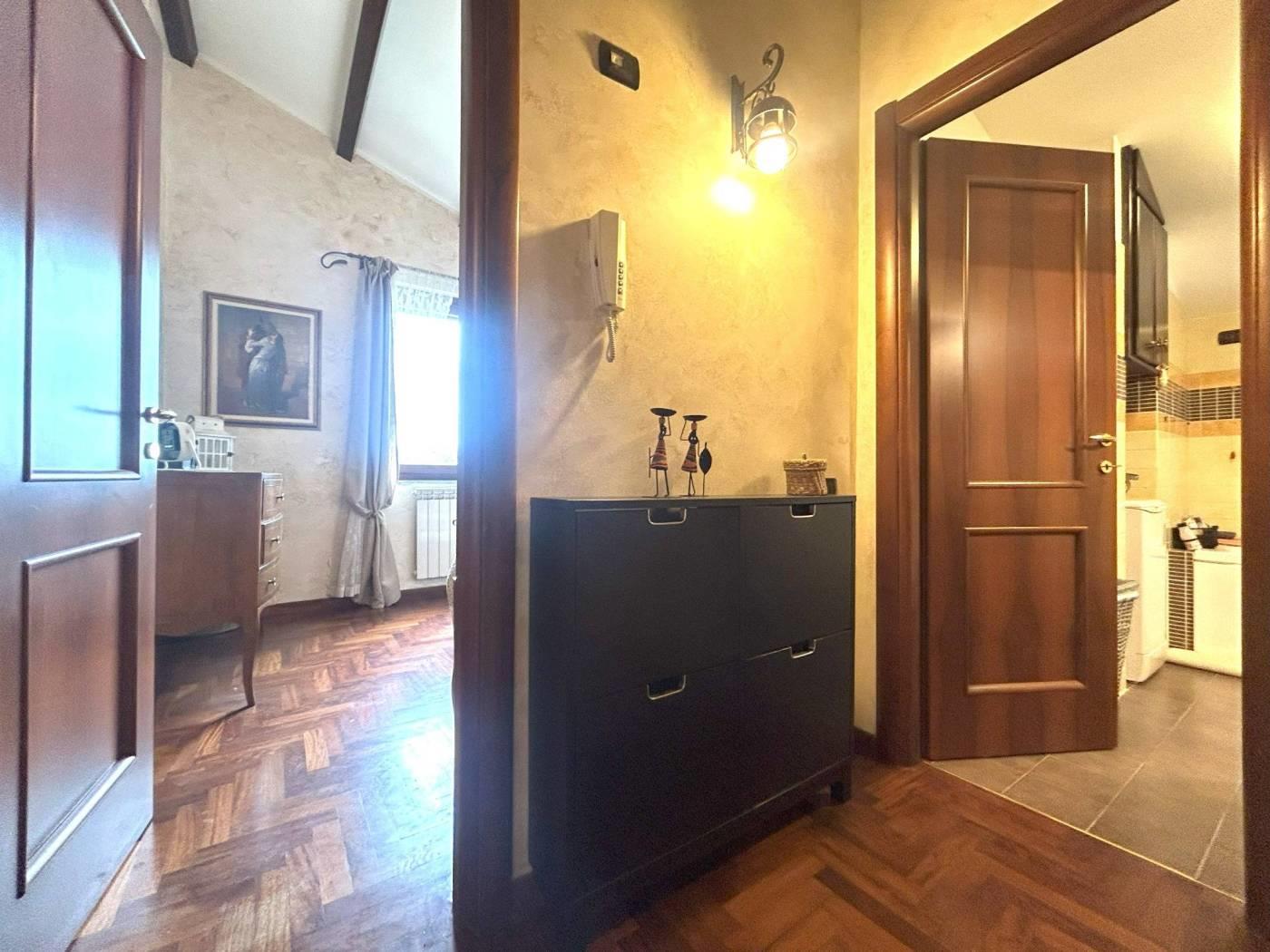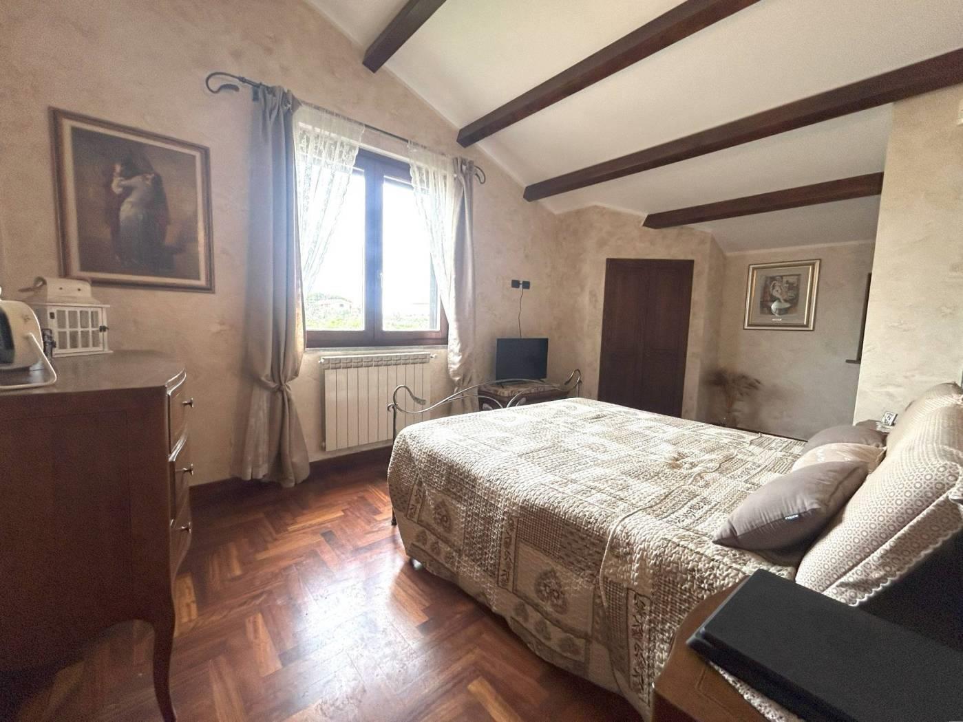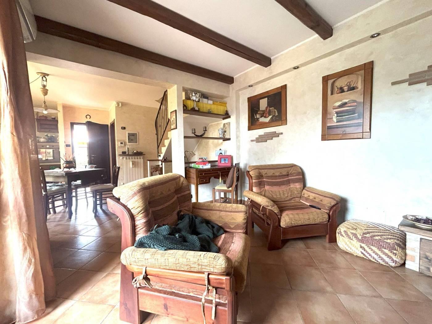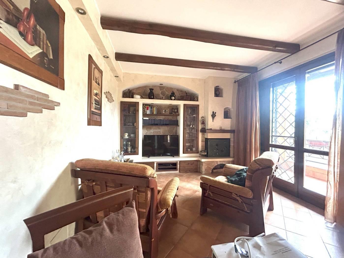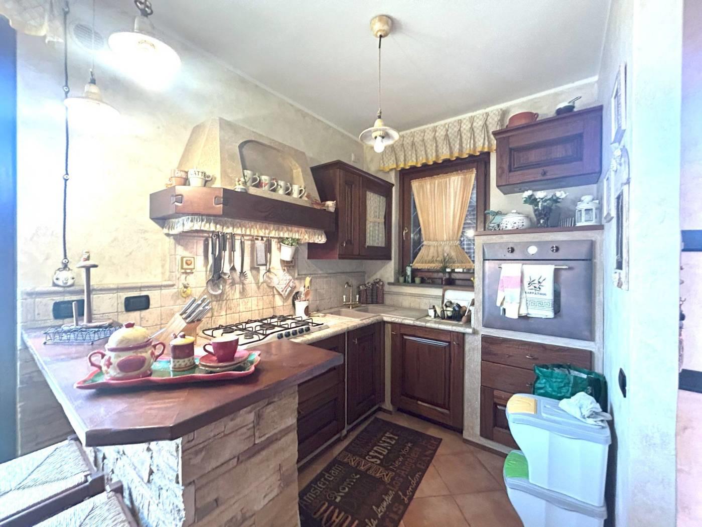 L'immobile presenta ottime rifiniture come travi a vista, pareti di roccia, inferriate e persiane in ferro, zanzariere su tutte le finestre oltre ad allarme, videocitofono e serranda elettrica per il box. L'esposizione principale è ad ovest e gode di un affaccio aperto sulla zona verde circostante molto tranquilla poiché non prevede nuove costruzioni.