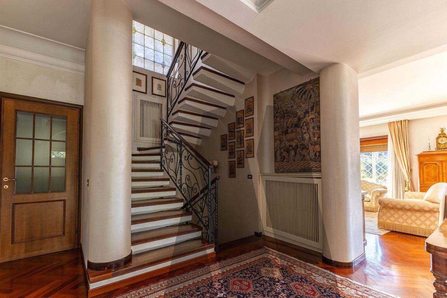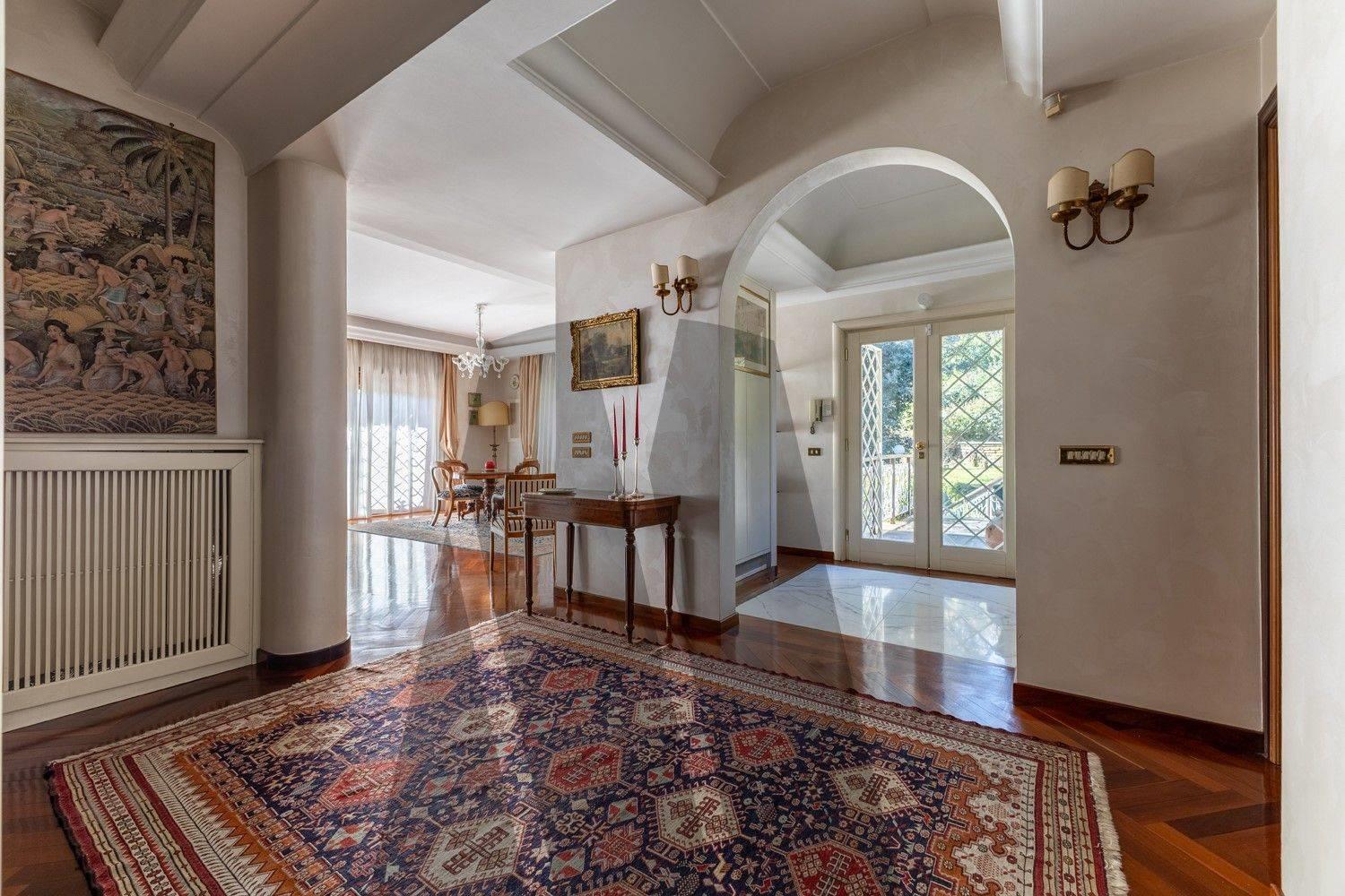 Quartiere EUR Umanesimo, elegante zona residenziale, ambitissima e rinomata, a pochi passi dal laghetto e nelle immediate adiacenze della commerciale Viale Europa. Precisamente in Via Uganda, proponiamo in esclusiva la vendita di una prestigiosa villa bifamiliare, con piscina. In ottimo stato, la villa si compone di due appartamenti e si sviluppa su tre livelli. Al piano terra il primo appartamento di circa 200 mq mentre al primo e secondo piano l'altro appartamento, di complessivi 230 mq. Circondata da uno splendido giardino di 1.100 mq, attrezzato di tutto, con all'interno una grande piscina privata (12x6). Completa la proprietà un grande garage di circa 50 mq e due comode cantine.