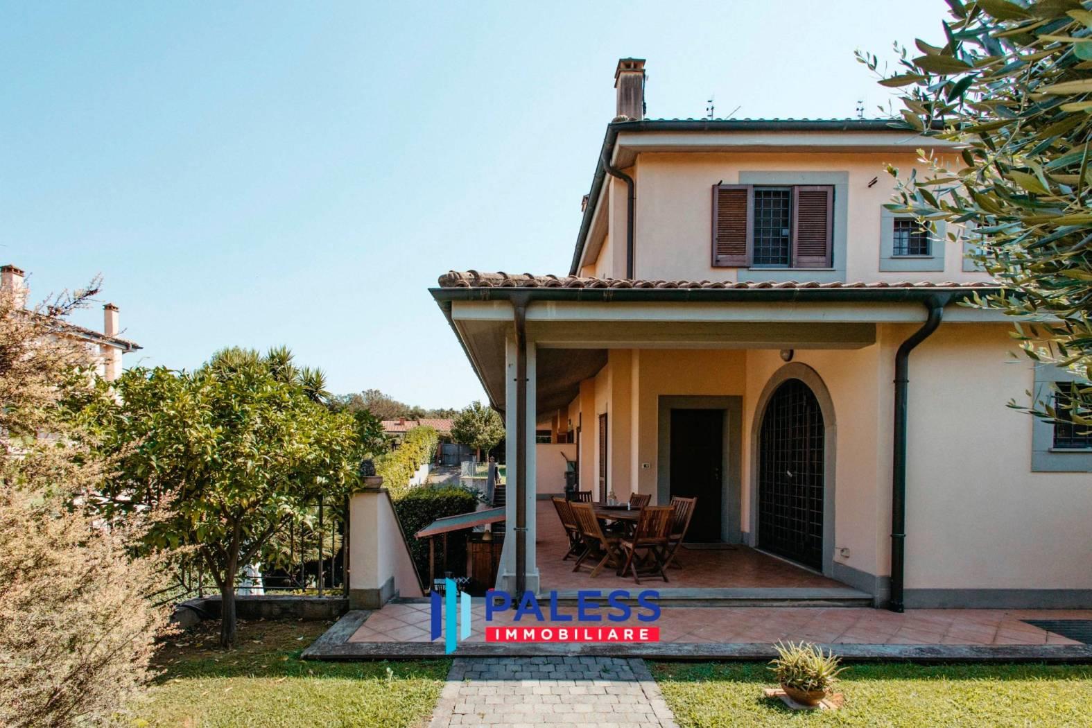 All'interno di un comprensorio di ville prestigiose, proponiamo la vendita di una porzione quadrifamiliare distribuita su tre livelli con giardino di circa 250 mq più spazi patio di circa 25 mq, rampa d'accesso carrabile con ampio spazio di parcheggio.
