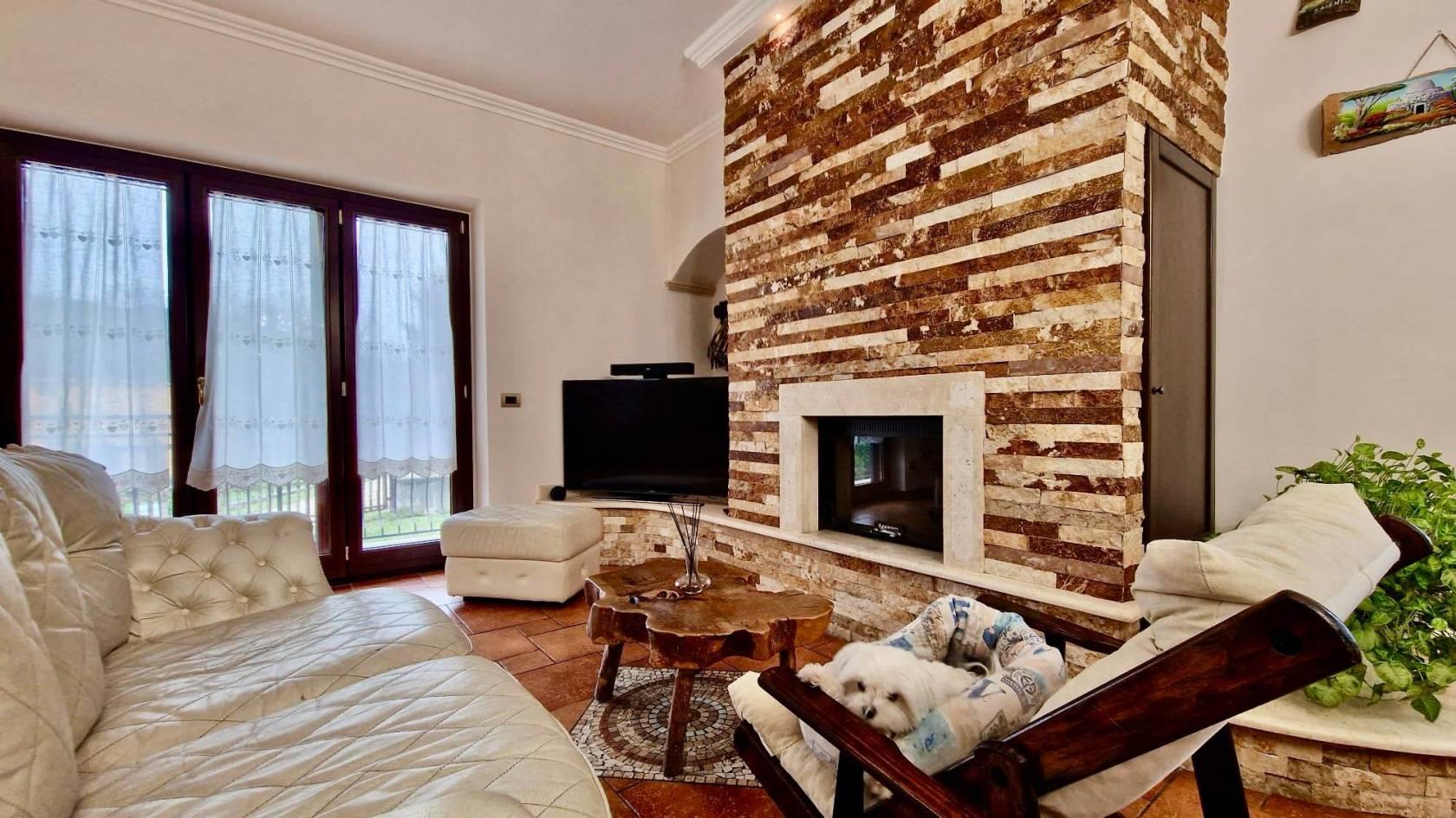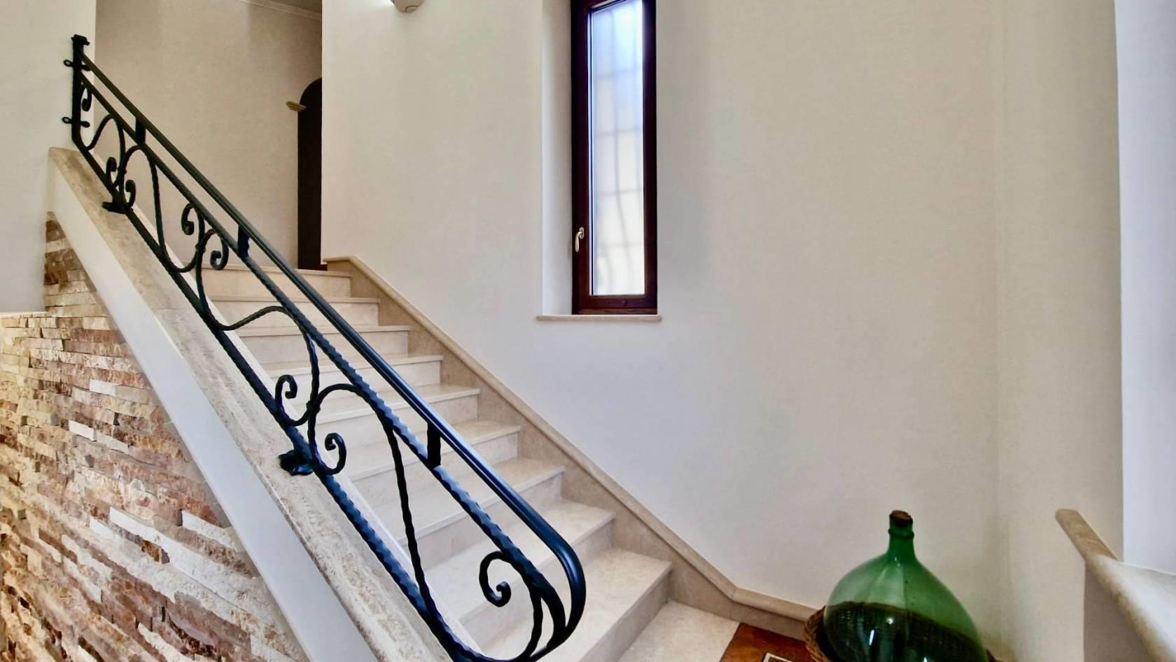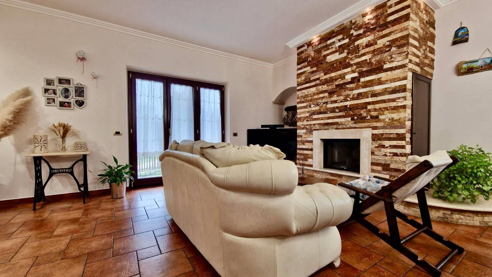 La villa è stata ristrutturata totalmente nel 2015 con particolari e ricercati materiali di prima scelta: scale in marmo, pavimenti in gres porcellanato di prima scelta effetto cotto, infissi in legno interno e alluminio esterno con doppio vetro, marca Schuco e persiane blindate, condizionatori a pompa di calore in tutti gli ambienti con Fan-coil nel salone e nel vano scale, sistema di allarme con video-sorveglianza, termocamino collegato con il sistema di riscaldamento a doppia alimentazione legna/pellet, cisterna riserva acqua con autoclave, predisposizione pannello solare e pozzo artesiano per irrigazione esterna.