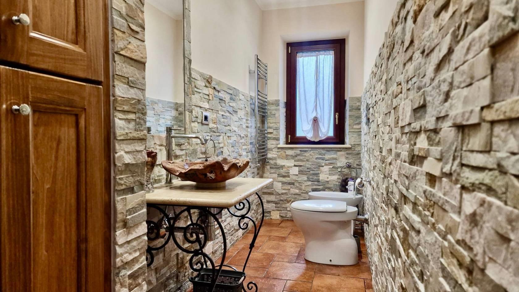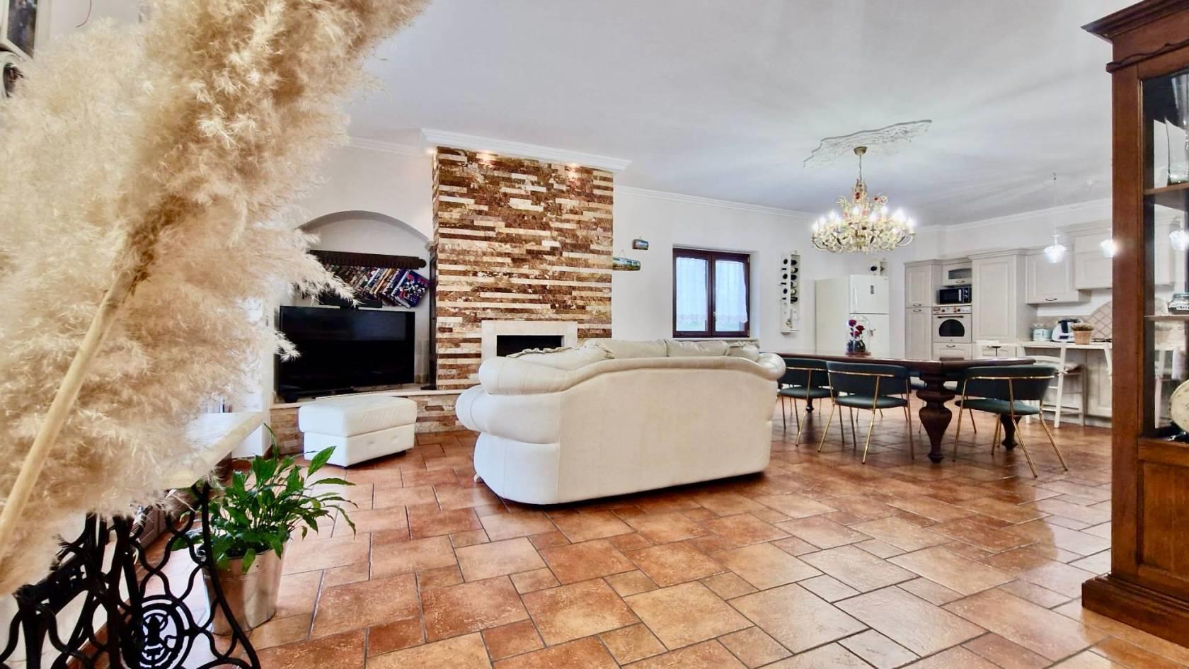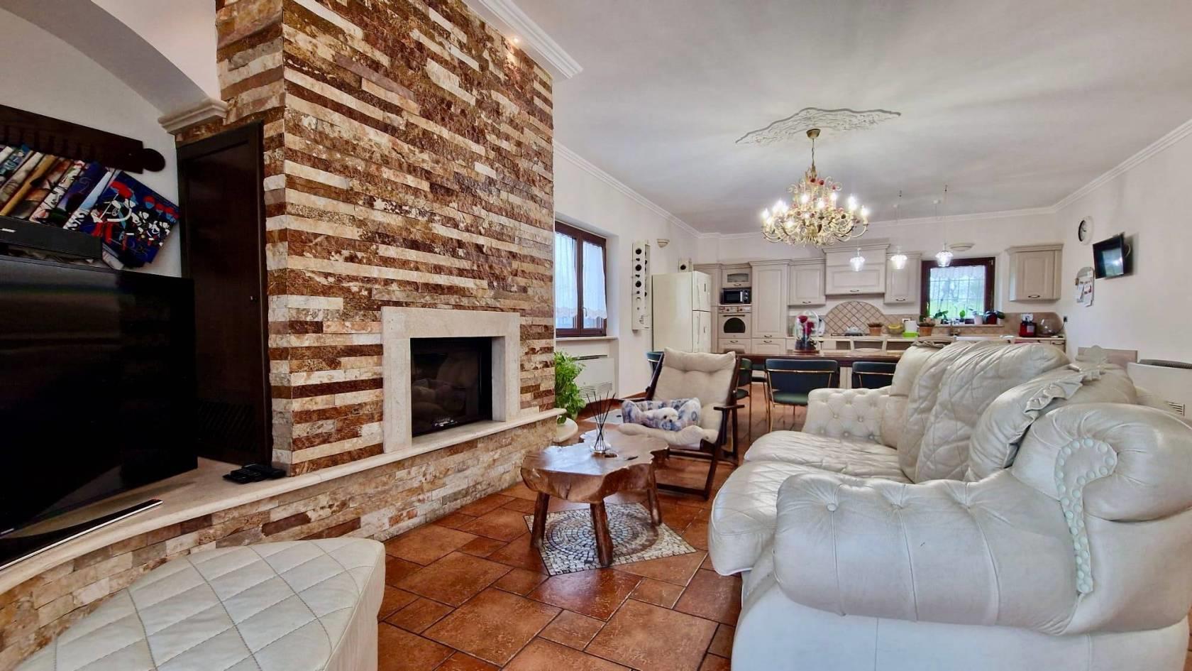 La villa è stata ristrutturata totalmente nel 2015 con particolari e ricercati materiali di prima scelta: scale in marmo, pavimenti in gres porcellanato di prima scelta effetto cotto, infissi in legno interno e alluminio esterno con doppio vetro, marca Schuco e persiane blindate, condizionatori a pompa di calore in tutti gli ambienti con Fan-coil nel salone e nel vano scale, sistema di allarme con video-sorveglianza, termocamino collegato con il sistema di riscaldamento a doppia alimentazione legna/pellet, cisterna riserva acqua con autoclave, predisposizione pannello solare e pozzo artesiano per irrigazione esterna.