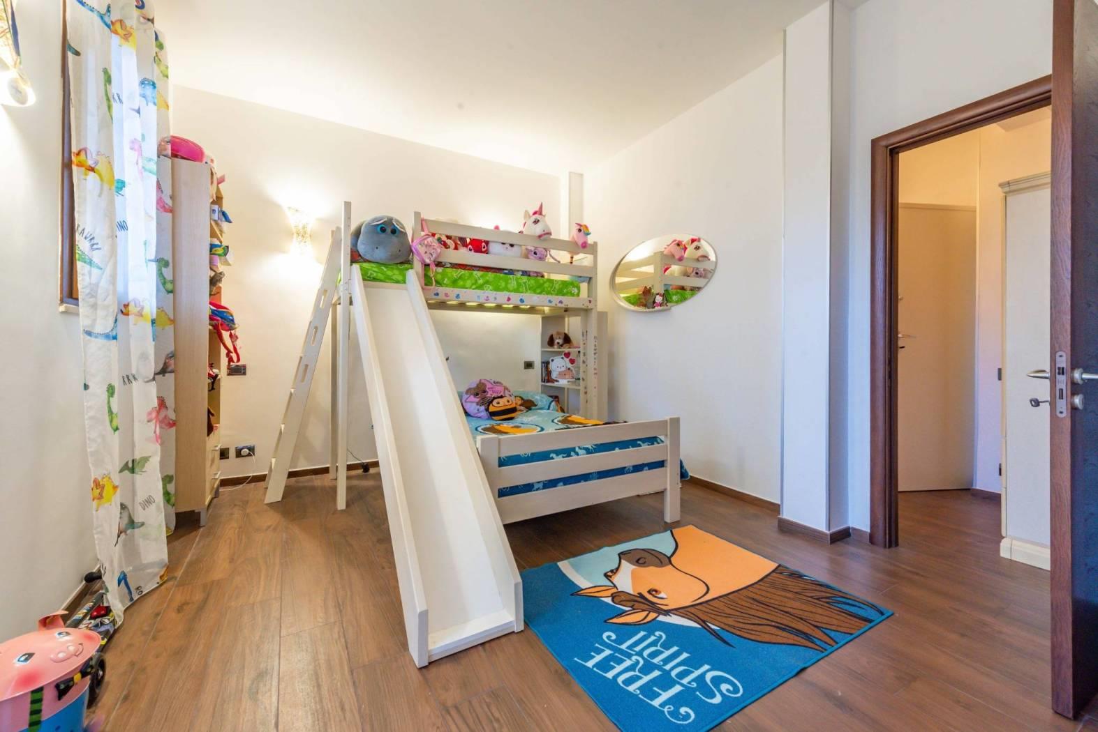 Al Piano Terra troviamo un disimpegno, ampio e luminoso salone con ampie vetrate che affacciano sul bellissimo parco, zona notte leggermente rialzata con due camere da letto (di cui una con bagno en suite), e due grandi cabine armadio, bagno aggiuntivo e comodo balcone a livello.