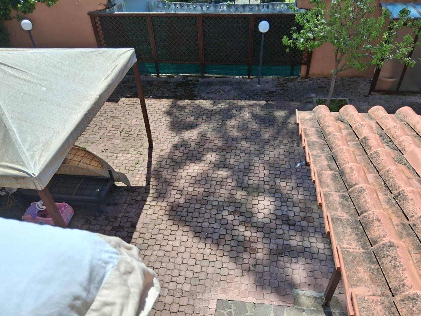 La villa si trova come detto si trova in uno stato manutentivo più che buono, i pavimenti in ceramica al piano terreno e S-1 ed in prquet ai piani primo e secondo. Le GRATE SU OGNI INFISSO sono in perfetto stato, il giardino ad oggi è paviementato, ma è ripristinabile, gira intorno alla casa.