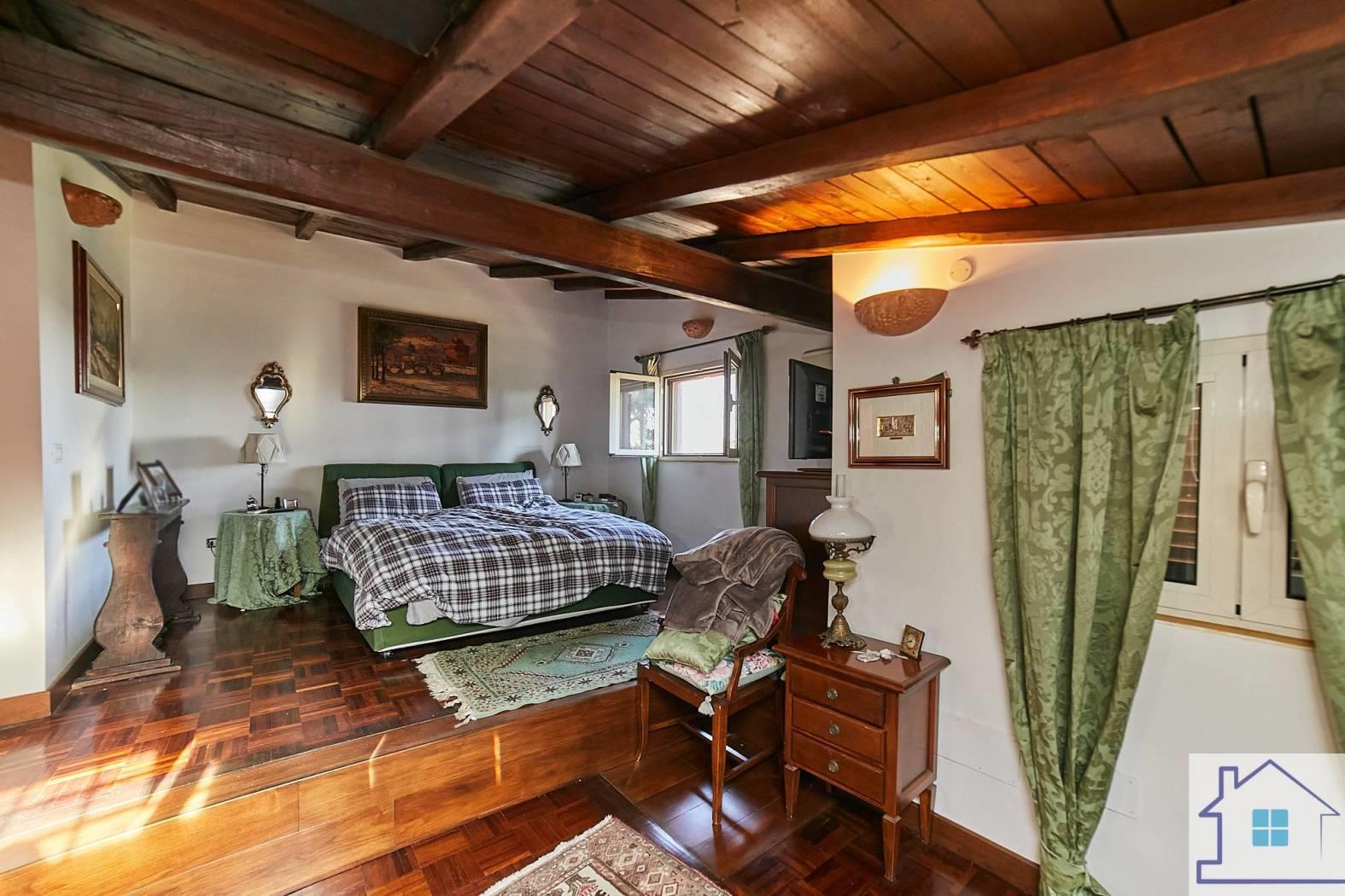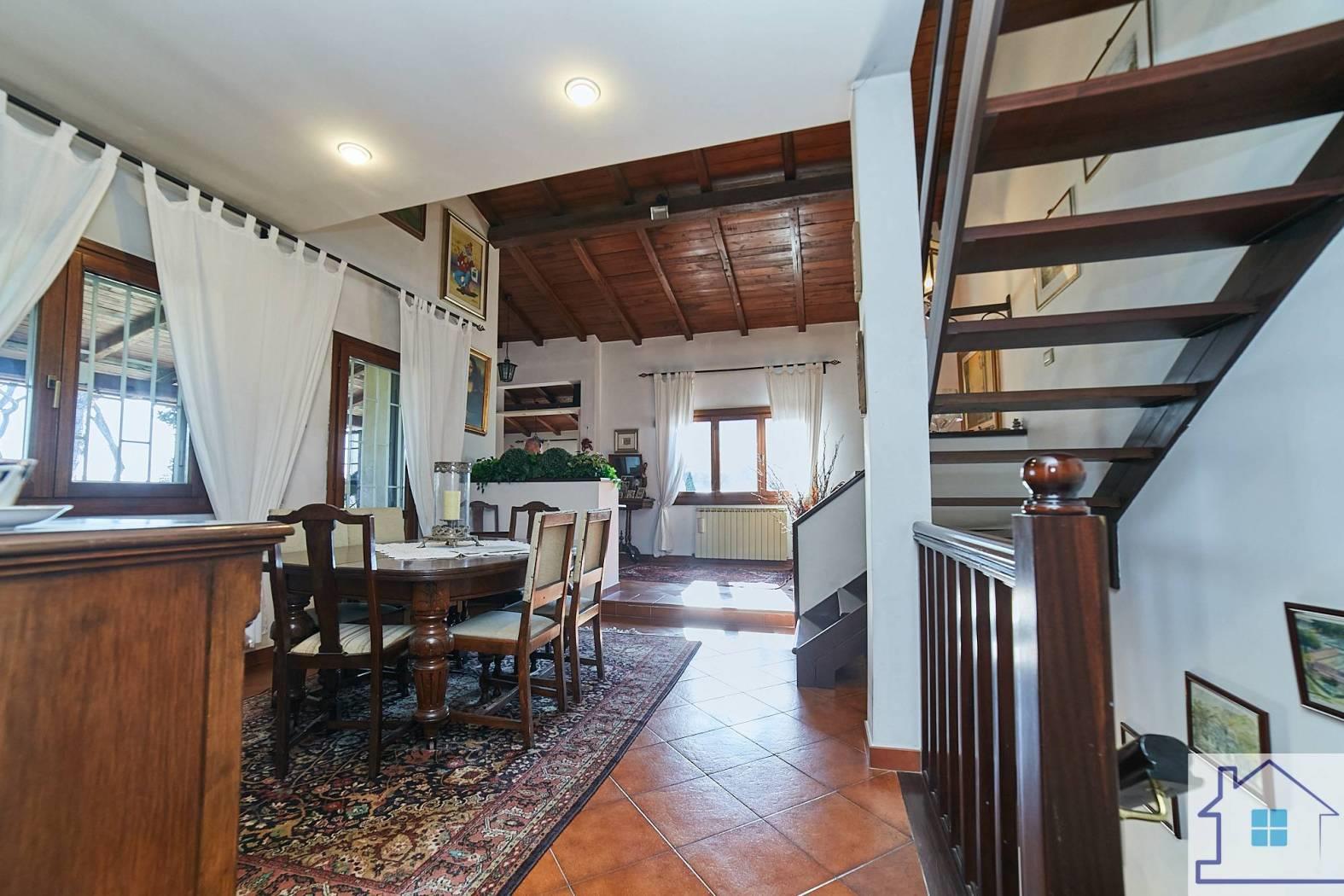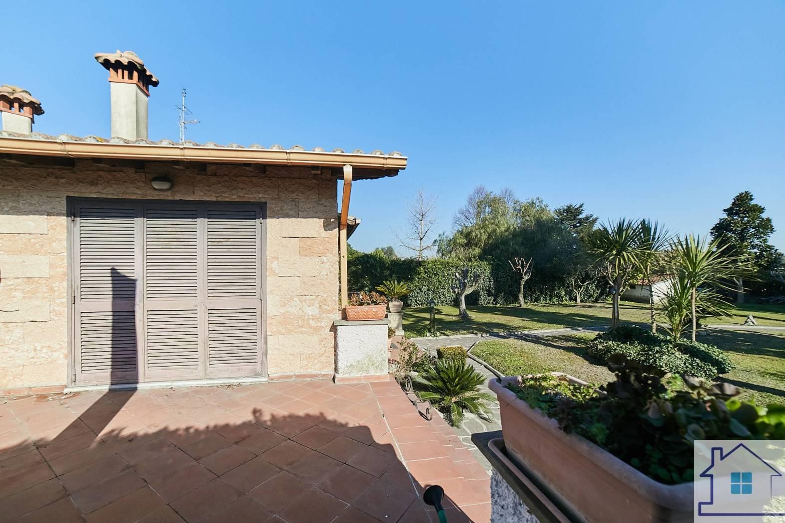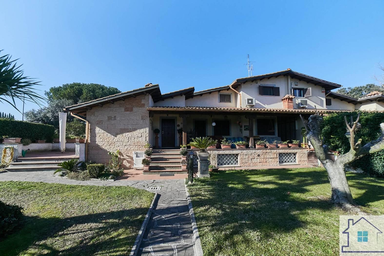 Rif. 0741 - Nella zona Divino Amore-Fioranello, in un contesto residenziale e silenzioso, a pochi passi dal Grande Raccordo Anulare, la Immobiliare Simonetti propone in vendita una splendida villa impreziosita da un ampio giardino di circa 900 mq. La soluzione, in ottime condizioni, si sviluppa su tre livelli per una metratura di circa 221 mq con possibilità di essere suddivisa in due comodi appartamenti indipendenti. L'accesso principale alla villa avviene attraverso uno splendido portico: entrando ci accoglie un salone doppio con ulteriore uscita su un secondo comodo ed ampio terrazzo, una camera da letto matrimoniale (dove esiste una predisposizione per poter installare una cucina, ed un comodo bagno finestrato con doccia. Al primo piano troviamo attualmente una grande camera da letto (divisibile) con cabina armadio e bagno finestrato con doccia, il soffitto di questo piano è gradevolmente rifinito con travi di legno. Il piano seminterrato è particolarmente luminoso in quanto parzialmente sbancato e ricco di ampie finestre. Qui è presente una salone doppio con angolo camino e sala da pranzo, una spaziosa cucina a vista provvista di zona dispensa oltre ad una camera da letto matrimoniale, un bagno finestrato con doccia ed una zona lavanderia. La villa è arricchita da un ampio box e da un ulteriore stanza posta accanto alla cucina del piano seminterrato Attualmente questo ambiente è utilizzato come rispostiglio ed ha l'accesso solamente dalla rampa esterna, ma si potrebbe facilmente annettere alla casa come ulteriore camera. L'immobile è caratterizzato da rifiniture di primissima scelta, pavimenti in cotto, scala in legno, videocitofono, cancello elettrico, impianto di allarme. Non sono presenti spese condominiali