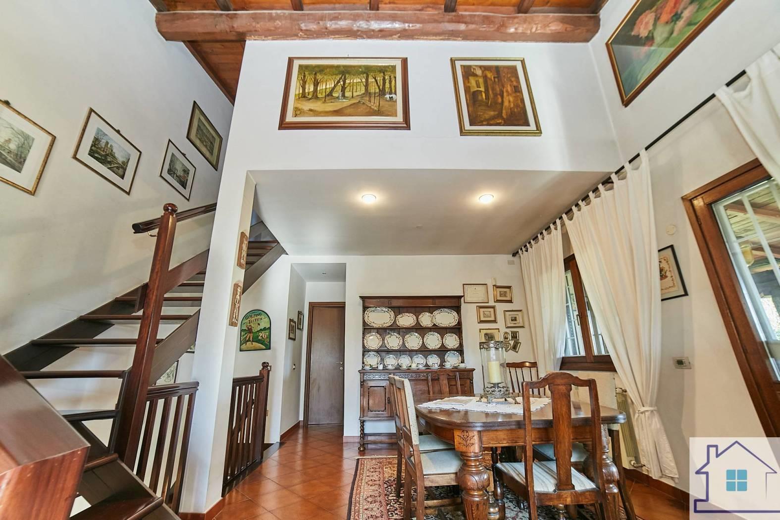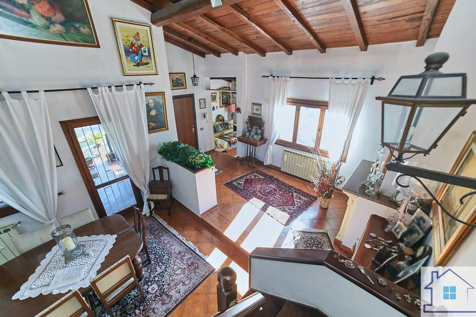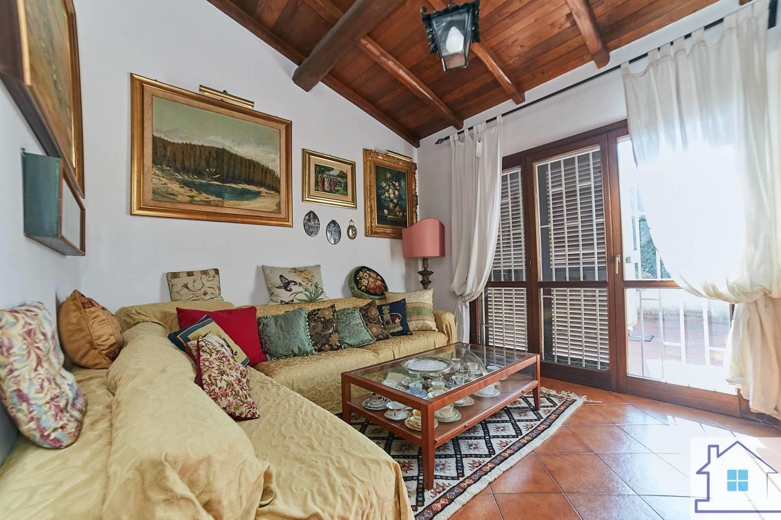 Rif. 0741 - Nella zona Divino Amore-Fioranello, in un contesto residenziale e silenzioso, a pochi passi dal Grande Raccordo Anulare, la Immobiliare Simonetti propone in vendita una splendida villa impreziosita da un ampio giardino di circa 900 mq. La soluzione, in ottime condizioni, si sviluppa su tre livelli per una metratura di circa 221 mq con possibilità di essere suddivisa in due comodi appartamenti indipendenti. L'accesso principale alla villa avviene attraverso uno splendido portico: entrando ci accoglie un salone doppio con ulteriore uscita su un secondo comodo ed ampio terrazzo, una camera da letto matrimoniale (dove esiste una predisposizione per poter installare una cucina, ed un comodo bagno finestrato con doccia. Al primo piano troviamo attualmente una grande camera da letto (divisibile) con cabina armadio e bagno finestrato con doccia, il soffitto di questo piano è gradevolmente rifinito con travi di legno. Il piano seminterrato è particolarmente luminoso in quanto parzialmente sbancato e ricco di ampie finestre. Qui è presente una salone doppio con angolo camino e sala da pranzo, una spaziosa cucina a vista provvista di zona dispensa oltre ad una camera da letto matrimoniale, un bagno finestrato con doccia ed una zona lavanderia. La villa è arricchita da un ampio box e da un ulteriore stanza posta accanto alla cucina del piano seminterrato Attualmente questo ambiente è utilizzato come rispostiglio ed ha l'accesso solamente dalla rampa esterna, ma si potrebbe facilmente annettere alla casa come ulteriore camera. L'immobile è caratterizzato da rifiniture di primissima scelta, pavimenti in cotto, scala in legno, videocitofono, cancello elettrico, impianto di allarme. Non sono presenti spese condominiali