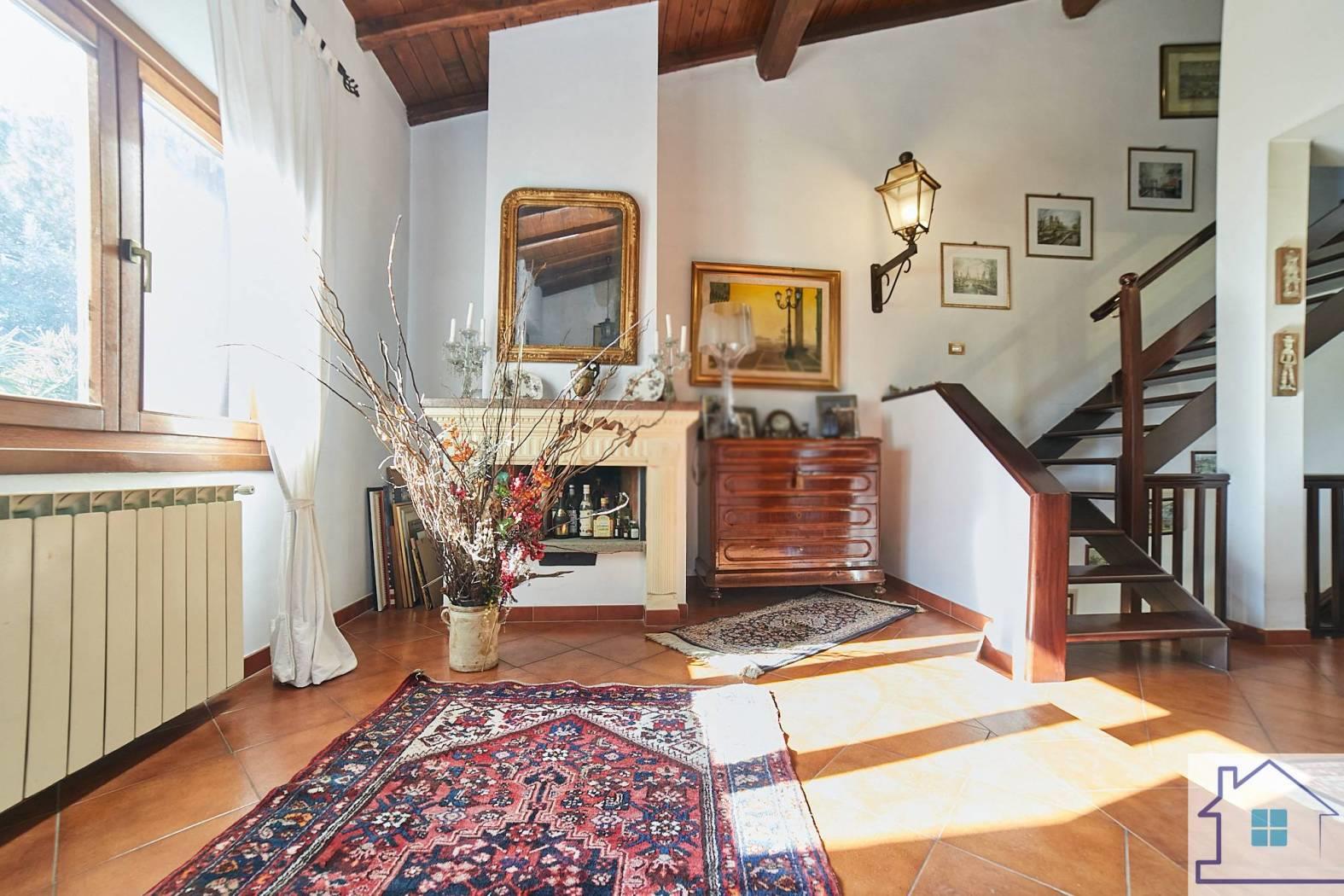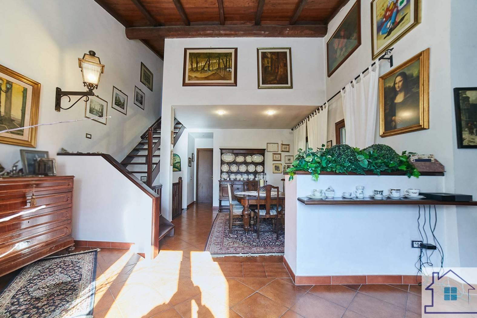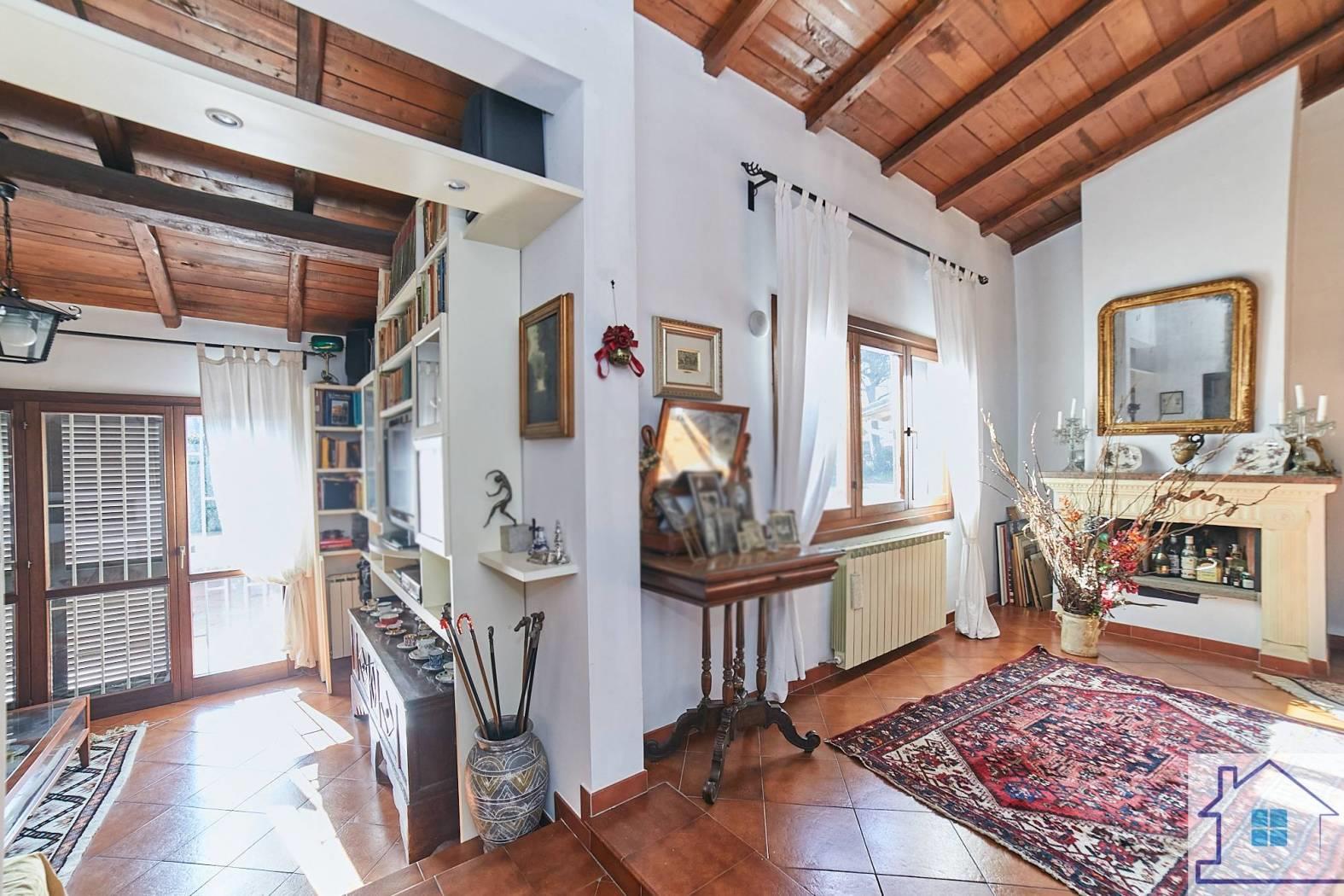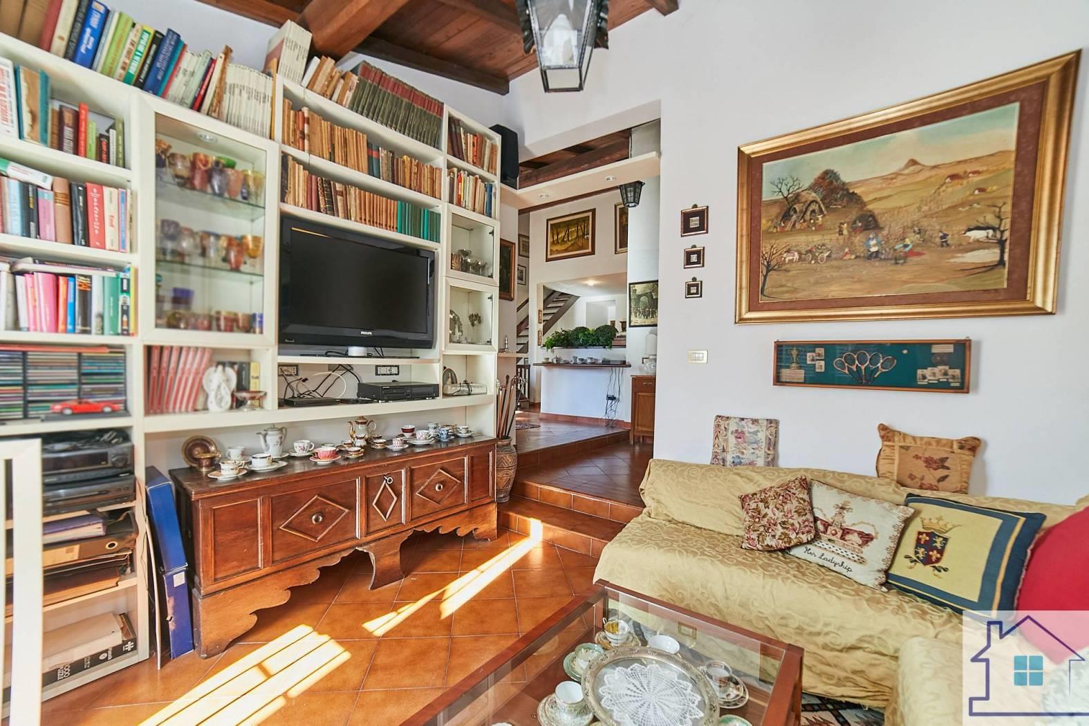 Rif. 0741 - Nella zona Divino Amore-Fioranello, in un contesto residenziale e silenzioso, a pochi passi dal Grande Raccordo Anulare, la Immobiliare Simonetti propone in vendita una splendida villa impreziosita da un ampio giardino di circa 900 mq. La soluzione, in ottime condizioni, si sviluppa su tre livelli per una metratura di circa 221 mq con possibilità di essere suddivisa in due comodi appartamenti indipendenti. L'accesso principale alla villa avviene attraverso uno splendido portico: entrando ci accoglie un salone doppio con ulteriore uscita su un secondo comodo ed ampio terrazzo, una camera da letto matrimoniale (dove esiste una predisposizione per poter installare una cucina, ed un comodo bagno finestrato con doccia. Al primo piano troviamo attualmente una grande camera da letto (divisibile) con cabina armadio e bagno finestrato con doccia, il soffitto di questo piano è gradevolmente rifinito con travi di legno. Il piano seminterrato è particolarmente luminoso in quanto parzialmente sbancato e ricco di ampie finestre. Qui è presente una salone doppio con angolo camino e sala da pranzo, una spaziosa cucina a vista provvista di zona dispensa oltre ad una camera da letto matrimoniale, un bagno finestrato con doccia ed una zona lavanderia. La villa è arricchita da un ampio box e da un ulteriore stanza posta accanto alla cucina del piano seminterrato Attualmente questo ambiente è utilizzato come rispostiglio ed ha l'accesso solamente dalla rampa esterna, ma si potrebbe facilmente annettere alla casa come ulteriore camera. L'immobile è caratterizzato da rifiniture di primissima scelta, pavimenti in cotto, scala in legno, videocitofono, cancello elettrico, impianto di allarme. Non sono presenti spese condominiali