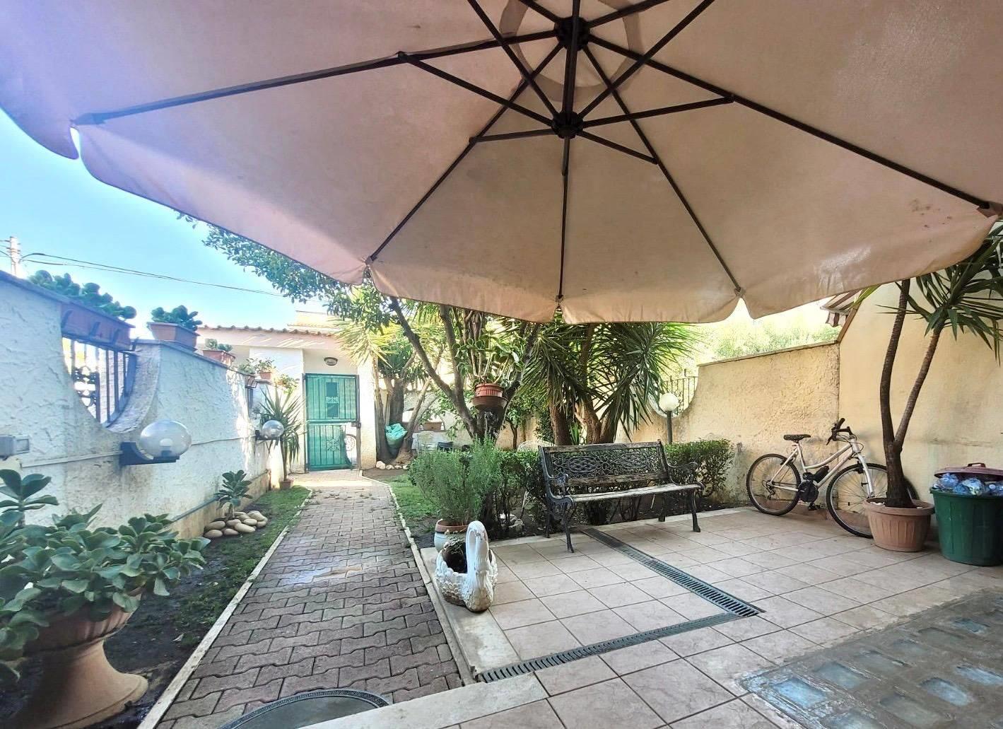 Piano Terra: un giardino d'ingresso con zona verde e un ampio patio di circa 60 mq, perfetto per trascorrere momenti all'aperto in totale relax. All'interno, troverai un luminoso salotto, un bagno e una cucina abitabile con porta finestra che dà accesso a un secondo giardino sul retro, dove si trova anche uno stanzino, ideale come lavanderia.