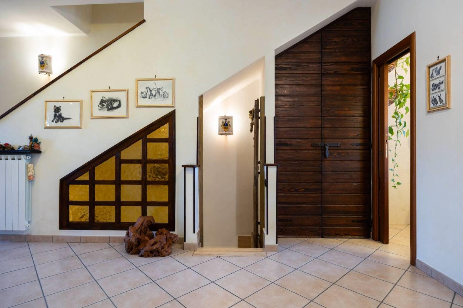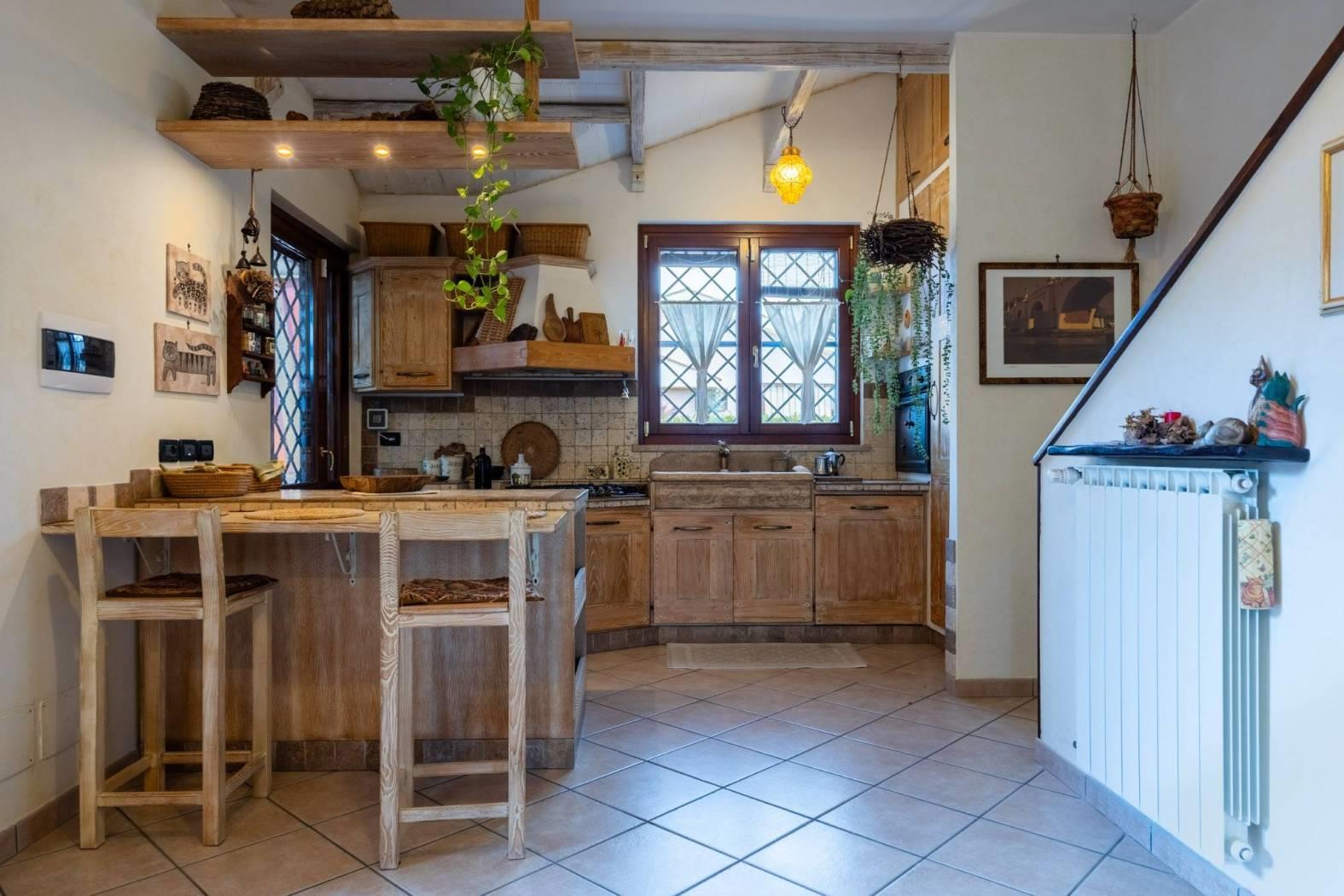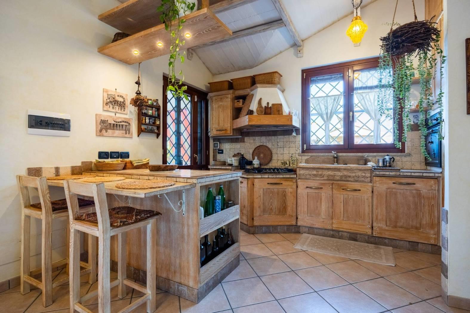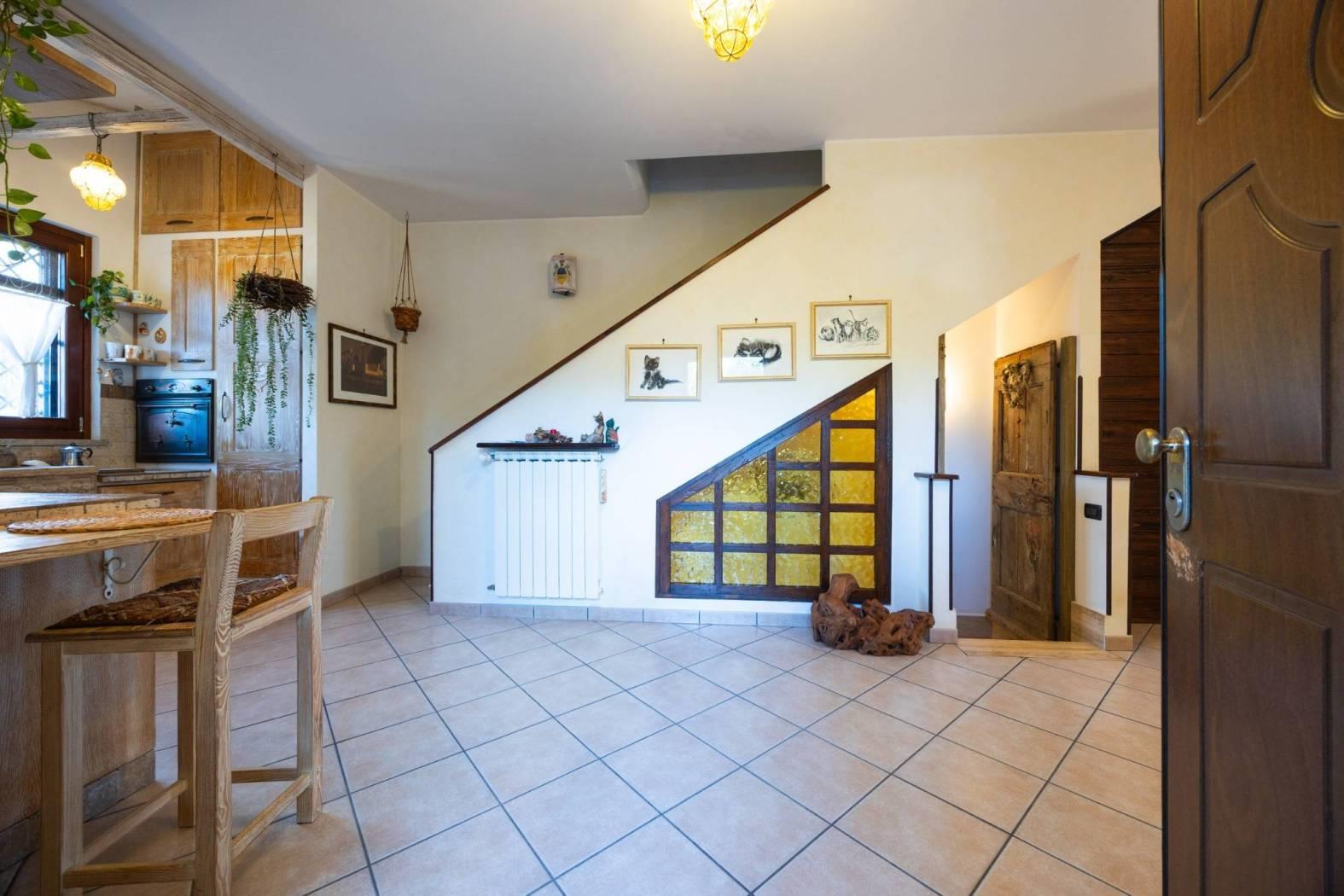 Infernetto - Via Castello Tesino all'interno di un comprensorio privato chiuso, proponiamo in vendita un rifinitissimo villino in bifamiliare che si sviluppa su tre livelli. Accediamo all'immobile attraverso un patio coperto e ci troviamo nella zona giorno che è composta da salone con camino, una cucina di pregio in castagno decapato con lavello in blocco di marmo scolpito a mano, la zona relax con il divano e un bagno. Attraverso una comoda scala, scendiamo nell'ampia camera da letto con aria condizionata servita da un bagno e da un'ampia cabina armadio. Nello stesso piano troviamo l'intercapedine, molto ampia, che si sviluppa su due lati che è rifinita con intonaco, pavimento piastrellato e con scaffalature e che viene usata come cantina. Al piano mansarda troviamo un'altra camera con velux. La villa è contornata da un curatissimo giardino che si sviluppa su tre lati dove troviamo piante ad alto fusto, due ulivi, un falso pepe, un albicocco, un prugno, un limone, un arancio, oltre ad un angolo con lentisco, corbezzolo e mirto. Sempre nel giardino, rimane un grigliato in legno che lo contorna, un lavello in muratura, l'impianto di irrigazione a tre zone, la tettoia, la casetta in muratura per gli attrezzi e un armadio in muratura. L'immobile ha impianto di condizionamento in ogni piano, l'impianto elettrico sezionato con due quadri ed interruttore generale di auto ripristino, tende parasole (4) su tutto il patio, la predisposizione per l'allarme e pannelli fotovoltaici (impianto da 3 KW) e valvole di ritorno su scarichi acque piovane. Esposizione solare su tre lati, Nord/Est/Ovest.