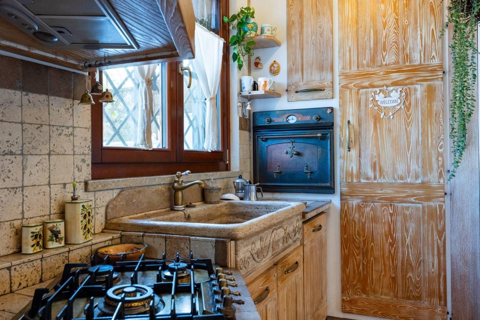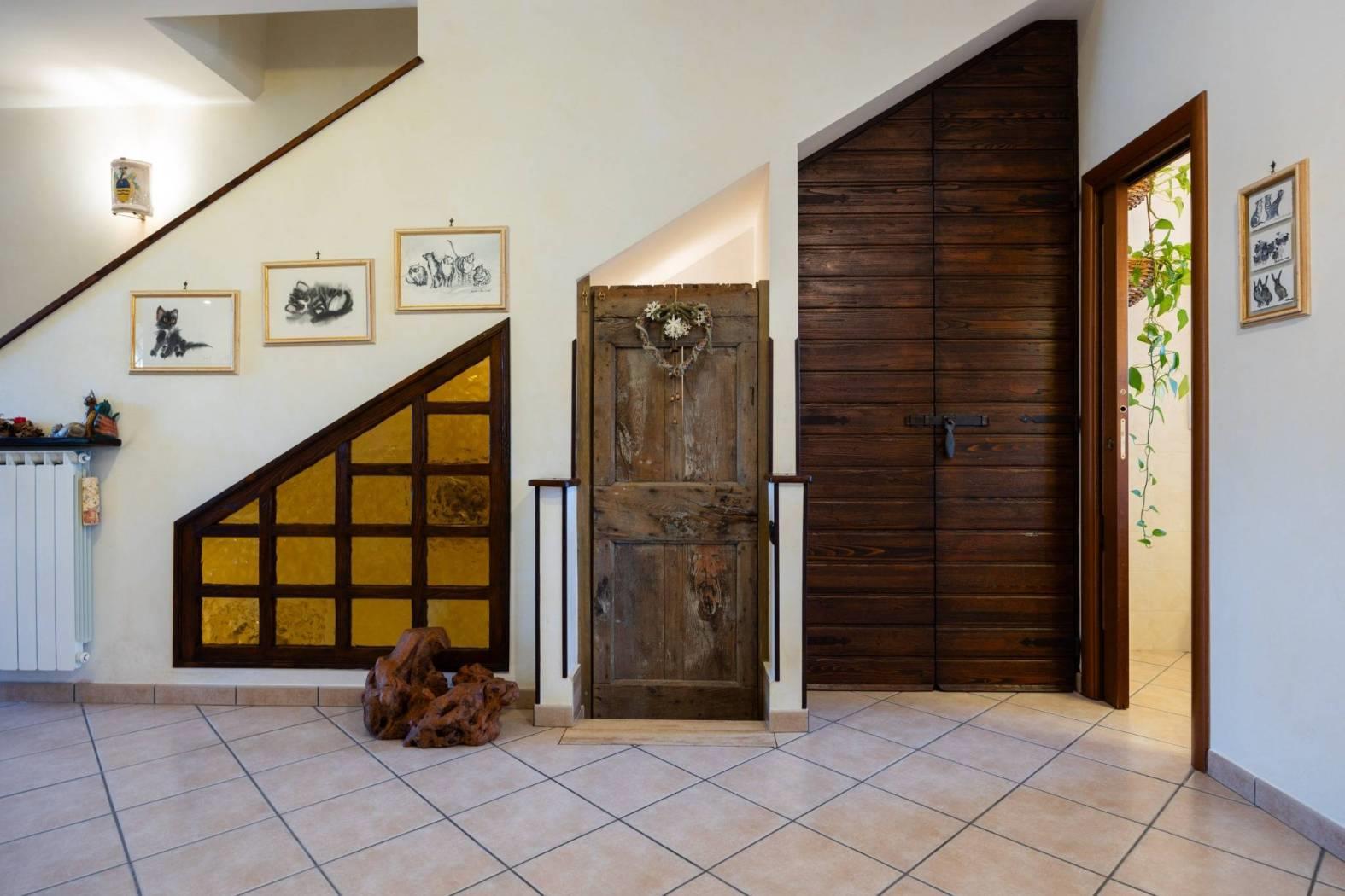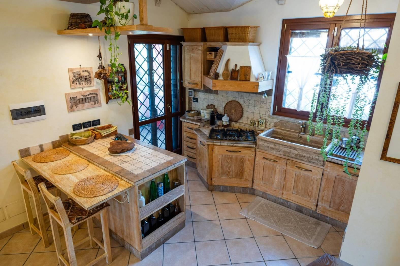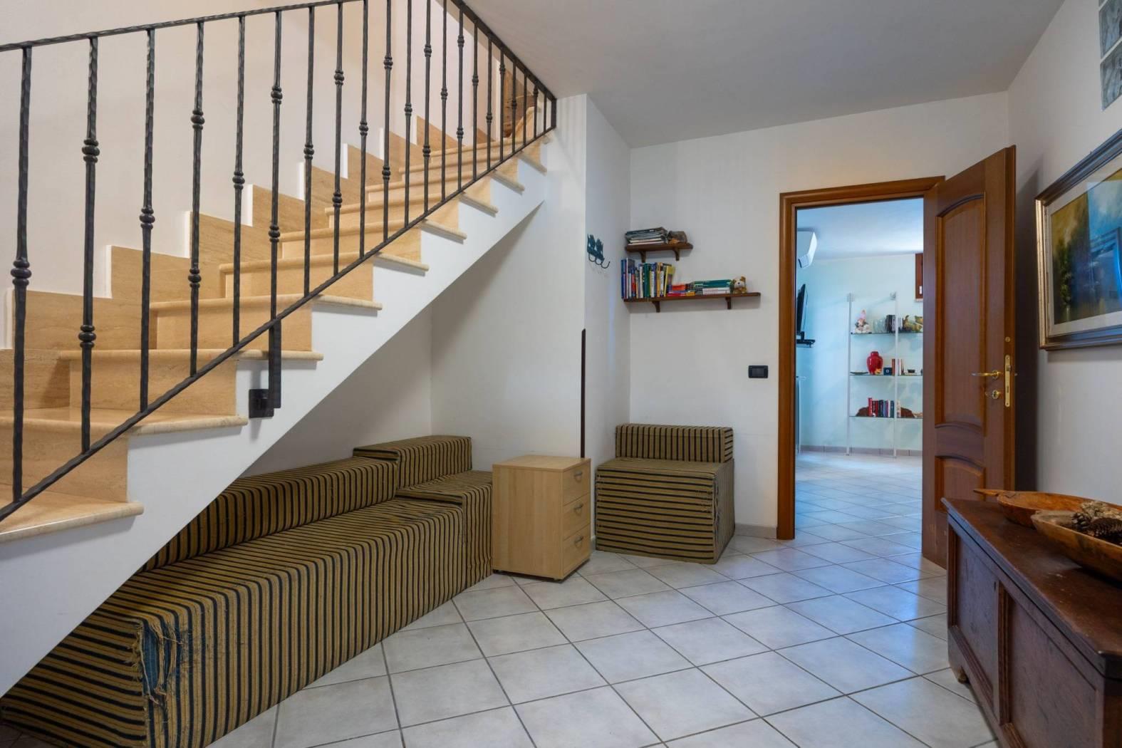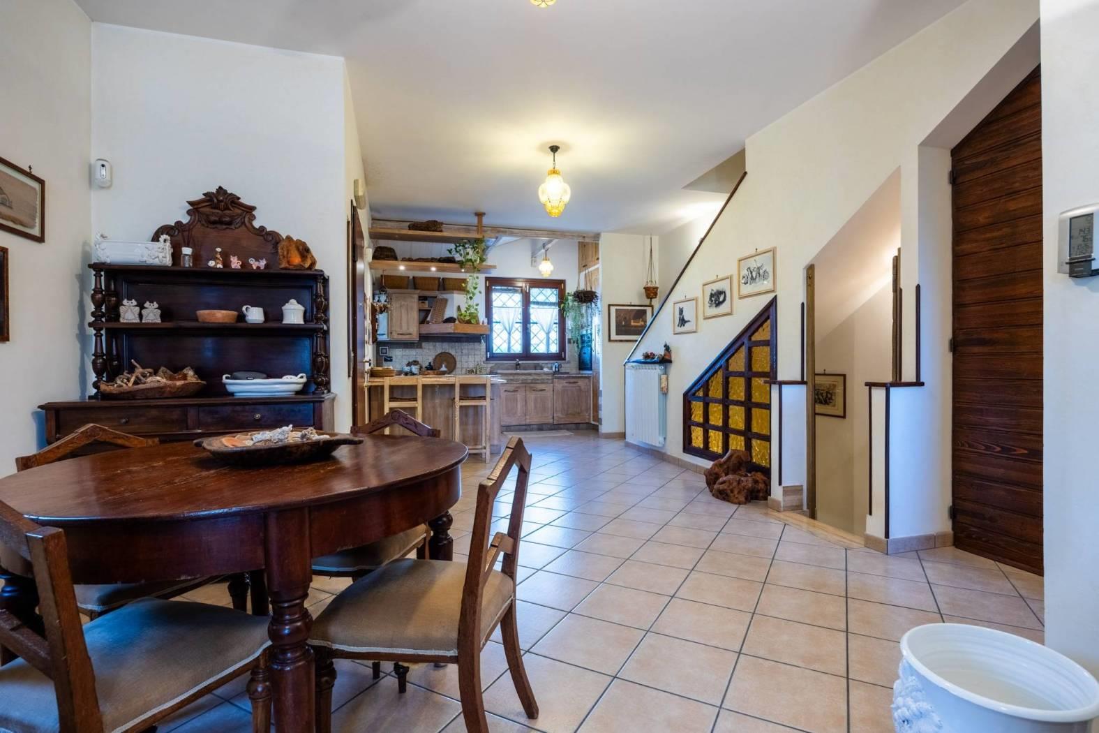 Infernetto - Via Castello Tesino all'interno di un comprensorio privato chiuso, proponiamo in vendita un rifinitissimo villino in bifamiliare che si sviluppa su tre livelli. Accediamo all'immobile attraverso un patio coperto e ci troviamo nella zona giorno che è composta da salone con camino, una cucina di pregio in castagno decapato con lavello in blocco di marmo scolpito a mano, la zona relax con il divano e un bagno. Attraverso una comoda scala, scendiamo nell'ampia camera da letto con aria condizionata servita da un bagno e da un'ampia cabina armadio. Nello stesso piano troviamo l'intercapedine, molto ampia, che si sviluppa su due lati che è rifinita con intonaco, pavimento piastrellato e con scaffalature e che viene usata come cantina. Al piano mansarda troviamo un'altra camera con velux. La villa è contornata da un curatissimo giardino che si sviluppa su tre lati dove troviamo piante ad alto fusto, due ulivi, un falso pepe, un albicocco, un prugno, un limone, un arancio, oltre ad un angolo con lentisco, corbezzolo e mirto. Sempre nel giardino, rimane un grigliato in legno che lo contorna, un lavello in muratura, l'impianto di irrigazione a tre zone, la tettoia, la casetta in muratura per gli attrezzi e un armadio in muratura. L'immobile ha impianto di condizionamento in ogni piano, l'impianto elettrico sezionato con due quadri ed interruttore generale di auto ripristino, tende parasole (4) su tutto il patio, la predisposizione per l'allarme e pannelli fotovoltaici (impianto da 3 KW) e valvole di ritorno su scarichi acque piovane. Esposizione solare su tre lati, Nord/Est/Ovest.