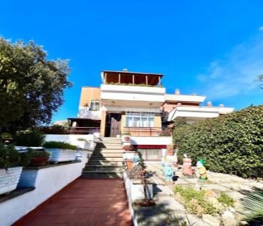 - Ingresso al piano terra tramite portico, sala, cucina abitabile, camera e bagno; tramite comoda scala interna si accede sia al Piano 1°: composto da n° 2 camere, bagno e antibagno e balcone (Vista Mare), sia alla ampia taverna (provvista anche di accesso autonomo), composta da: ampio salone con camino, cucina, servizio, 2 vani.