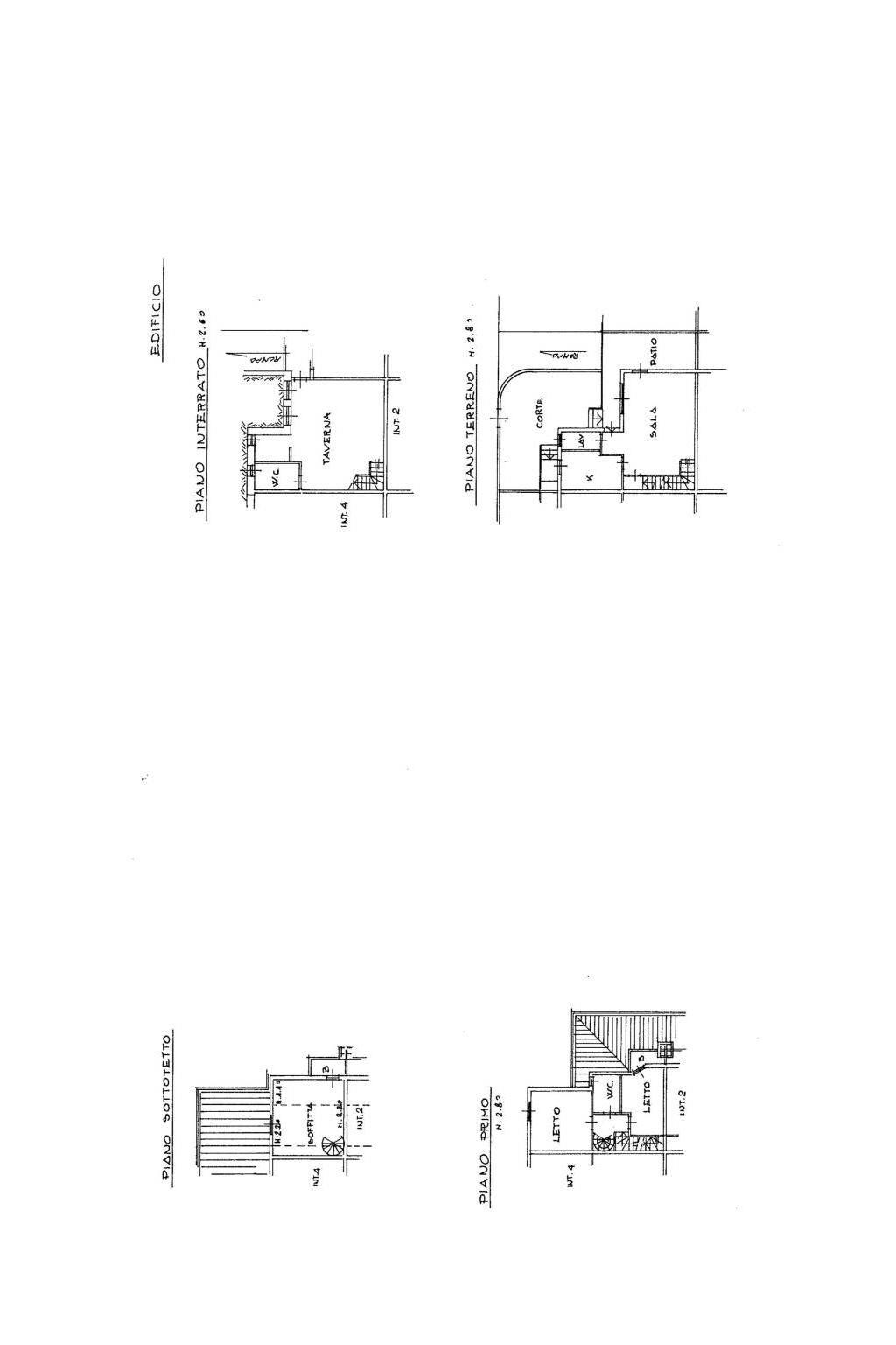 Piano Terra: ampio salone doppio, cucina (attualmente adibita a studio), bagno (oggi utilizzato come cabina armadio), portico e giardino pavimentato ideale per pranzi all’aperto.