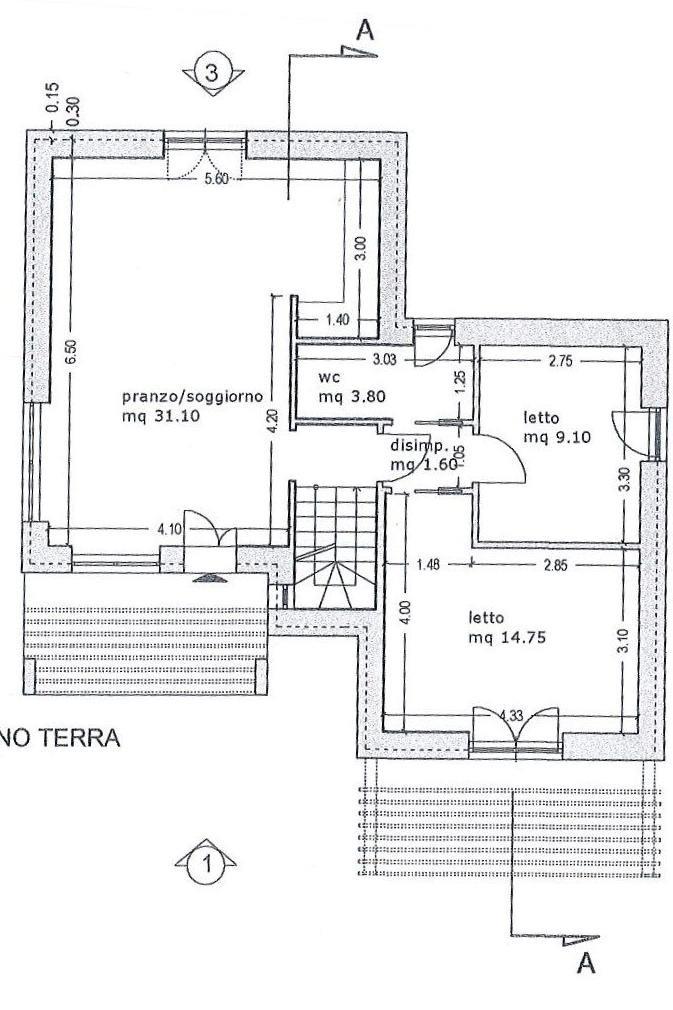 Piano Primo Mansardato Alto ( mt 1,70 altezza minima ) composto da 2 Ampie Camere Matrimoniali, Bagno, Terrazzo.