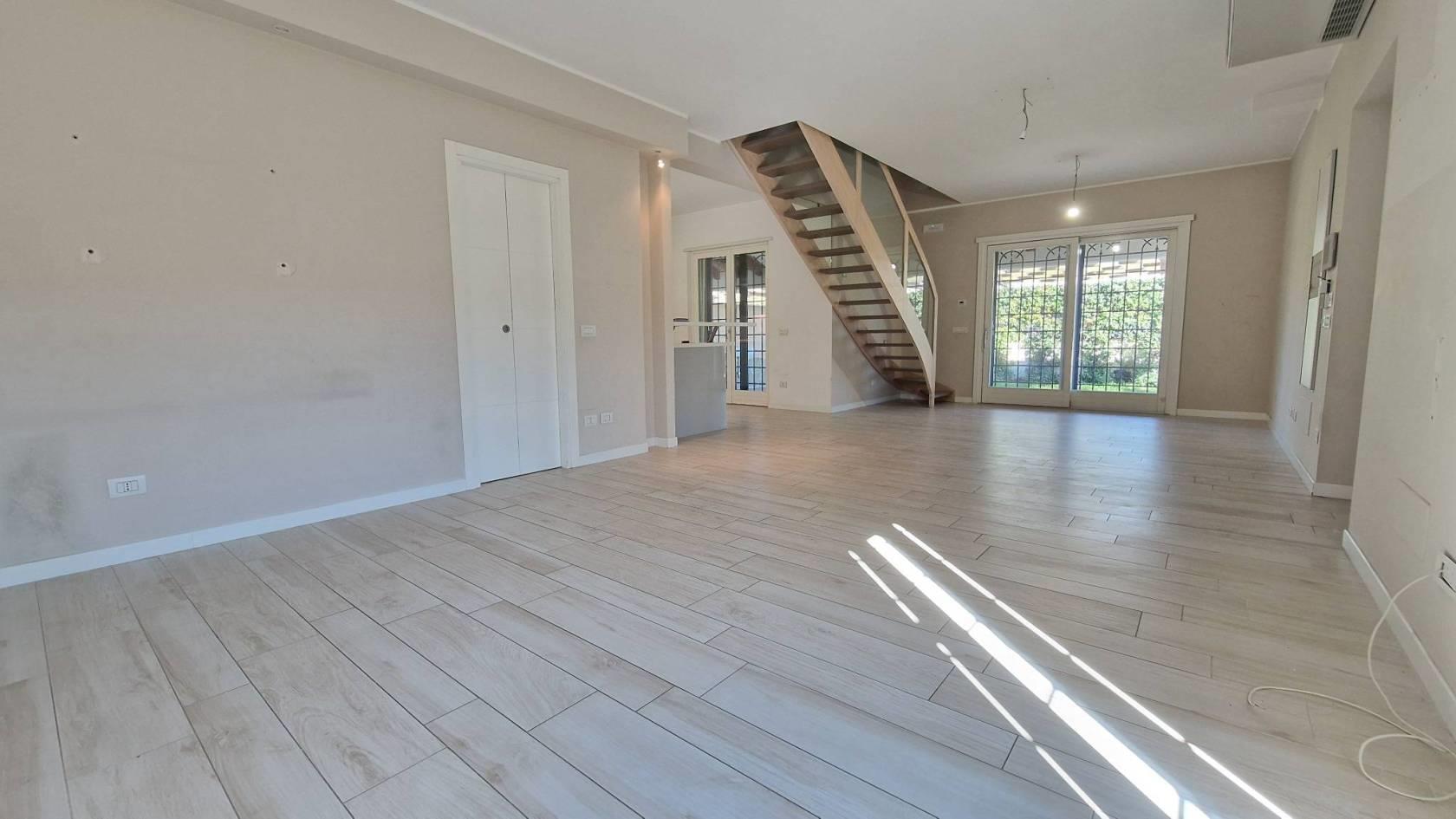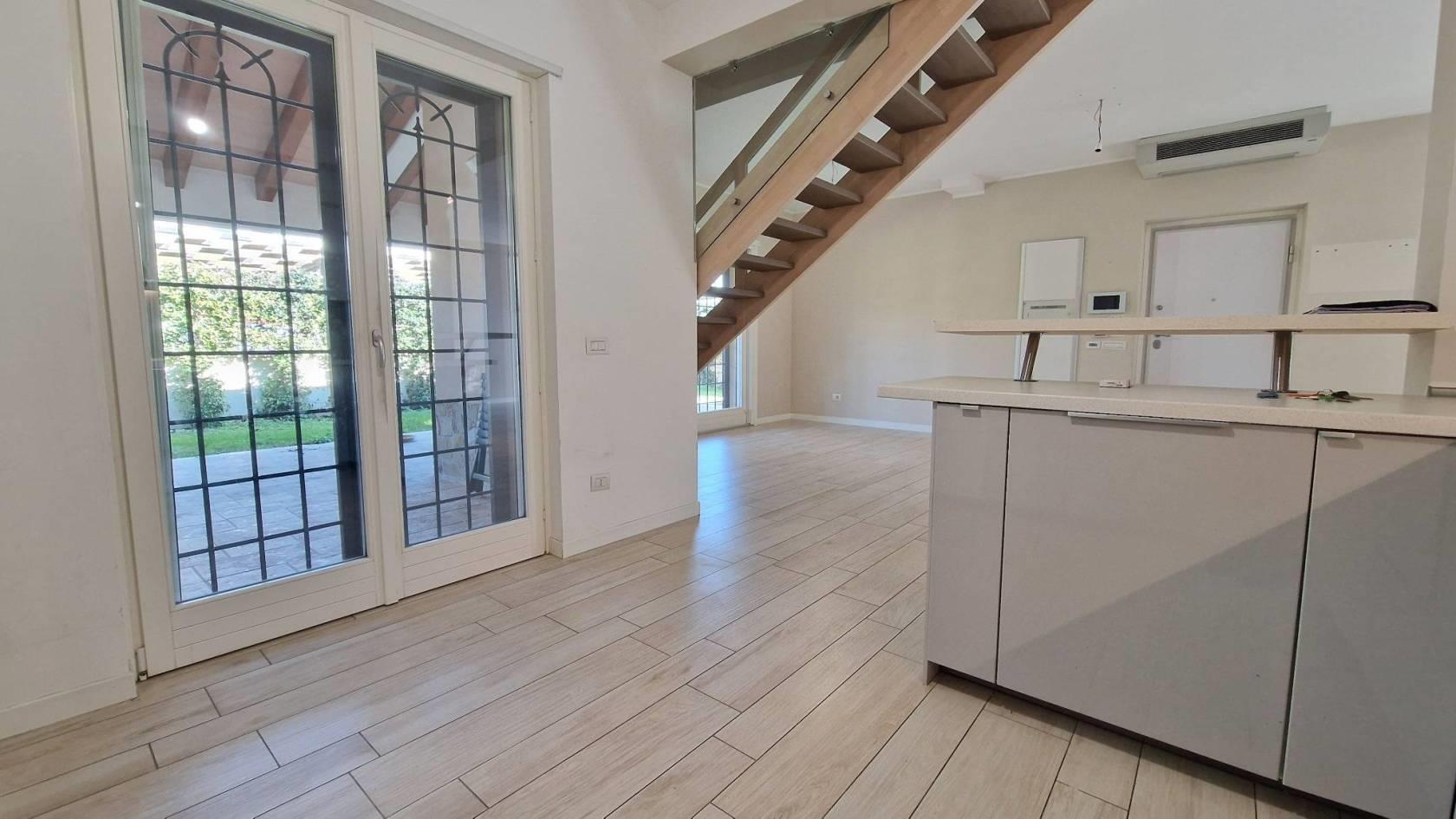 L'immobile, dotato di un bellissimo giardino privato perimetrale in parte coperto, internamente è composto da un salone doppio dal quale si accede alla grande cucina a vista, bagno con antibagno, lavanderia e locale tecnico mentre al piano superiore al quale si accede tramite una bellissima scala in legno e vetro troviamo tre grandi ambienti mansardati ma comletamente sfruttabili con servizio.