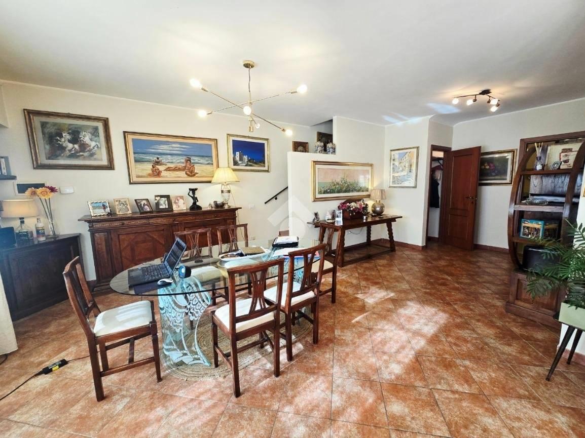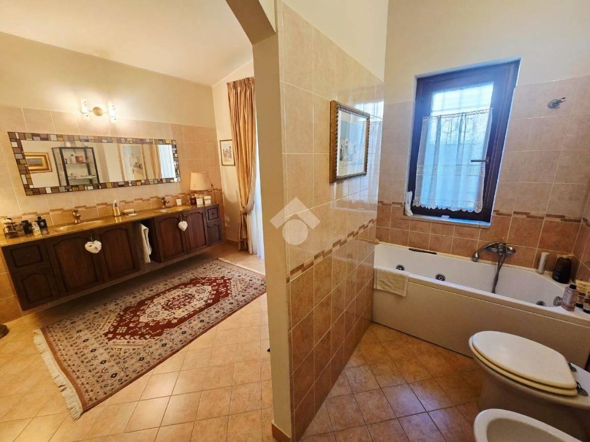 La scala interna rivestita in marmo conduce al piano superiore, dedicato interamente alla zona notte e arricchito da due ampie camere matrimoniali padronali con balcone, due ulteriori camere da letto da adibire eventualmente a camera per gli ospiti e/o studio, da un bagno di servizio adibito anche a lavanderia con accesso diretto agli spazi esterni e da un’elegante bagno padronale con doppio lavabo e vasca idromassaggio. Il disimpegno del piano consente sia una suddivisione in 2 unità abitative grazie ad un secondo accesso tramite scala esterna o la realizzazione di una quinta camera.