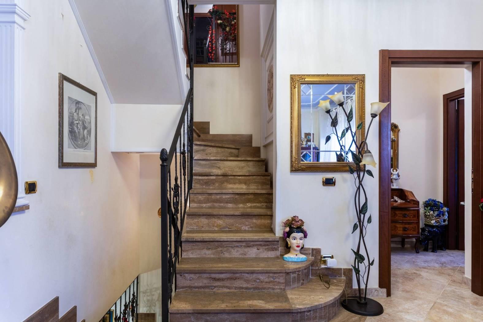 La casa, ristrutturata con materiali di pregio e circondata un curato giardino attrezzato in parte pavimentato, arricchito da una splendida piscina, si sviluppa su tre livelli: