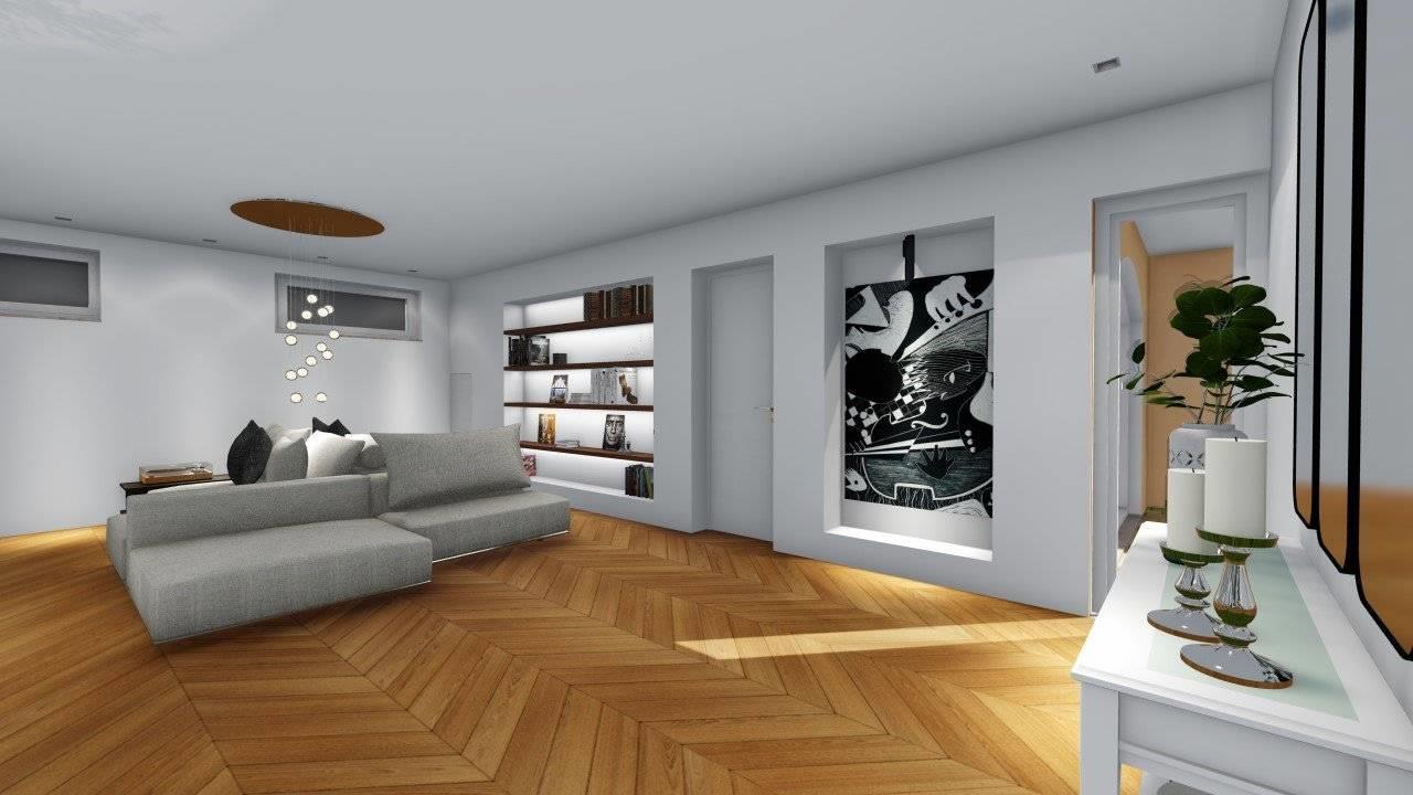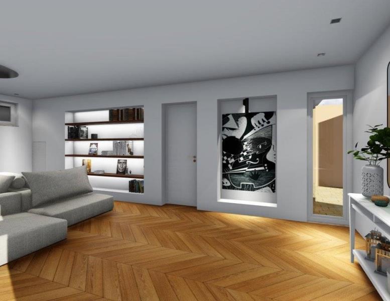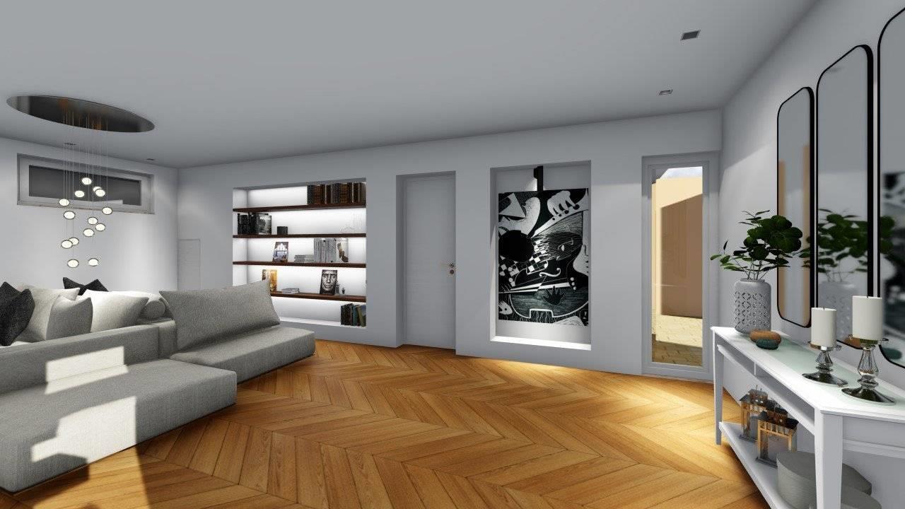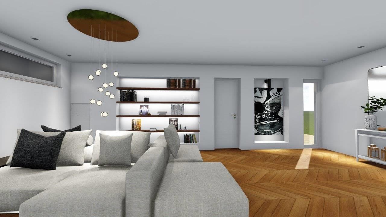 PIANO TERRA: ampio salone con cucina abitabile, un bagno e affaccio sul giardino;