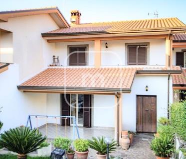 seminterrato vi è il garage, al piano terra vi è salone, cucina e una camera, e al piano primo vi sono due camere e un bagno, quest’ultimo collegati tra loro da scala interna, con annesso giardino di pertinenza esclusiva della superficie complessiva di circa mq 350.