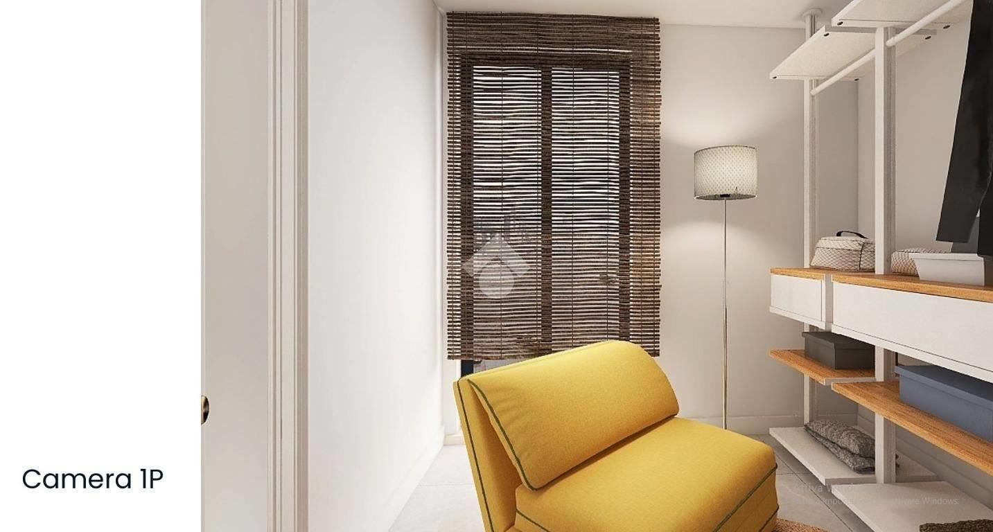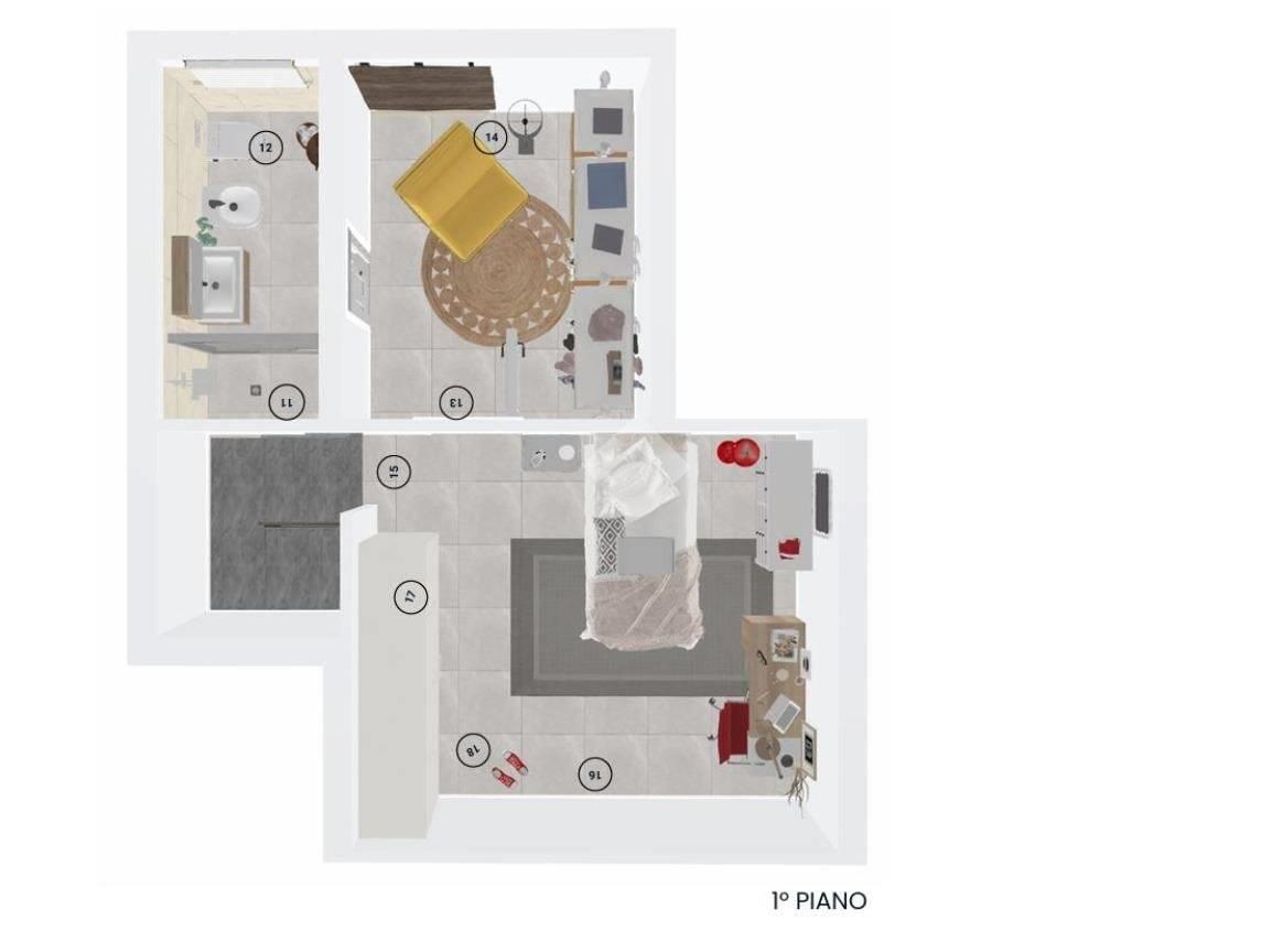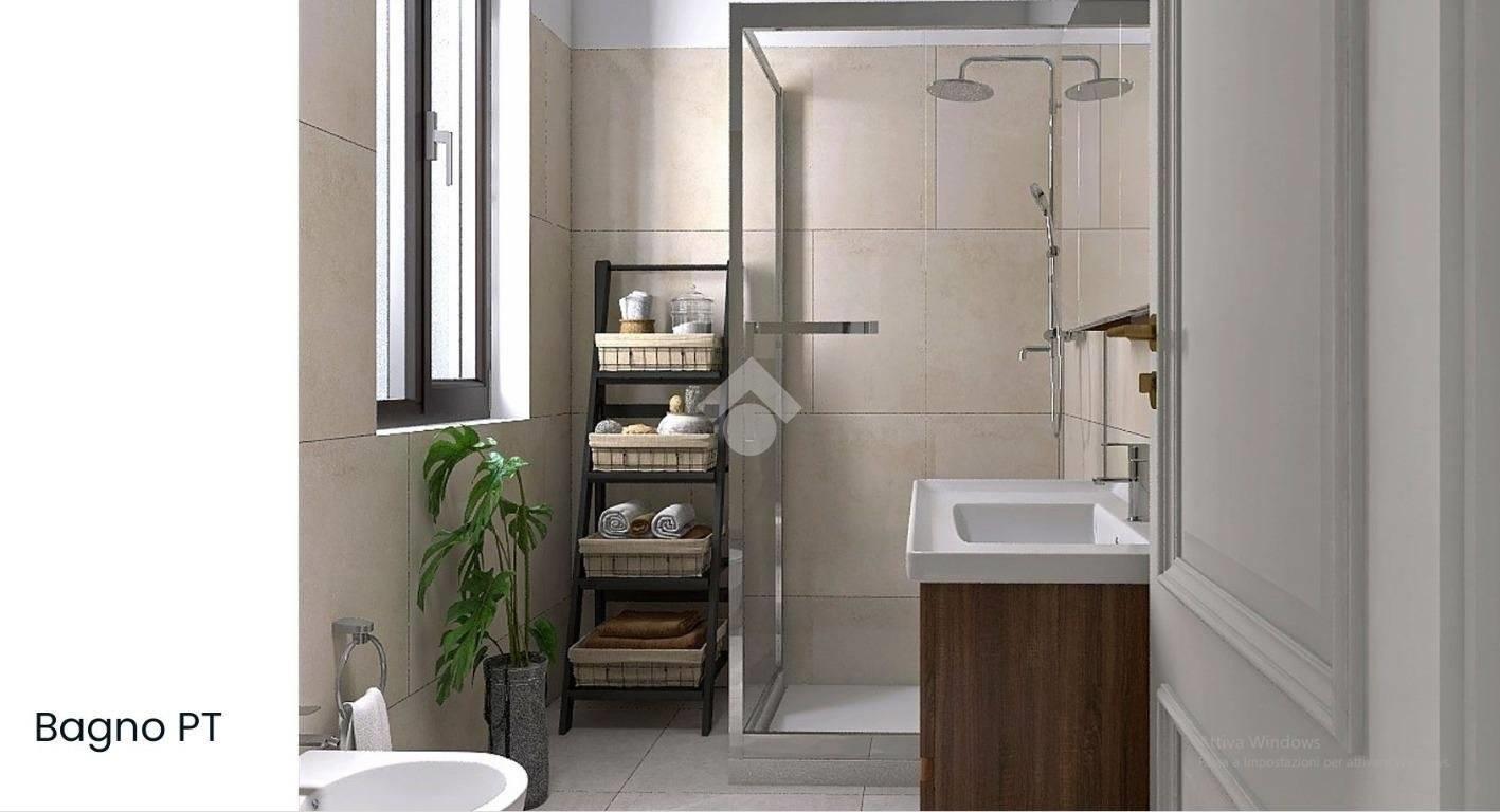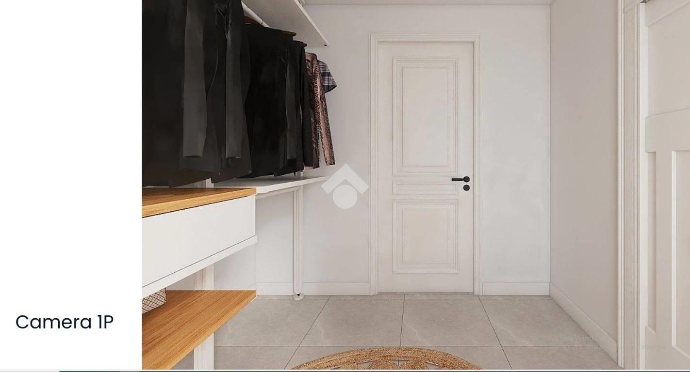 Al primo piano mansardato abitabile abbiamo una grande camera con accesso al balcone, una cabina armadio e un bagno con doccia finestrato;