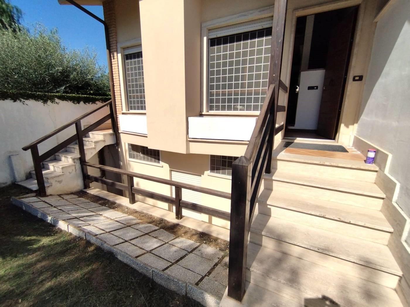 Acilia vicinanze Axa in contesto residenziale signorile con finiture di pregio e affaccio nel verde villino caposhiera di recente costruzione con tripla esposizione Est/Sud/Ovest, internamente composto da piano rialzato: ampio salone con camino, cucina semi abitabile, camera matrimoniale, servizio con finestra servito da vasca idromassaggio e cabina doccia. ; piano primo, camera matrimoniale con uscita su comodo balcone di 15 mq circa, presenza di un soppalco in legno attualmente utilizzato come soggiorno/studio eventualmente trasformabile in camera, servizio con finestra e cabina doccia; piano seminterrato molto ampio, luminoso e assolutamente asciutto, possiede una predisposizione per angolo cottura ed è fornito di servizio non finestrato servito di cabina doccia. Da questo locale è possibile accedere al grande e comodo locale garage ad uso esclusivo di 36 mq utilizzabile anche con due auto affiancate. Lo stesso permette l'accesso ad una ampia intercapedine perimetrale utilizzabile come cantina, priva di umidità. Il sottotetto dell'immobile con altezza di circa 1,50 ml è utilizzabile come grande ripostiglio. L'immobile possiede una pavimentazione in gres porcellanato per tutti i piani ad eccezione del primo piano che ha un rivestimento in parquet; è accessoriato di grate in ferro zincate, zanzariere, condizionatori, impianto solare termico per la produzione di acqua calda. Il complesso residenziale del quale fa parte la nostra unità è situato in strada chiusa con poco transito di vetture risultando pertanto molto silenzioso e immerso nel verde dei giardini condominiali a poche decine di metri da un comodissimo ed esclusivo centro sportivo nel quale poter praticare nuoto in piscina olimpionica, palestra e trattamenti vari corpo. Nelle immediate vicinanze possiamo trovare i principali sevizi quali supermercato, bar, ristoranti, farmacia e fermata di autobus. Nel centro di Acilia a poche centinaia di metri è presente la stazione della metropolitana.