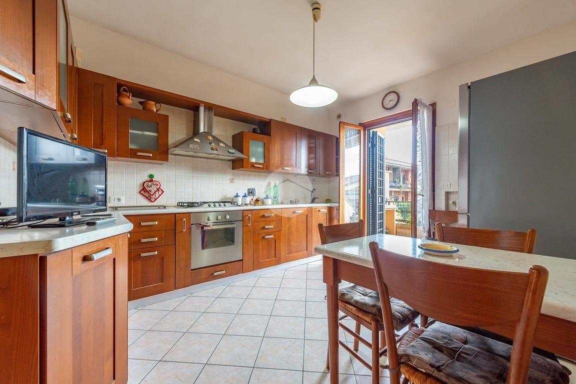 La cucina è separata e abitabile, con accesso diretto ad un giardino posteriore pavimentato, ideale per pranzi all'aperto e serate estive.
