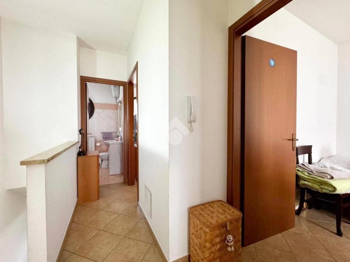 Il piano superiore, collegato da scala interna, è composto da due camere, una cameretta e bagno; tutte e tre le camere accedono a due balconi.