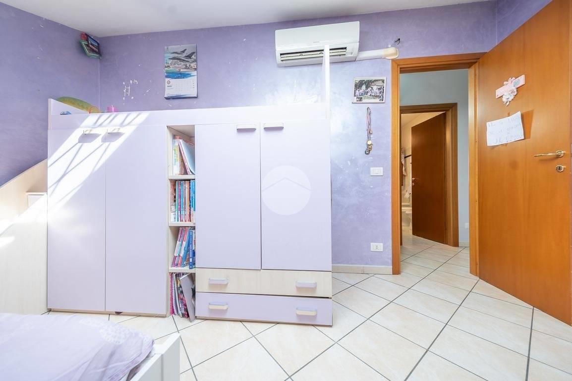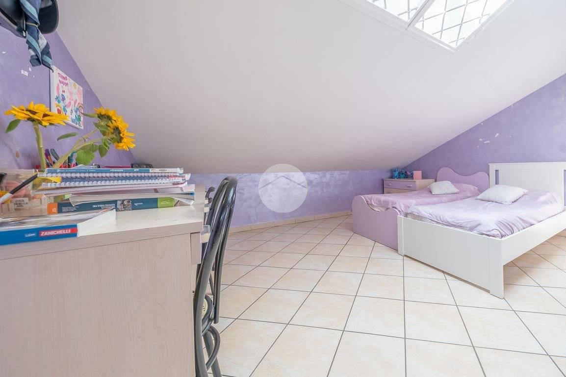 Salendo al primo piano, troviamo la zona notte, composta da una camera matrimoniale con accesso al terrazzo, una cameretta mansardata comoda e funzionale, ed un secondo bagno, anch'esso finestrato.
