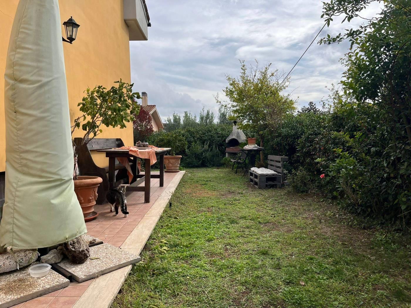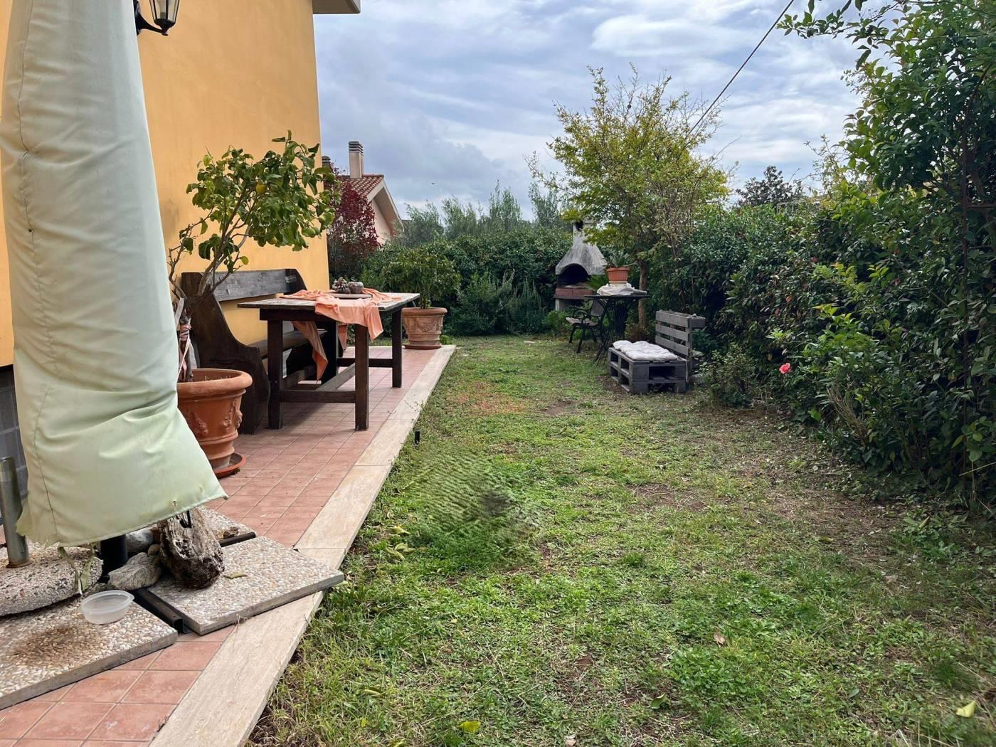 All' interno di un curato complesso privato proponiamo la vendita un villino angolare capofila di recente costruzione. L'immobile è composto al piano terra da un soggiorno, un cucinotto, entrambi serviti da un patio abitabile, una camera matrimoniale ed un servizio. Al piano primo troviamo una camera matrimoniale con servizio interno dotato di vasca idromassaggio e un balcone abitabile. Al piano seminterrato, dotato anche di un ingresso indipendente, troviamo una grande sala hobby con cucina a vista, camino e servizio. Completano la proprietà un giardino su tre lati e un posto auto coperto all'interno dell' autorimessa condominiale. Inoltre l' immobile è dotato della predisposizione per l' aria condizionata in ogni ambiente, pannelli solari per la produzione dell' acqua calda, riscaldamento divisibile per ogni piano, caldaia a condensazione, inferriate e zanzariere su tutti gli infissi, impianto di irrigazione e video citofono.