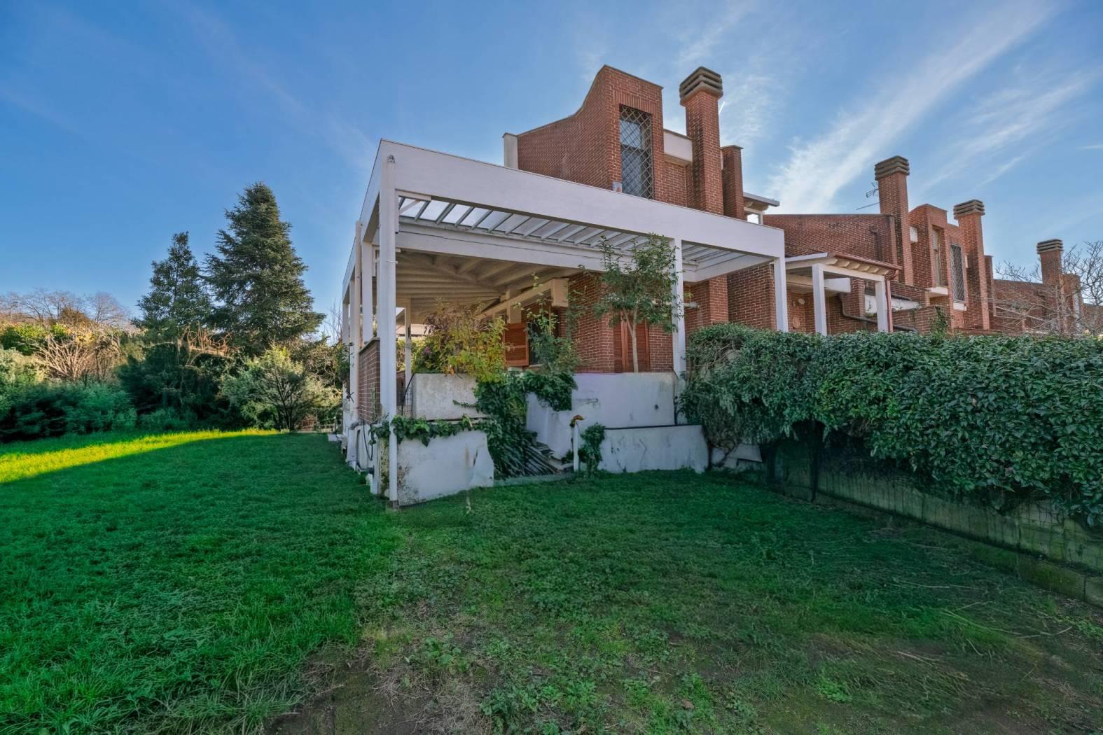 La Giustiniana zona Castelluccia delizioso villino angolare divisibile circa 260 mq residenziali su 3 livelli composto al piano terra da salone con camino, cucina, bagno e un bellissimo terrazzo con ampia tettoia e barbecue; al piano primo una camera padronale con terrazzo panoramico, una cameretta , un bagno finestrato, 2 balconi ; al piano semi interrato, totalmente abitabile altro ingresso un ampio salone, 2 camere ,una cameretta, un cucinotto, un bagno e camera cambi di stagione. Completa la proprietà un bellissimo giardino angolare di circa 1000mq con diverse piante e impianto di irrigazione con cisterna. L'immobile è dotato di infissi in legno con doppi vetri, grate alle finestre, persiane, aria condizionata, pannelli solari, impianto di allarme. L’immobile gode di un’ottima posizione, in quanto può usufruire della tranquillità e del silenzio che caratterizza la zona, ma è agevolata dalla vicinanza alla via Cassia ed ai principali servizi, nonché la stazione del treno FL3 della Giustiniana.
