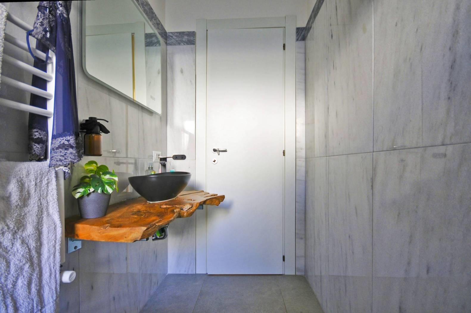 Il salone luminoso con cucina a vista e giardino d'inverno è il cuore della casa, ideale per momenti conviviali e cene con amici. All'esterno, un giardino di circa 80 mq, diviso tra verde e mattonato, ti accoglie per piacevoli giornate all'aria aperta. La casa è dotata di accesso per persone con mobilità ridotta