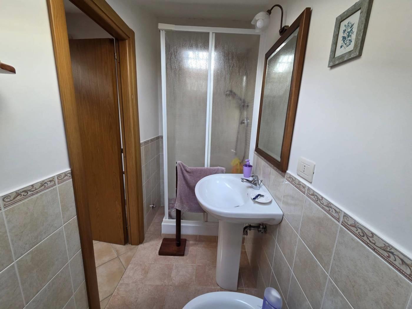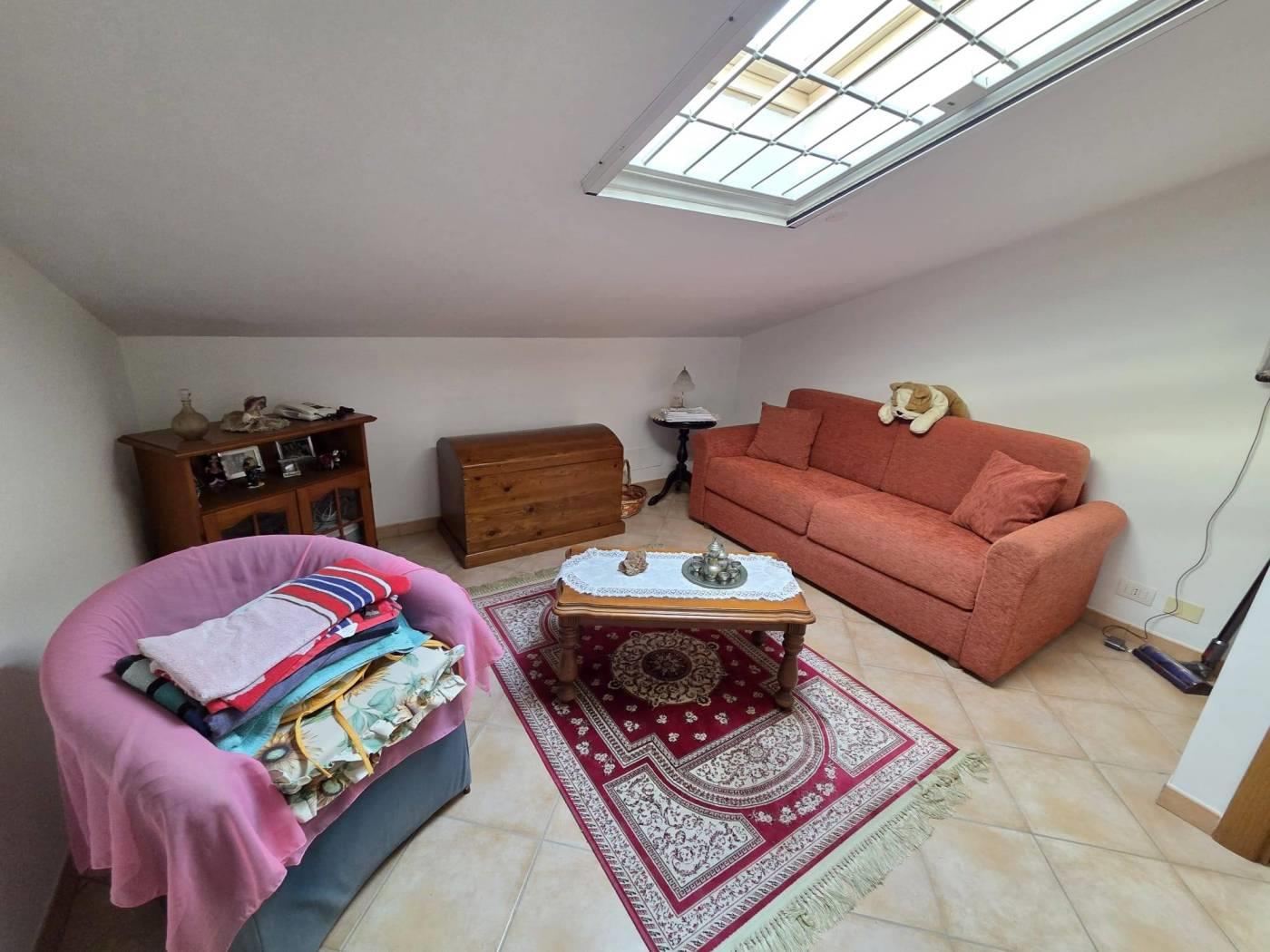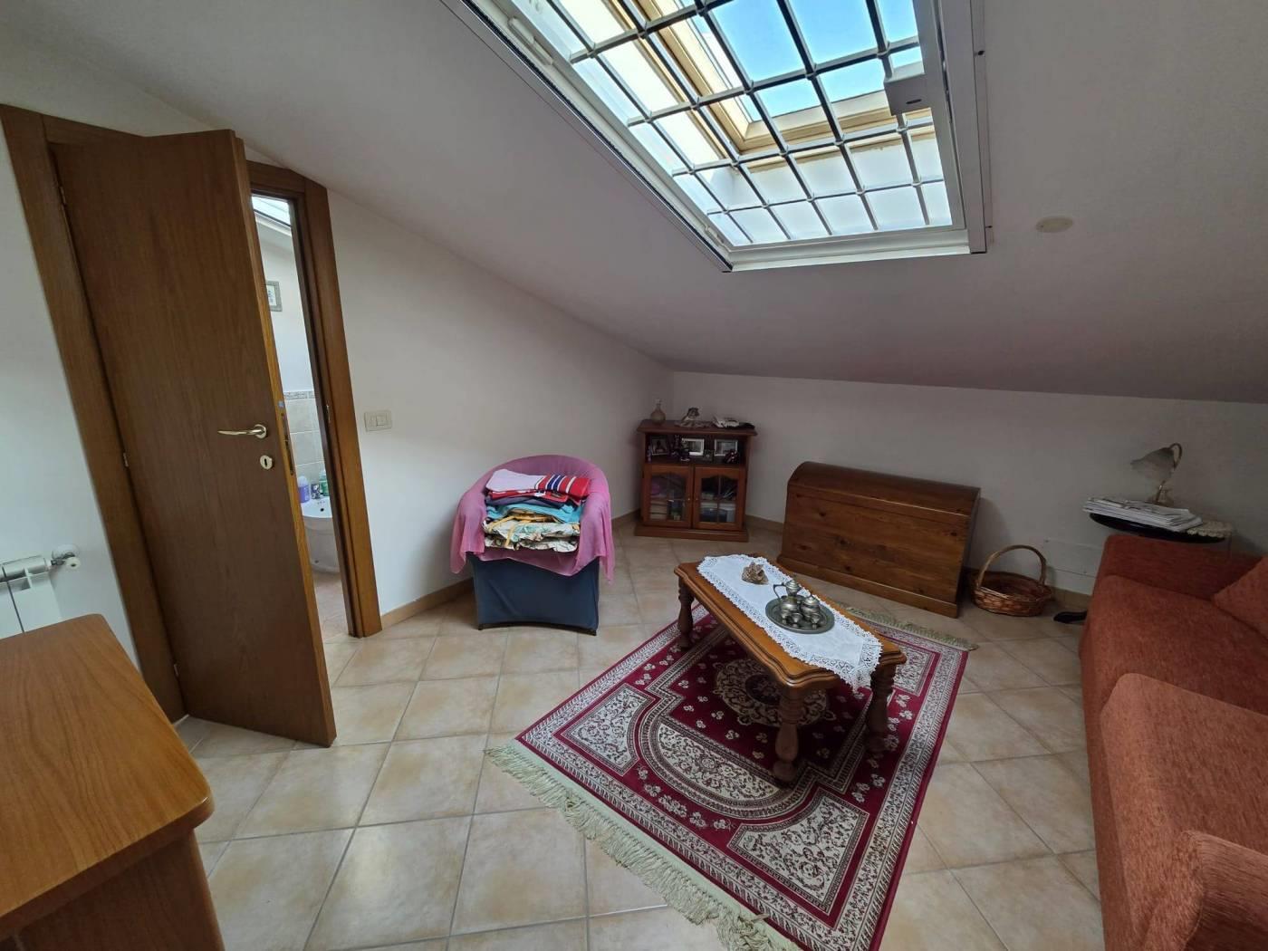 L’immobile si trova in una posizione riservata e tranquilla ma servita da tutti i servizi di prima necessità. Si sviluppa su tre livelli e troviamo al piano d’ingresso salone con camino, cucina abitabile, un servizio e un ripostiglio. Al piano superiore è presente una cameretta con bagno. Nel piano seminterrato si collocano tre camere da letto e un ulteriore servizio. La proprietà è dotata di condizionatori, portone blindato, zanzariere, pannelli solari, doppie inferriate, sistema d’allarme e serrande elettriche. Completa la villa un giardino pavimentato con un pozzo per irrigare in comune e posto auto scoperto.