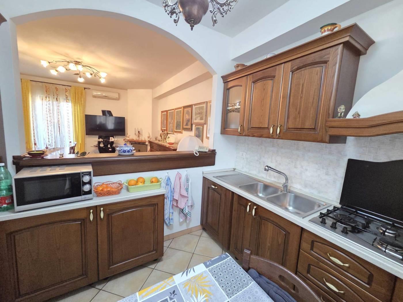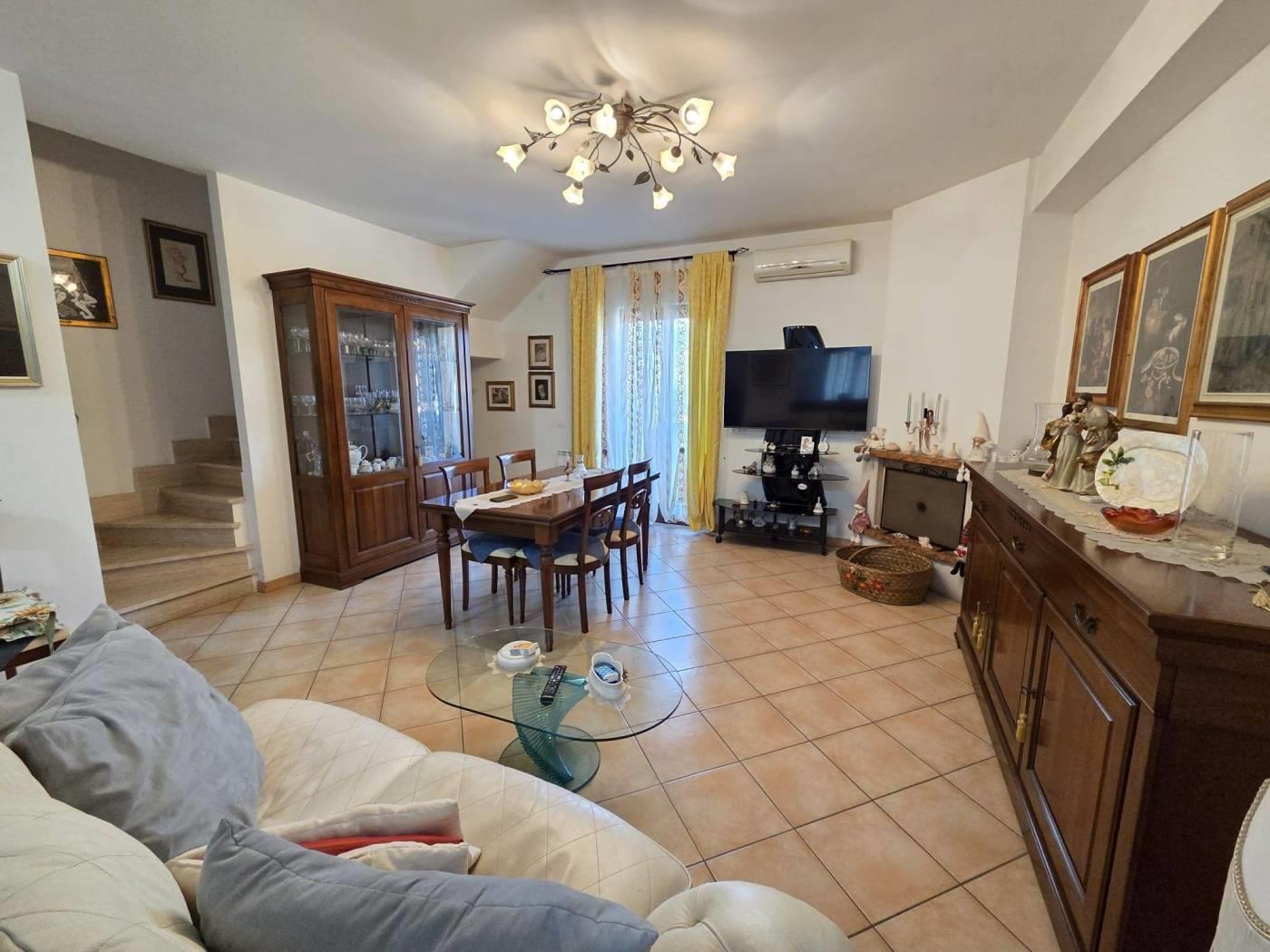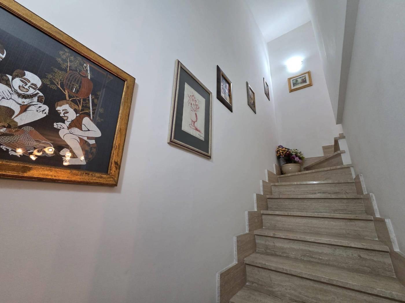 L’immobile si trova in una posizione riservata e tranquilla ma servita da tutti i servizi di prima necessità. Si sviluppa su tre livelli e troviamo al piano d’ingresso salone con camino, cucina abitabile, un servizio e un ripostiglio. Al piano superiore è presente una cameretta con bagno. Nel piano seminterrato si collocano tre camere da letto e un ulteriore servizio. La proprietà è dotata di condizionatori, portone blindato, zanzariere, pannelli solari, doppie inferriate, sistema d’allarme e serrande elettriche. Completa la villa un giardino pavimentato con un pozzo per irrigare in comune e posto auto scoperto.