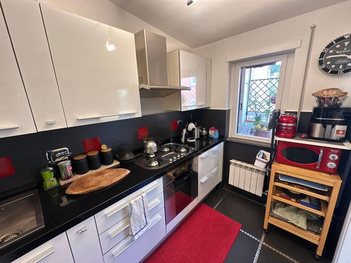 A servizio della zona living troviamo una cucina separata, moderna e funzionale, caratterizzata da arredi su misura. L'ambiente, ben organizzato e luminoso grazie alla presenza della finestra, offre praticità e comfort, mantenendo al tempo stesso uno stile comtemporaneo e curato nei dettagli.