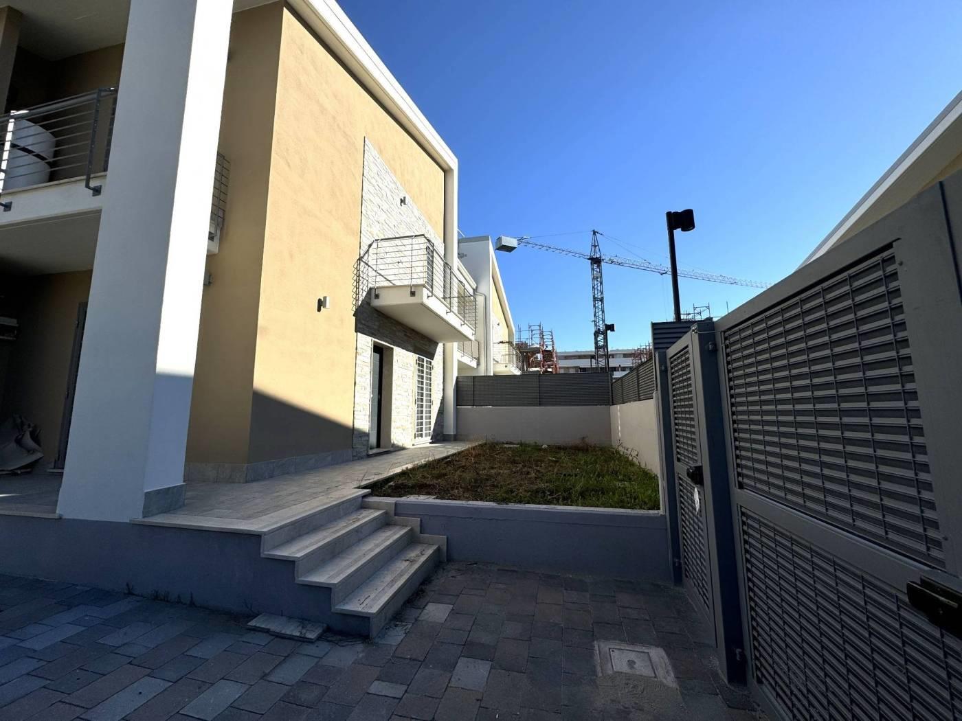 La villa ha un bel giardino perimetrale parte verde e parte mattonato per accogliere i posti auto interni la proprietà.