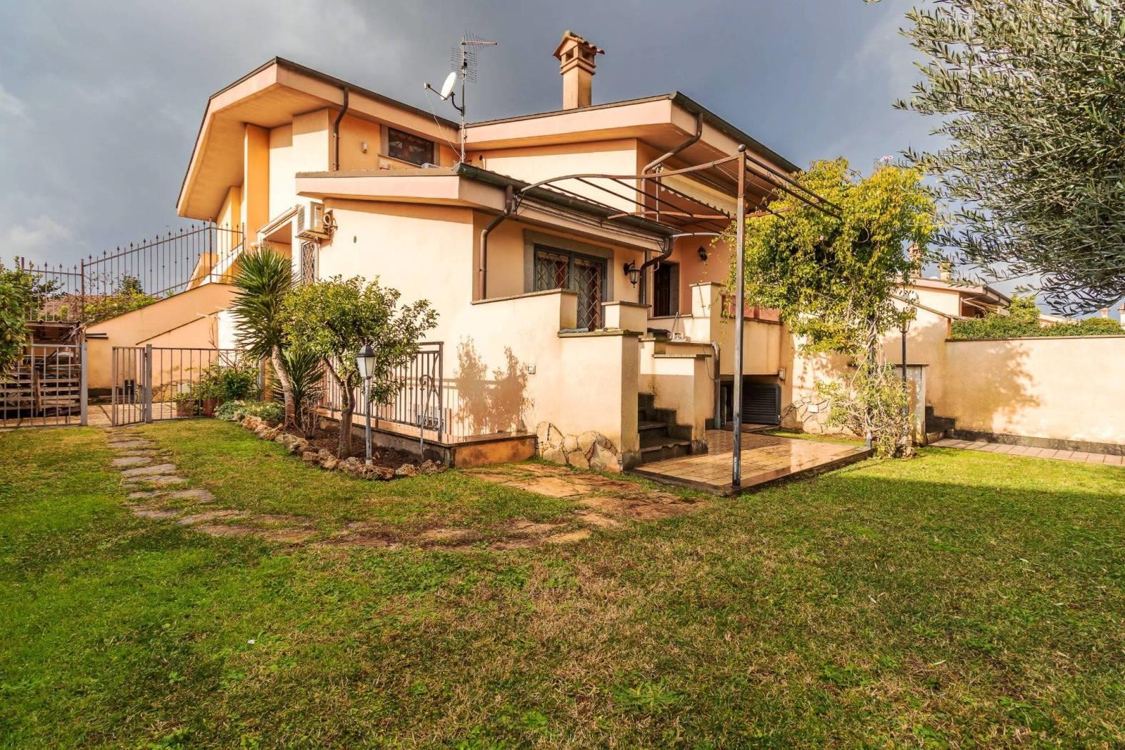 Villa angolare con grande giardino, luce naturale e spazi perfettamente distribuiti