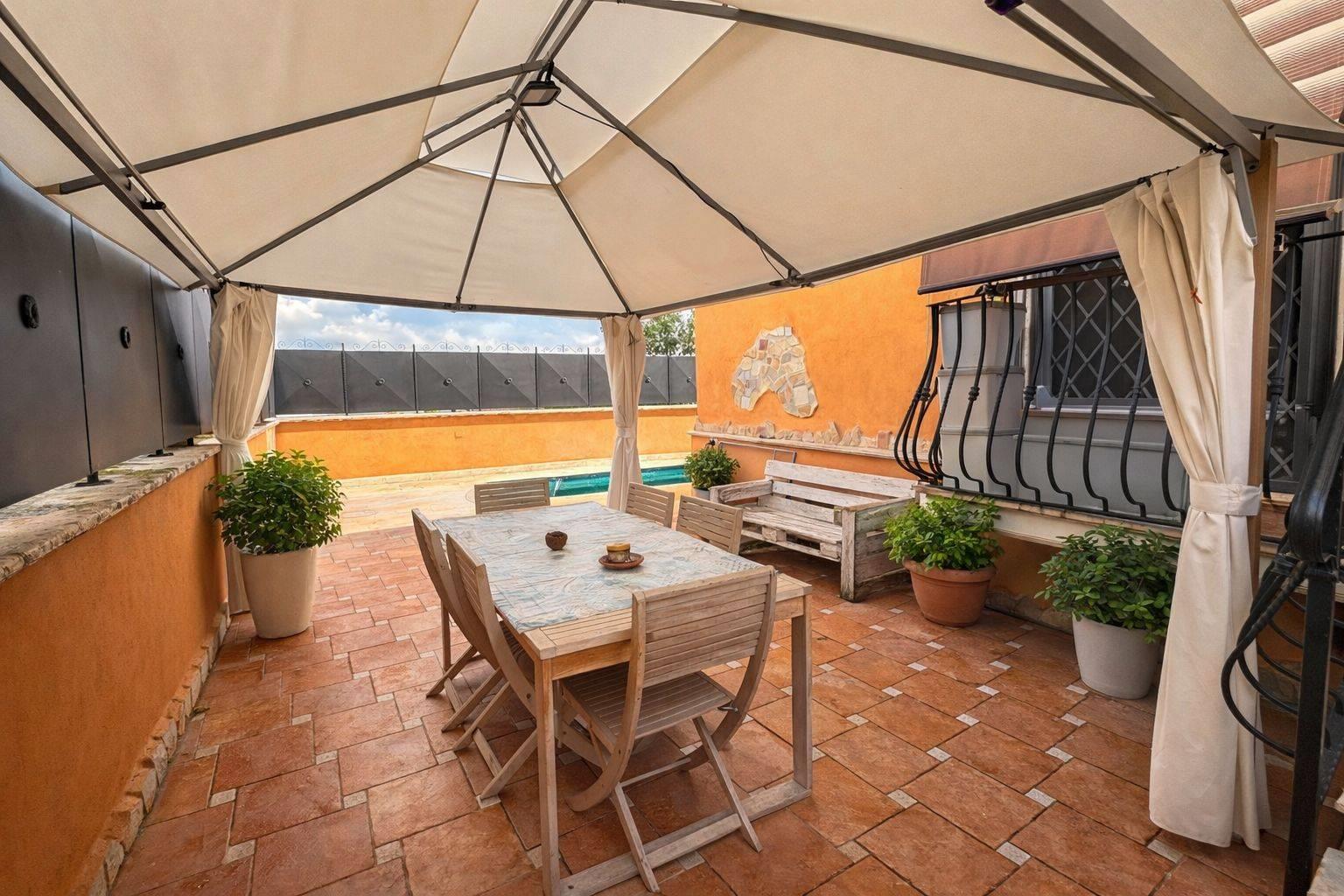 Due ingressi indipendenti, cancelli elettrici, infissi in legno interni ed esterni perfettamente conservati, zanzariere e grate in ferro battuto completano una soluzione pronta da vivere e senza compromessi.