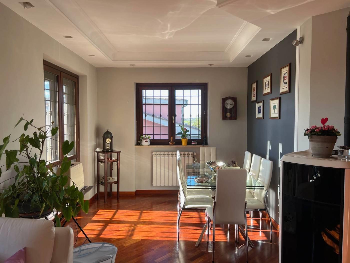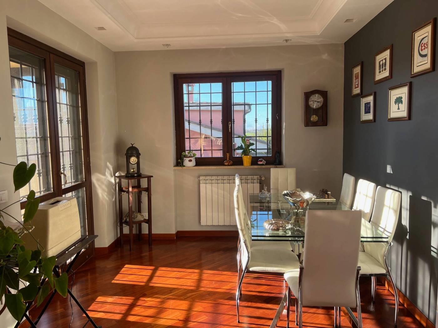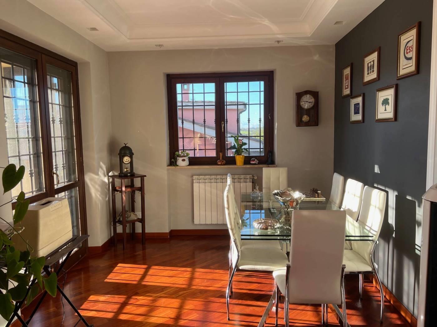 Marco Simone - Proponiamo in vendita elegante villa angolare disposta su tre livelli fuori terra, caratterizzata da ottima esposizione e ampi spazi esterni. Al piano terra rialzato troviamo un luminoso salone con stufa a pellet, accesso diretto al portico e affaccio sul giardino, cucina abitabile con terrazzo e bagno finestrato dotato di vasca idromassaggio. Il piano primo ospita due comode camere matrimoniali, una delle quali con balconcino privato, e un bagno. Al piano seminterrato, accessibile anche tramite secondo ingresso indipendente, si sviluppa un’ampia zona giorno con camino (possibilità di creare una camera), cucina separata da eleganti vetrate, ripostiglio e bagno. Questa configurazione rende l’immobile ideale anche per essere suddiviso in due unità abitative indipendenti tra loro anche negli spazi esterni. Completa la proprietà un ampio cortile con possibilità di parcheggiare più autovetture all’interno. Dotata di pannelli per la produzione di acqua calda sanitaria, predisposizione impianto di condizionamento e impianto di allarme, persiane blindate, grate e zanzariere. Situata in prossimità delle scuole e in un quartiere residenziale è un'ottima soluzione per famiglie e per chi vuole vivere in un contesto tranquillo. Per maggiori dettagli o per fissare un appuntamento contattare la nostra agenzia Frimm sita in Setteville, Largo G. Carducci n. 15, ai seguenti recapiti: tel. 0774/390269 mob. 393/9862035. Tutte le informazioni ivi contenute comprese le metrature sono da intendersi puramente a titolo indicativo e non costituiscono elemento contrattuale.