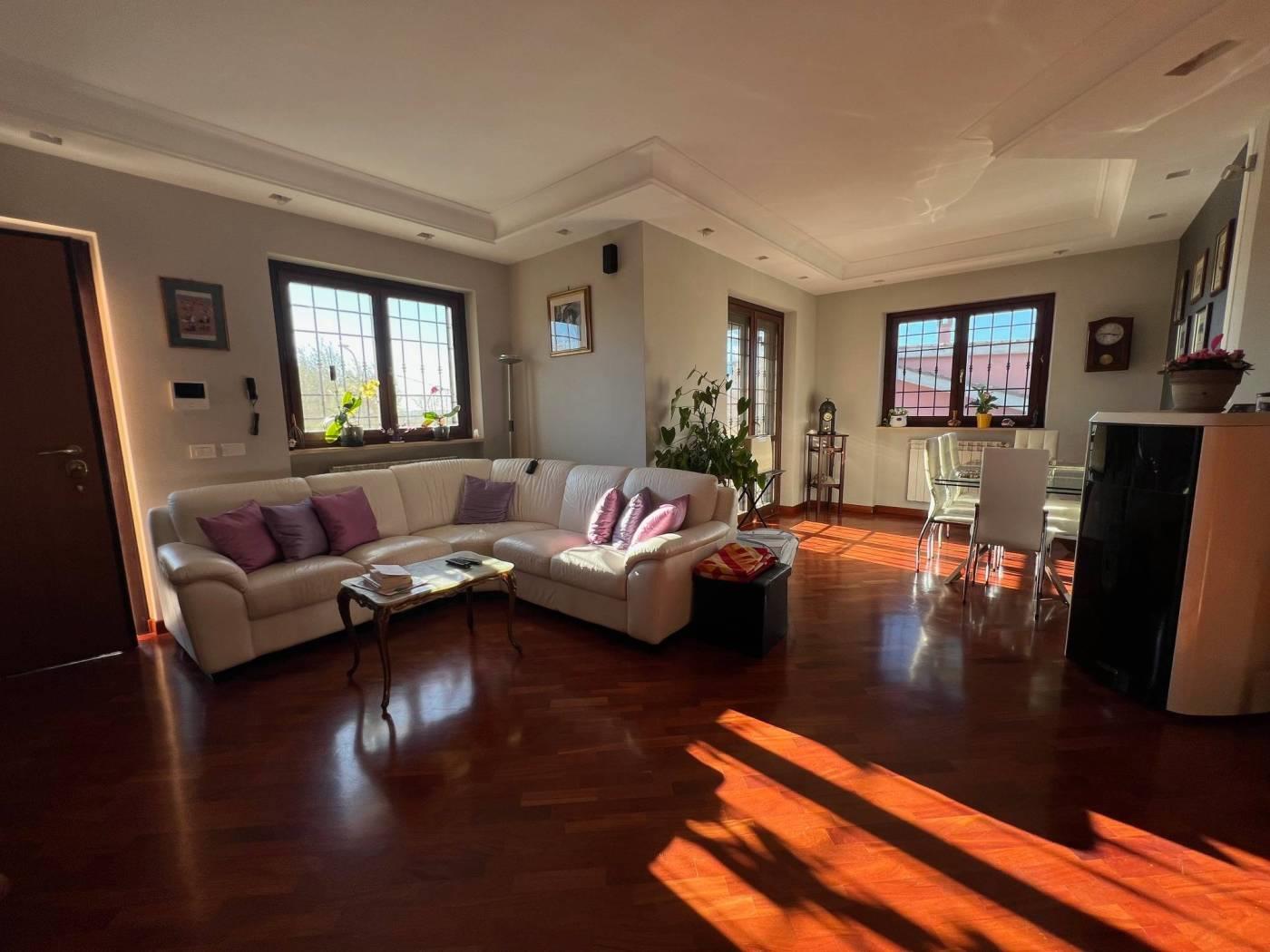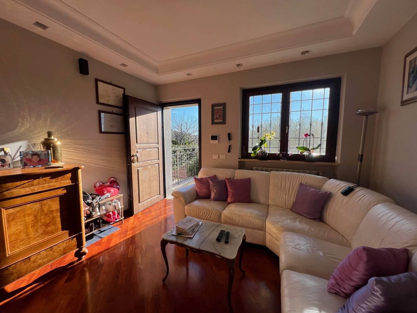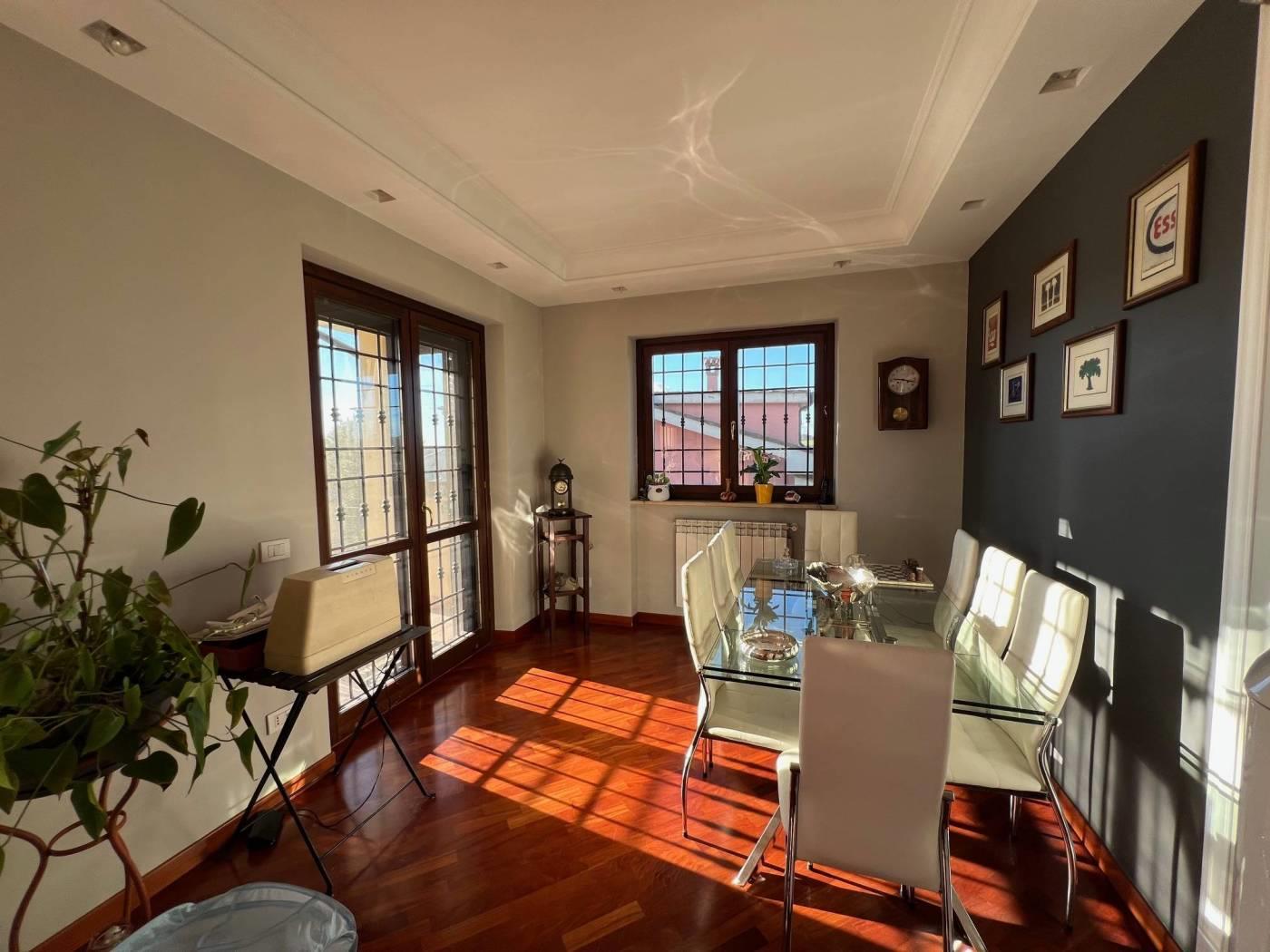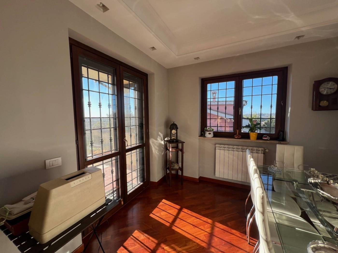 Marco Simone - Proponiamo in vendita elegante villa angolare disposta su tre livelli fuori terra, caratterizzata da ottima esposizione e ampi spazi esterni. Al piano terra rialzato troviamo un luminoso salone con stufa a pellet, accesso diretto al portico e affaccio sul giardino, cucina abitabile con terrazzo e bagno finestrato dotato di vasca idromassaggio. Il piano primo ospita due comode camere matrimoniali, una delle quali con balconcino privato, e un bagno. Al piano seminterrato, accessibile anche tramite secondo ingresso indipendente, si sviluppa un’ampia zona giorno con camino (possibilità di creare una camera), cucina separata da eleganti vetrate, ripostiglio e bagno. Questa configurazione rende l’immobile ideale anche per essere suddiviso in due unità abitative indipendenti tra loro anche negli spazi esterni. Completa la proprietà un ampio cortile con possibilità di parcheggiare più autovetture all’interno. Dotata di pannelli per la produzione di acqua calda sanitaria, predisposizione impianto di condizionamento e impianto di allarme, persiane blindate, grate e zanzariere. Situata in prossimità delle scuole e in un quartiere residenziale è un'ottima soluzione per famiglie e per chi vuole vivere in un contesto tranquillo. Per maggiori dettagli o per fissare un appuntamento contattare la nostra agenzia Frimm sita in Setteville, Largo G. Carducci n. 15, ai seguenti recapiti: tel. 0774/390269 mob. 393/9862035. Tutte le informazioni ivi contenute comprese le metrature sono da intendersi puramente a titolo indicativo e non costituiscono elemento contrattuale.