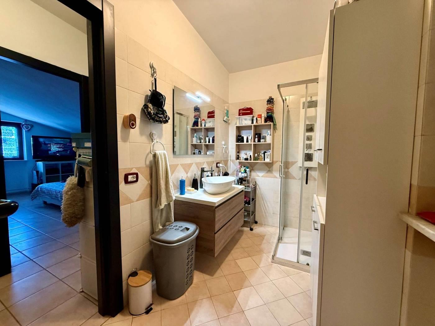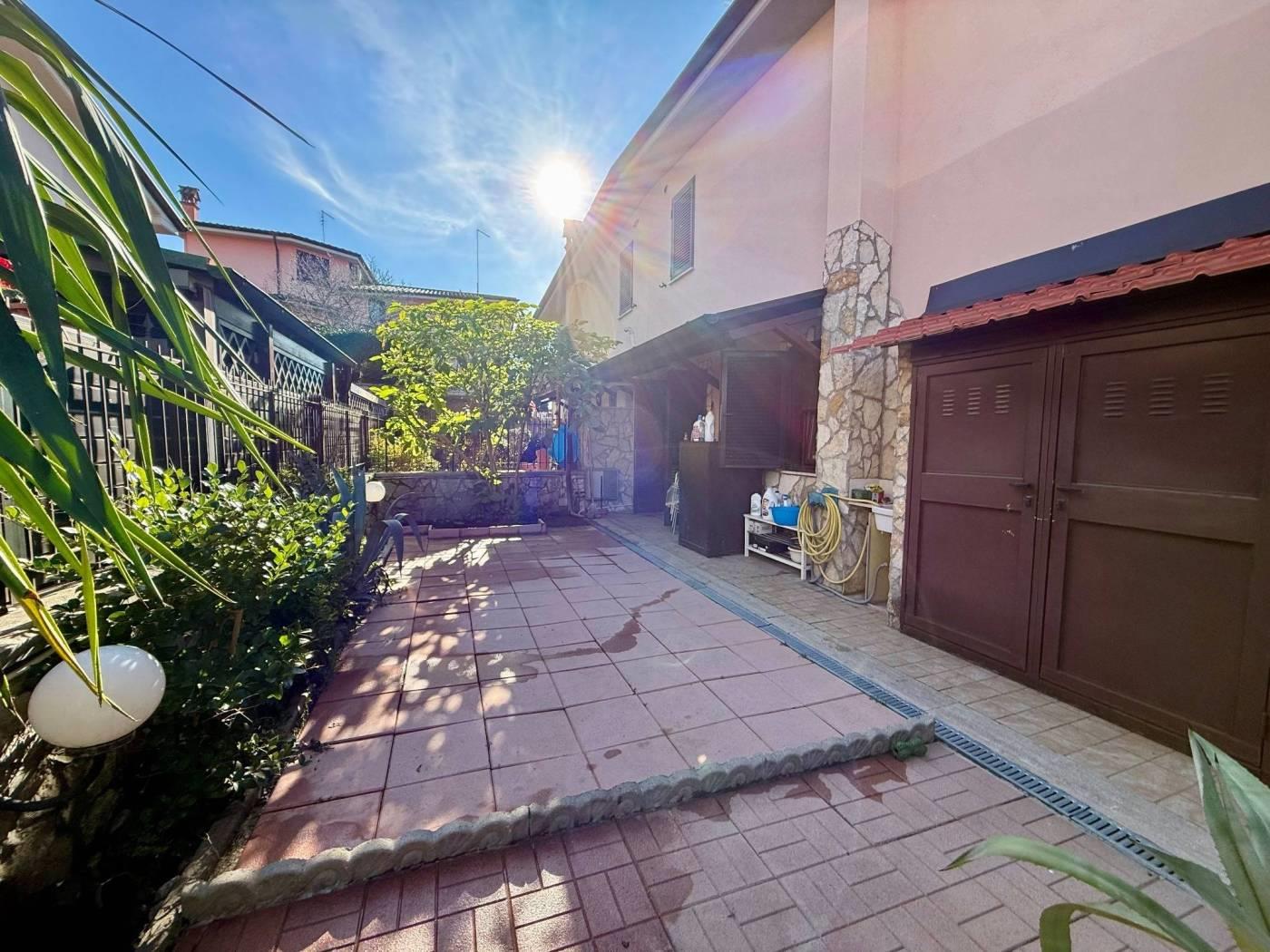 Ovviamente non manca lo spazio esterno di 250 mq, abbiamo un giardino angolare in parte mattonato.