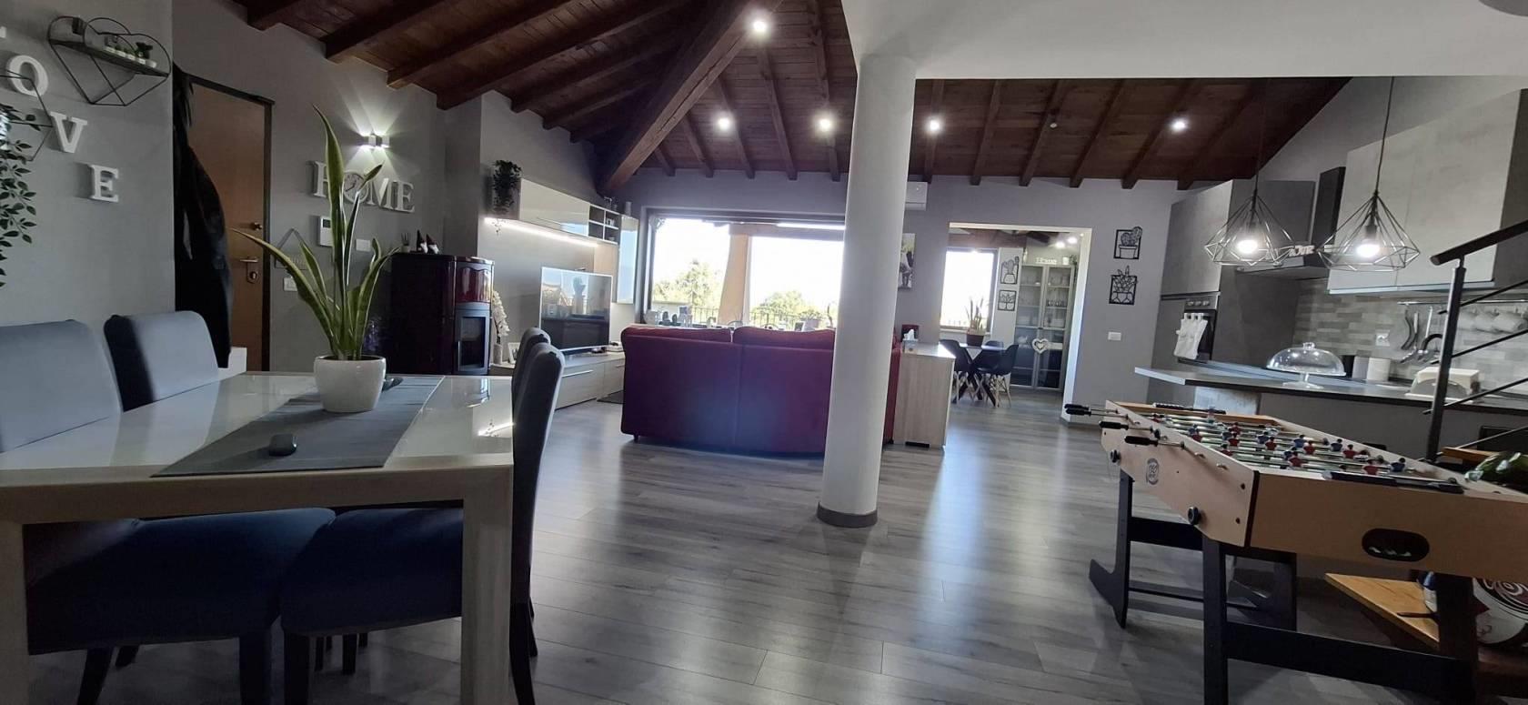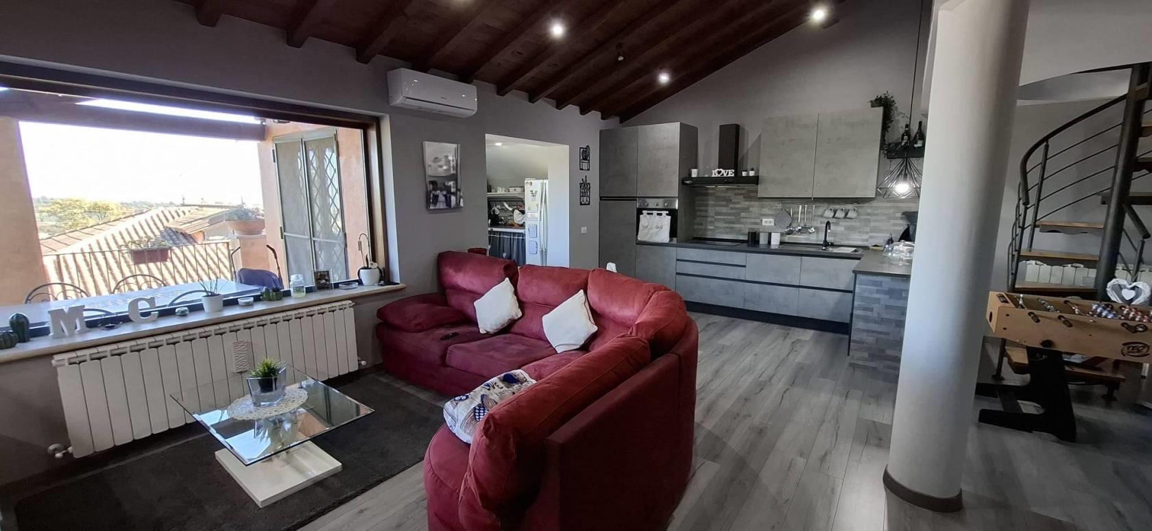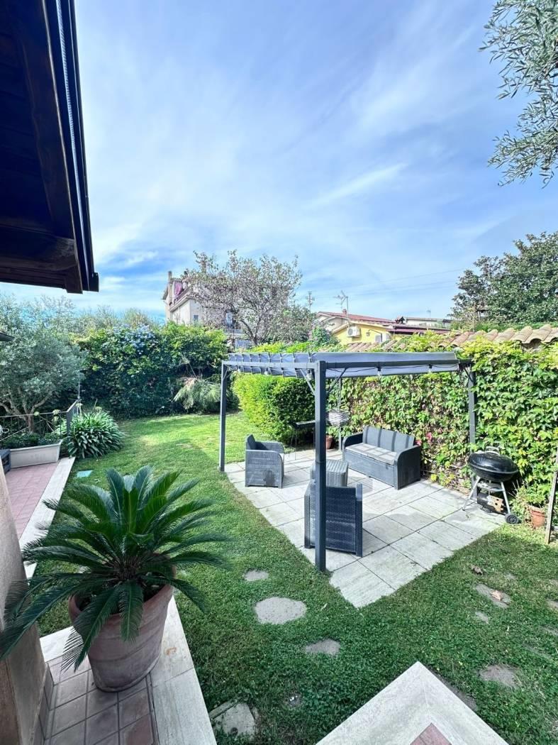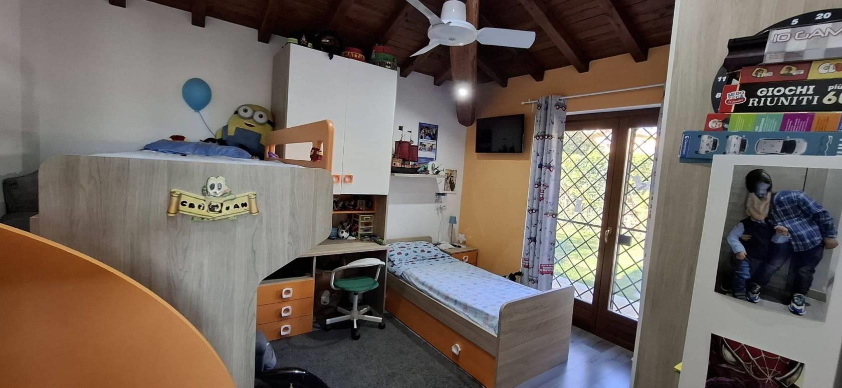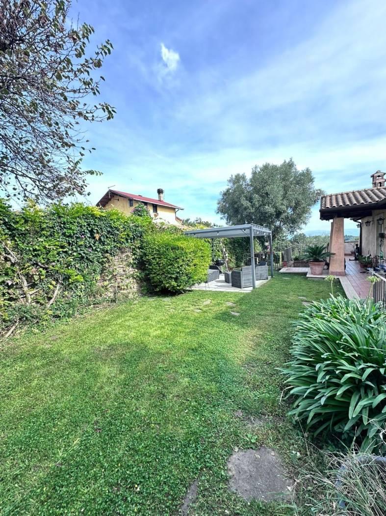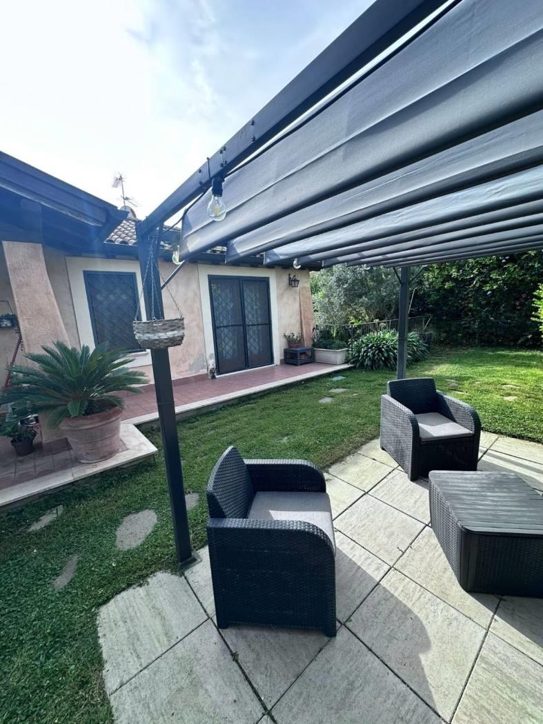 Proponiamo in VENDITA porzione di villa bifamiliare a Riano (RM) in zona residenziale poco distante dai servizi e dalla zona commerciale del paese. L'immobile si sviluppa su due piani principali di circa 100 mq ciascuno, al piano terra abbiamo soggiorno con angolo cottura, un bagno, una camera matrimoniale, una cameretta, un comodo e funzionale soppalco, un portico con terrazzo e ampio giardino di circa 200 mq; il piano seminterrato vanta un ingresso indipendente e non è comunicante internamente con l'appartamento al piano terra, è suddiviso in due stanze, un'ampia sala hobby con camino e forno a legna, due bagni e un giardino autonomo di circa 50 mq. La villa dispone di due posti auto interni di cui uno con tettoia. Non è presente condominio, infissi in legno e doppio vetro, impianto tv singolo con parabola, porte blindate, la zona è servita da fibra ottica e gas diretto, riscaldamento autonomo con caldaia e stufa a pellet, il salone al piano terra ha il condizionatore, videocitofono al piano terra e al seminterrato, l'intero immobile gode di zanzariere e grate su tutti gli infissi. La villa è a pochi chilometri dalla Via Flaminia, dalla Via Tiberina, dal casello autostradale dell' A1 di Castelnuovo di Porto e alla stazione della ferrovia Roma - Viterbo; a circa 15 km dal G.R.A.