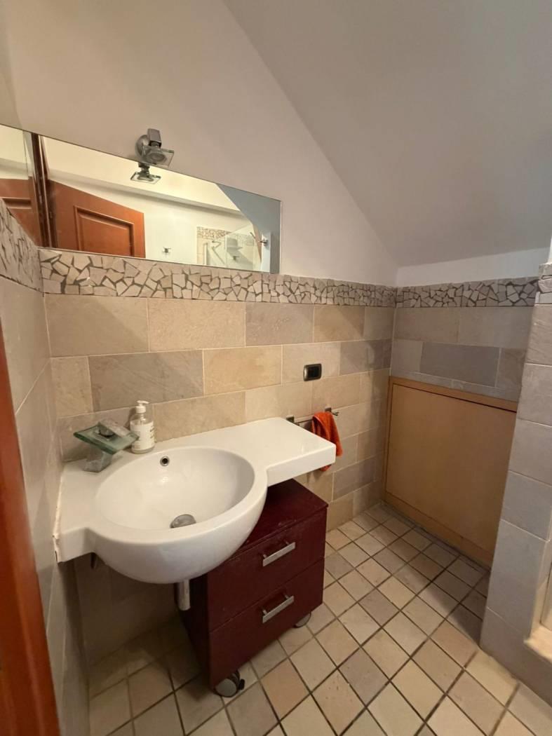 L'agenzia Immobiliare Atena propone in vendita questa villa bifamiliare sviluppata su quattro livelli. Con l'entrata indipendente, all'esterno troviamo un bel giardino che circonda i tre lati dell'immobile, e due comodi posti auto. Entrando ,al pian terreno, troviamo il soggiorno con angolo bar ed un bagno di servizio. Scendendo al seminterrato abbiamo un ampio open space dedicato alla zona giorno, con cucina a vista; a completare un bagno con doccia e un'ulteriore camera. Al primo piano vi è la zona notte con due camere entrambe con balconcino privato, una delle quali possiede anche la cabina armadio; inoltre vi è il bagno con vasca e doccia in muratura. Salendo all'ultimo piano mansardato troviamo due ampie camere ed il quarto bagno con doccia. Il primo e secondo piano sono caratterizzati dal pavimento in parquet di ciliegio.