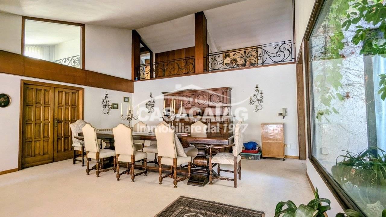 Attualmente si compone di salone quadruplo con camino, totalmente affacciato sul giardino grazie a vetrate tutta altezza, grande cucina con secondo camino, ampia sala da pranzo con giardino d'inverno, due camere da letto, due servizi ed un locale lavanderia.