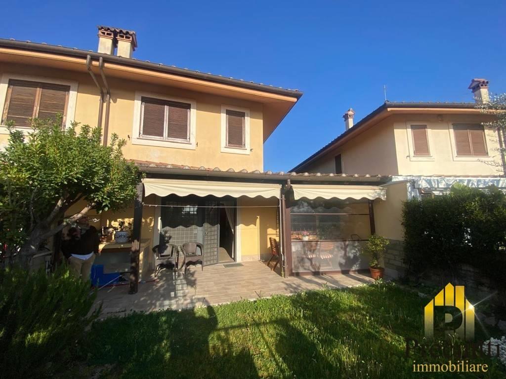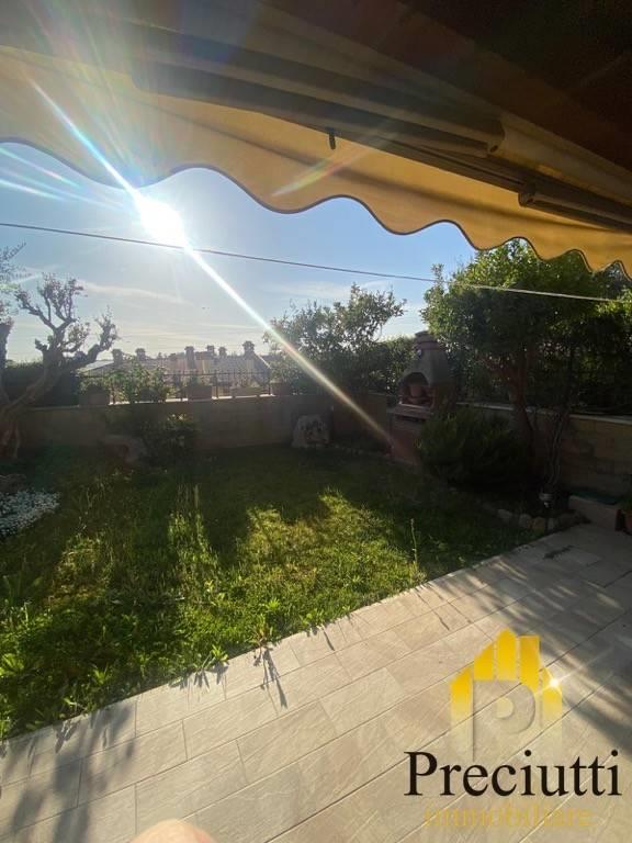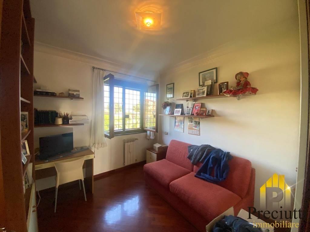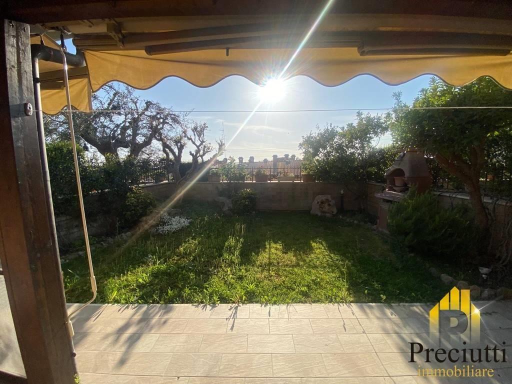 Boccea Collina delle Muse adiacente Università Niccolo' Cusano, Via Pietro Ubaldo Angeletti, in comprensorio signorile ed esclusivo, Villa su tre livelli così composta: - Piano Terra: di Mq. 79,00, ingresso carrabile e pedonale, due giardini di 50,00 + 50,00 mq. di cui uno ( quello del salone) con portico in legno di 20 mq., tenda da sole, barbecue, patio con vetrate scorrevoli per l'utilizzo anche nei periodi invernali e affaccio luminosissimo, ingresso, cucina abitabile, salone doppio, camera, bagno senza finestra; - Piano 1: di Mq. 50,00, disimpegno, camera matrimoniale con bagno interno con finestra, 2 camerette, secondo bagno con finestra; - Piano Interrato: di Mq. 55,00, sala hobby/Cantina con camino e lucernario, ampio locale dispensa con possibile utilizzo a cucina, ripostiglio, bagno, da quest'ultimo piano si accede tramite scala interna e porta blindata ad un box auto doppio che affaccia nel lato apposto del comprensorio dove troviamo il parco con pista ciclabile ed area cani, completa la proprieta' un posto auto scoperto. l'immobile dispone di: inferriate, zanzariere, antifurto, videocitofono, porte in legno ed infissi doppio vetro in legno, persiane in PVC, climatizzatori, fibra ottica, ottime rifiniture interne ed esterne, l'immobile e' libero e disponibile subito.