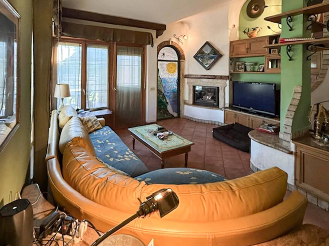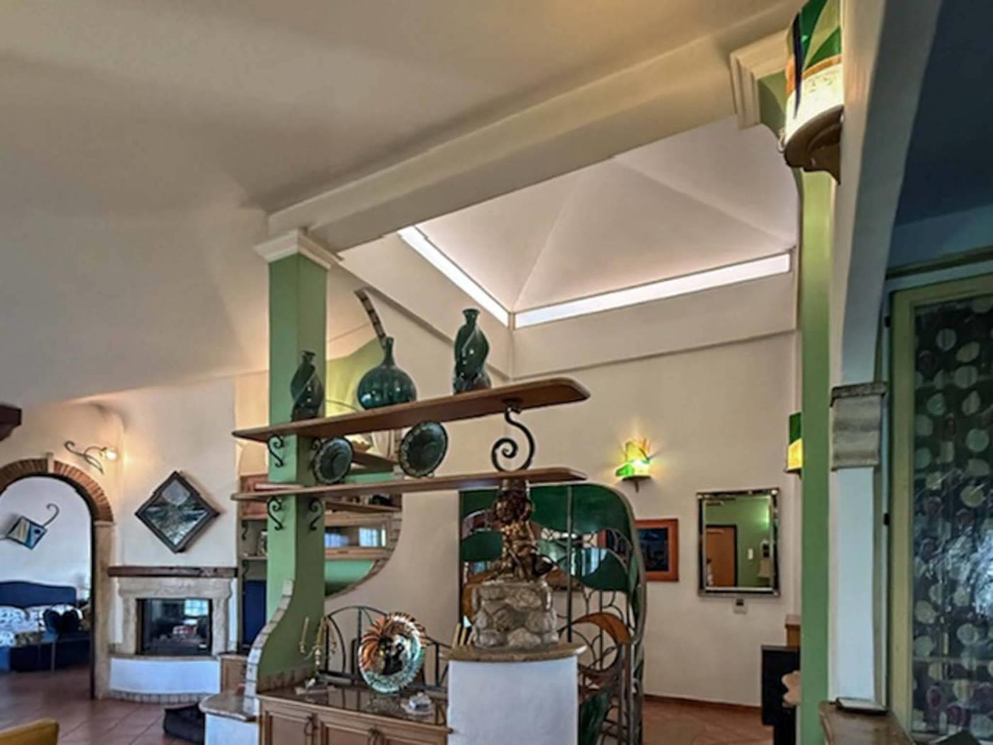La zona giorno offre ampi saloni con camino, perfetti per accogliere amici e familiari in un ambiente caldo e accogliente.