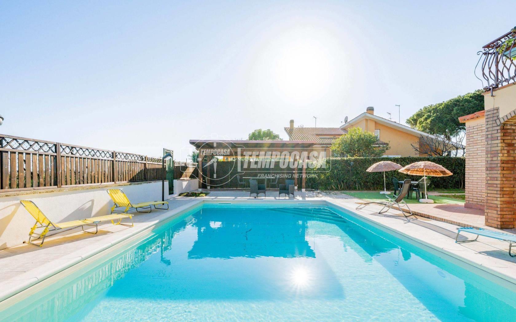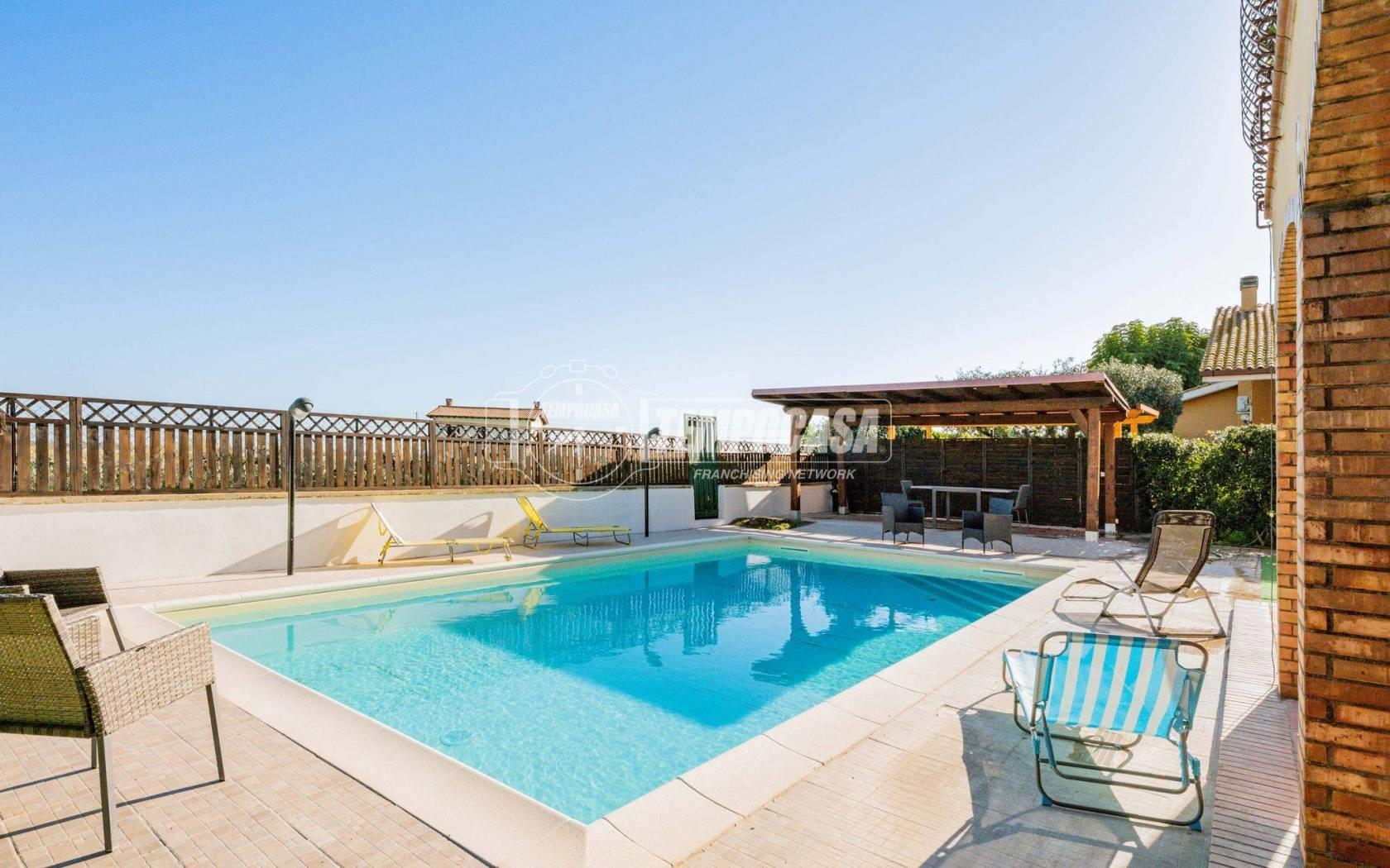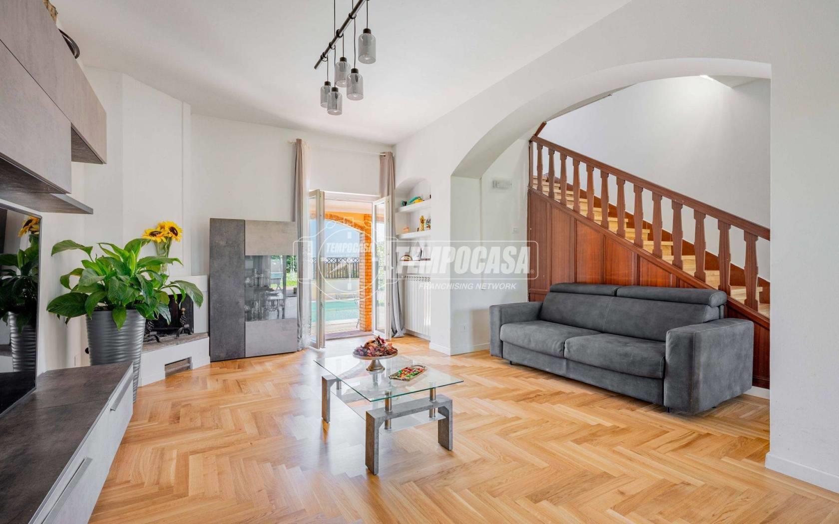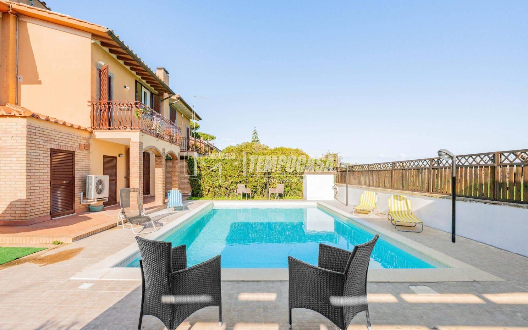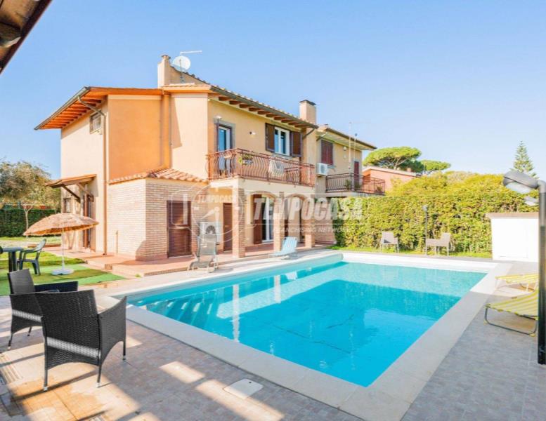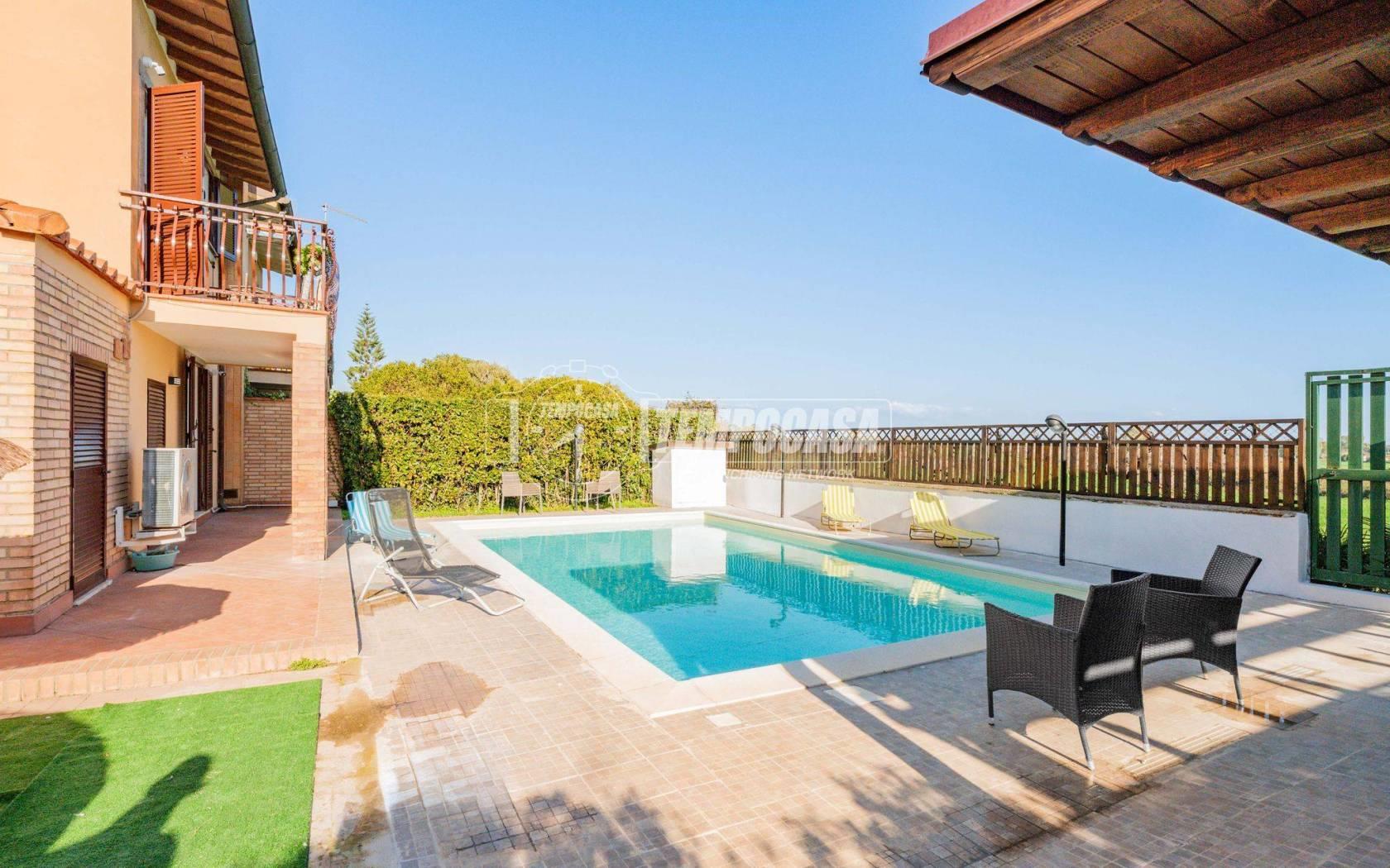 All’esterno il vero protagonista è l’ampio giardino che abbraccia la villa, impreziosito da una splendida piscina privata con patio, ideale per momenti di relax, aperitivi al tramonto e giornate estive in totale privacy.