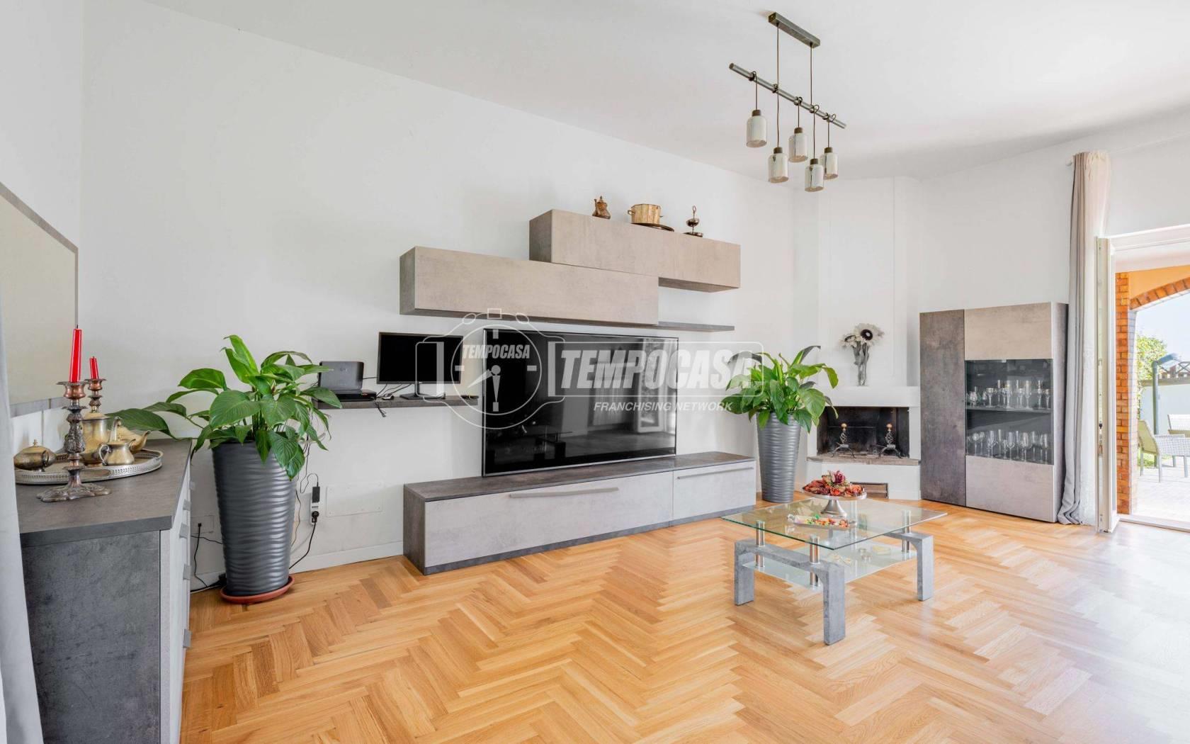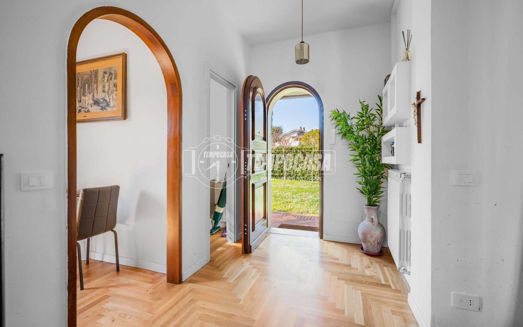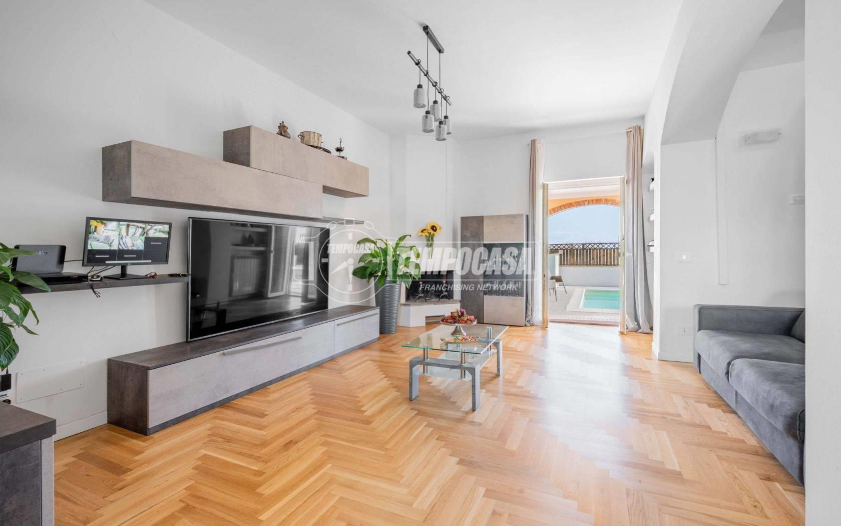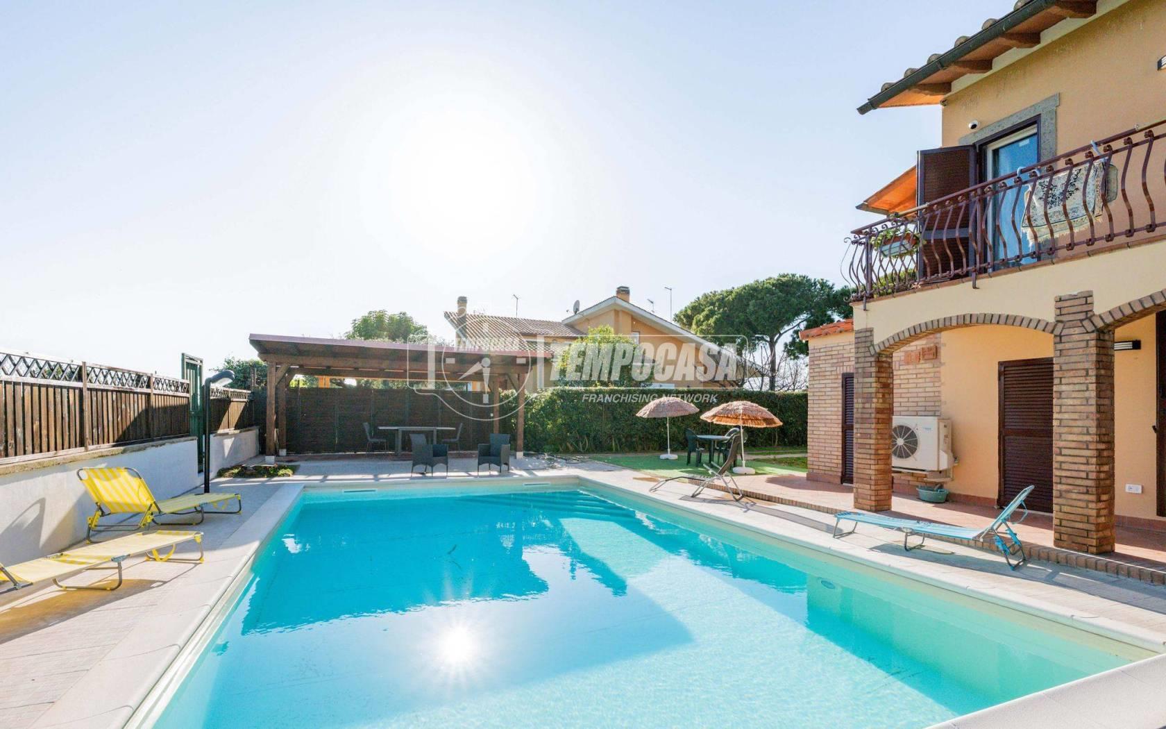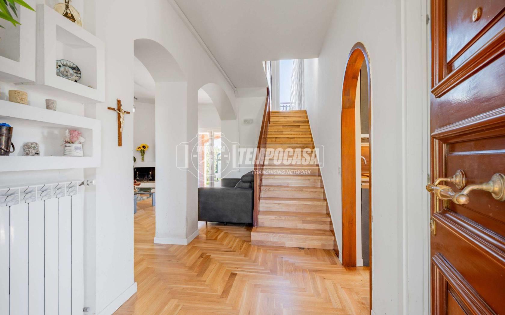 All’esterno il vero protagonista è l’ampio giardino che abbraccia la villa, impreziosito da una splendida piscina privata con patio, ideale per momenti di relax, aperitivi al tramonto e giornate estive in totale privacy.