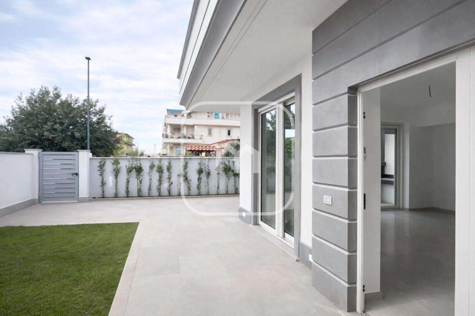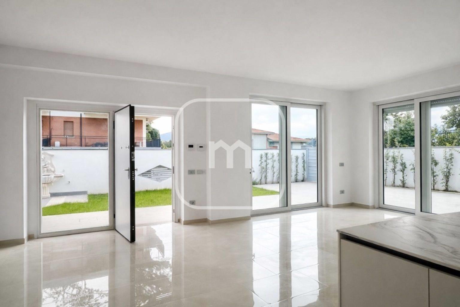 In un contesto residenziale tranquillo, riservato e ben servito, in vendita una splendida villa di nuova costruzione, elegante e luminosa, sviluppata su un unico livello.
