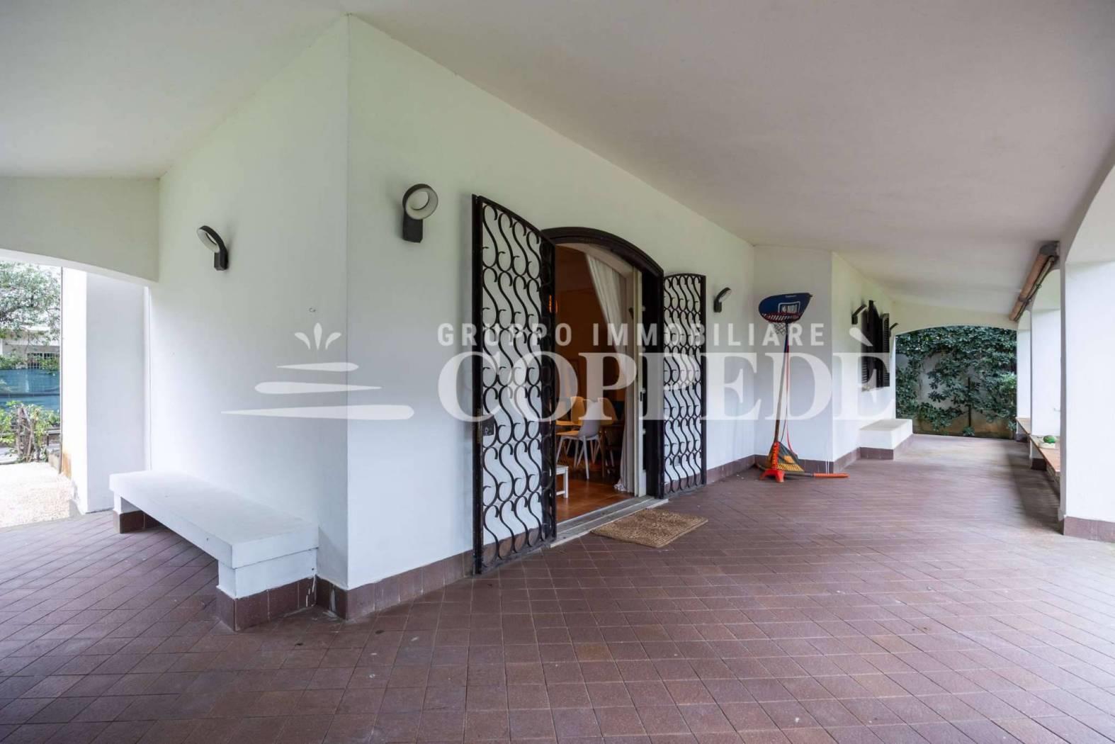 L'ingresso nella prima unità immobiliare è sobrio e funzionale. Al piano terra si trova la cucina abitabile con un secondo accesso secondario all’immobile tramite il giardino, e un ampio salone composto da due distinti spazi, camino e disimpegni, rendono gli ambienti estremamente vivibili, grazie anche a generosi porticati esterni allestiti a living. Camere da letto e 9 bagni dedicati rendono il tutto adatto alla giusta convivialità e vivibilità. Al piano superiore altri vani e locali di servizio permettono di sfruttare totalmente la realtà immobiliare, sia in chiave stagionale sia in altre necessità abitative. Adiacente, con una parete comunicante, troviamo la seconda unità abitativa simile nei volumi e nella distribuzione degli spazi; anche qui salone impreziosito da camino, cucina e camere con servizi al piano terra, e altri spazi vivibili al piano superiore. La proprietà è dotata di impianto di climatizzazioni in tutte le stanze al primo e al secondo piano, di grate a tutti gli infissi, e l’impianto elettrico è stato recentemente rifatto.
